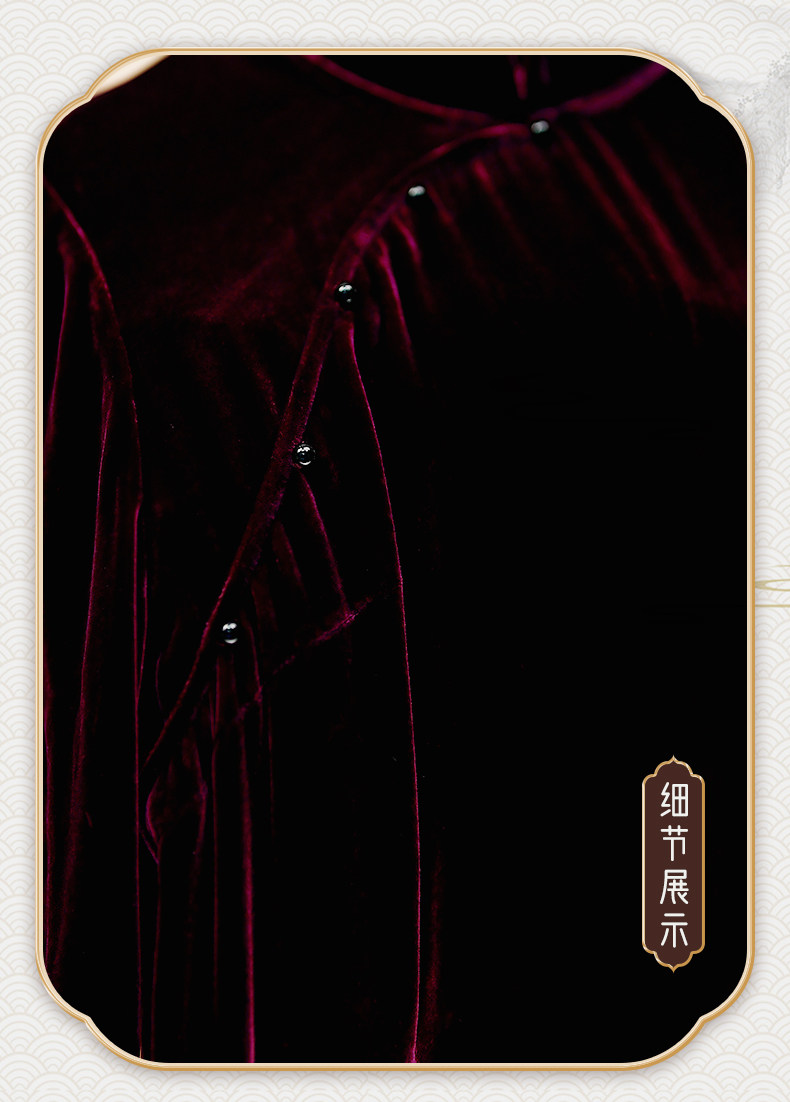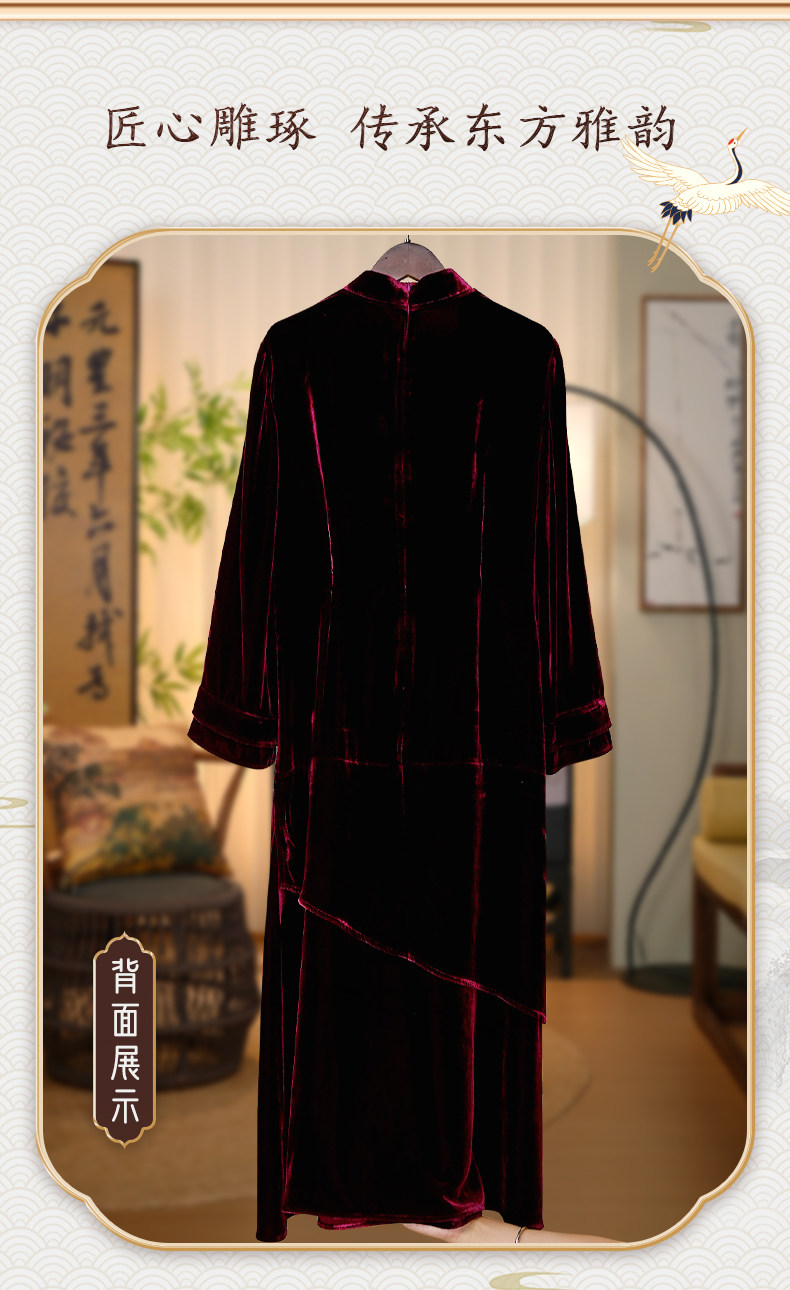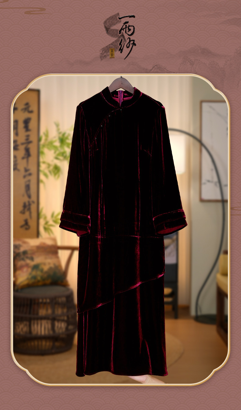【Wine Red•Mermaid Cheongsam】238742 Shen Haha Mulberry Silk Raw Fabric Real Silk Velvet Dress 48 Weft