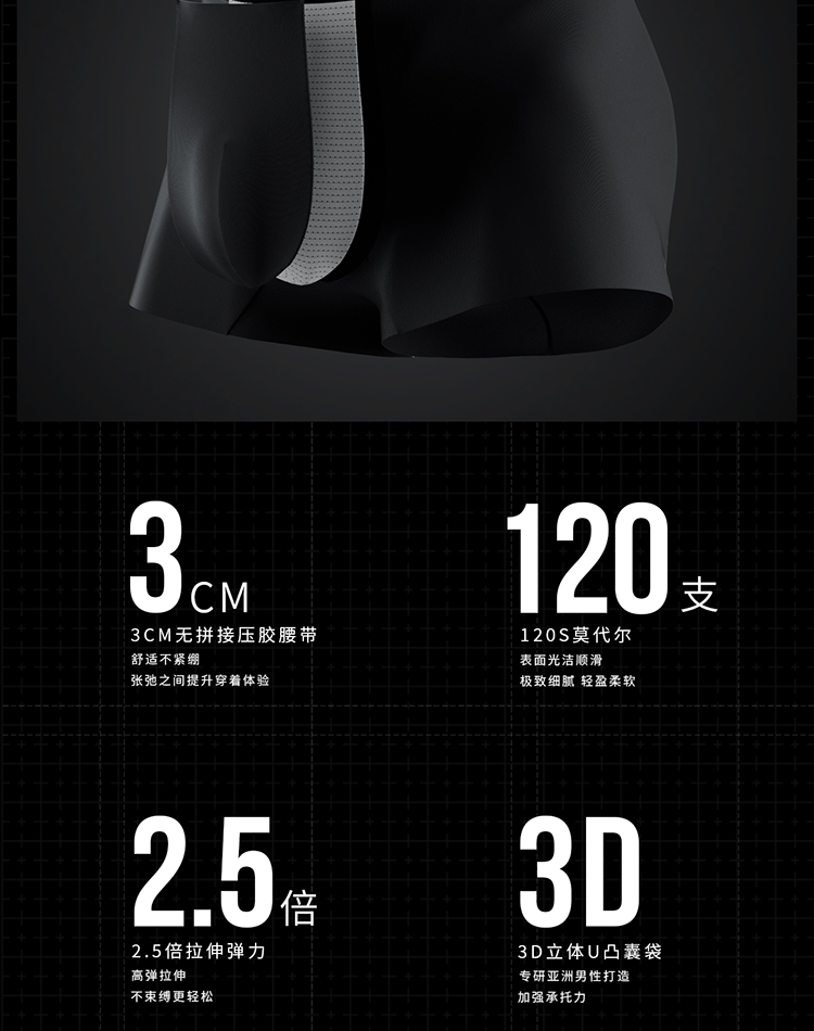 Monster Guardians Extreme Technology Series Three-Color Modal Barely-There Breathable Sports Boxer Briefs