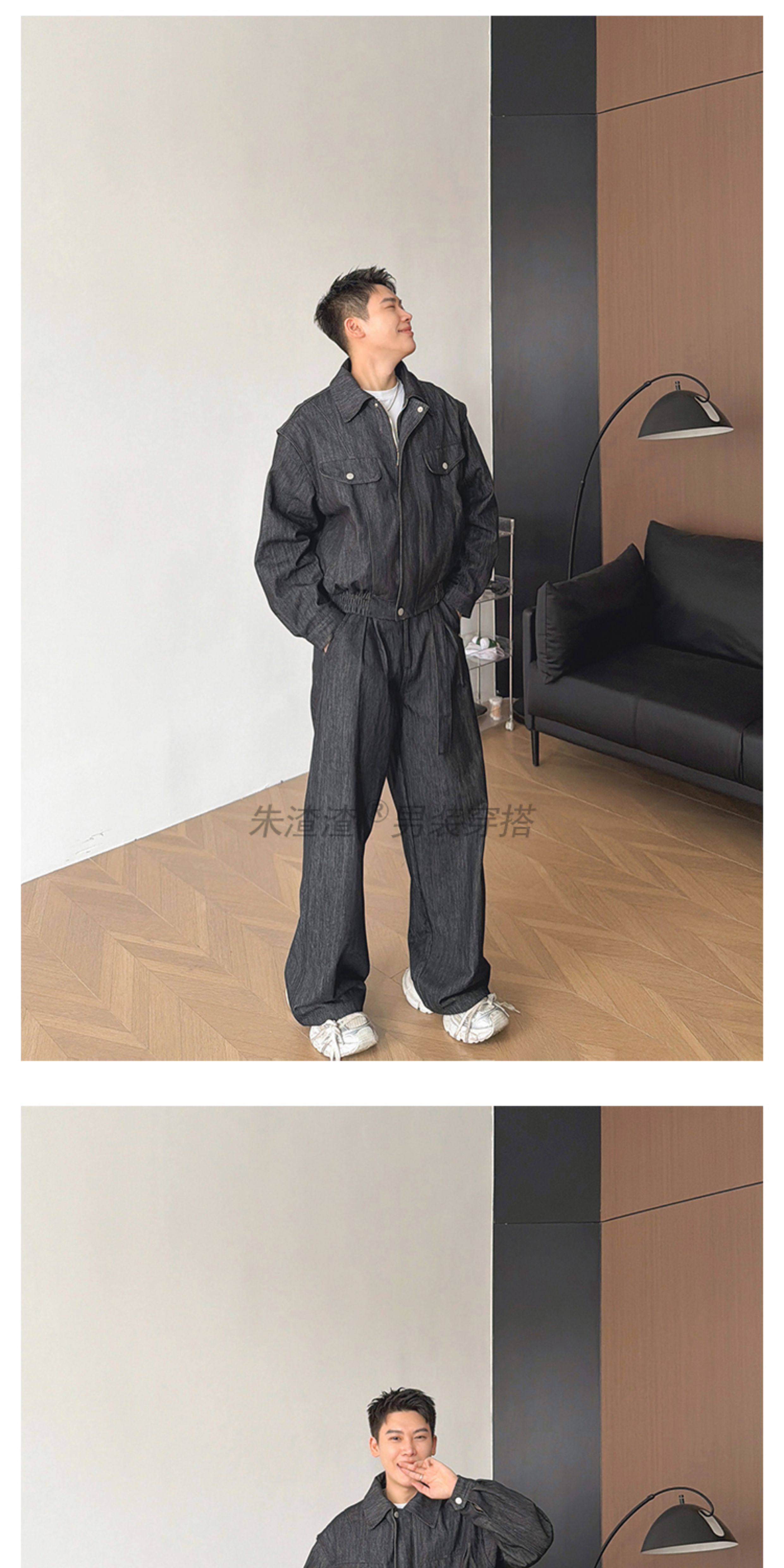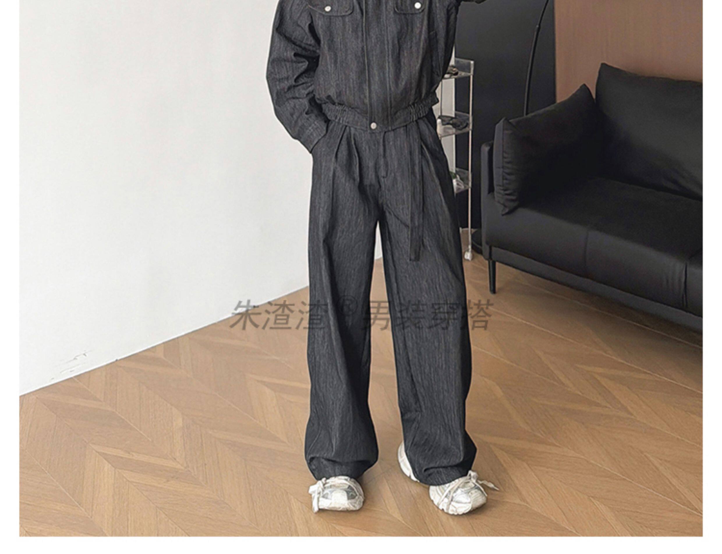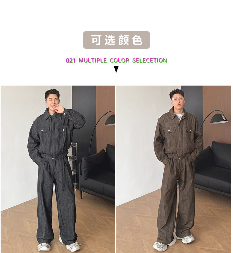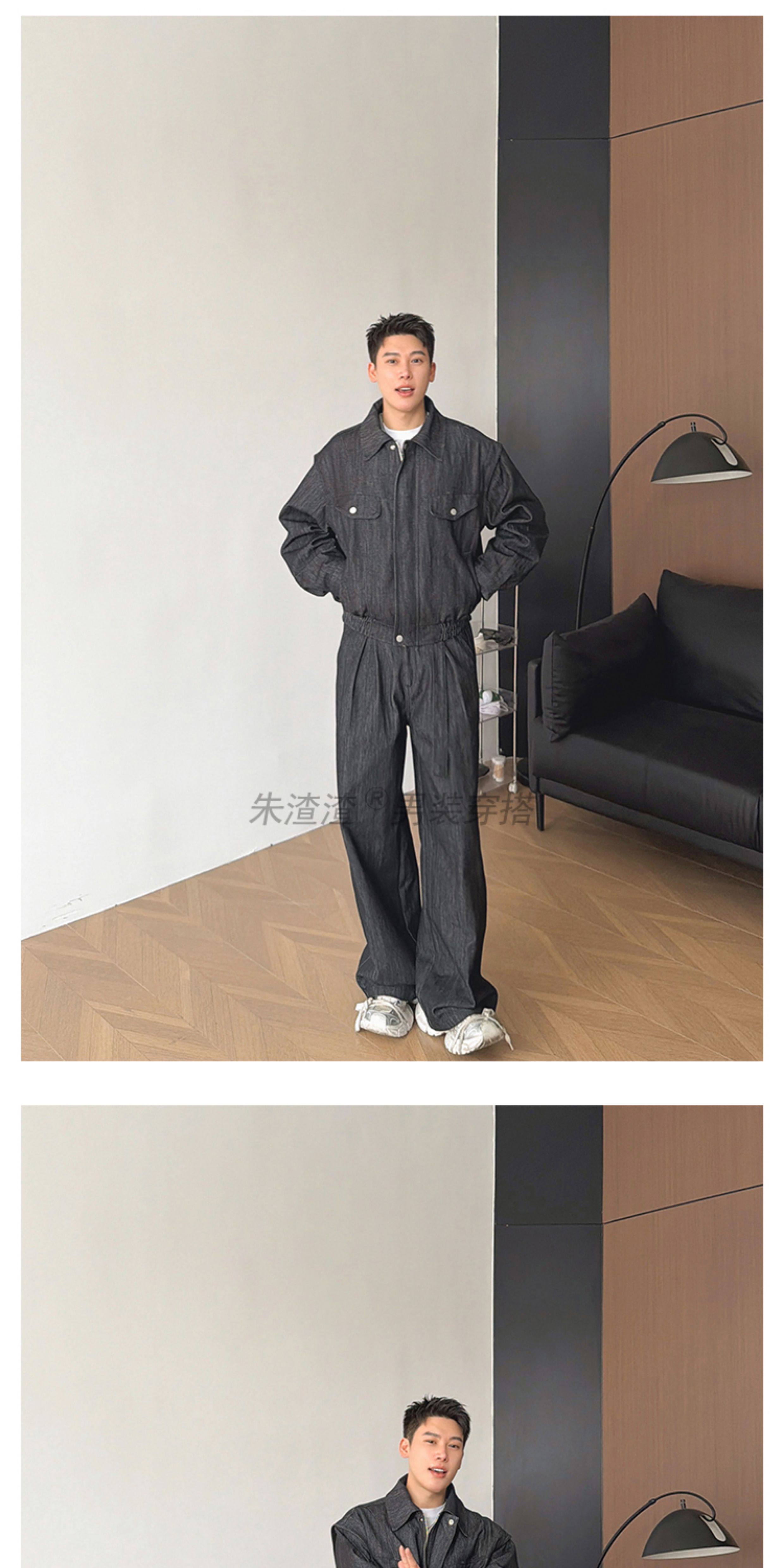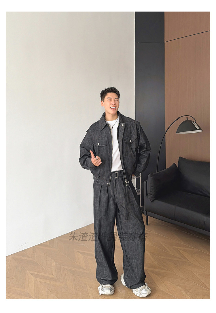 Zhu Chacha High-End Retro Denim Jacket Men's Coat Autumn and Winter Loose Casual Wide-Leg Pants Thick 2-Piece Set