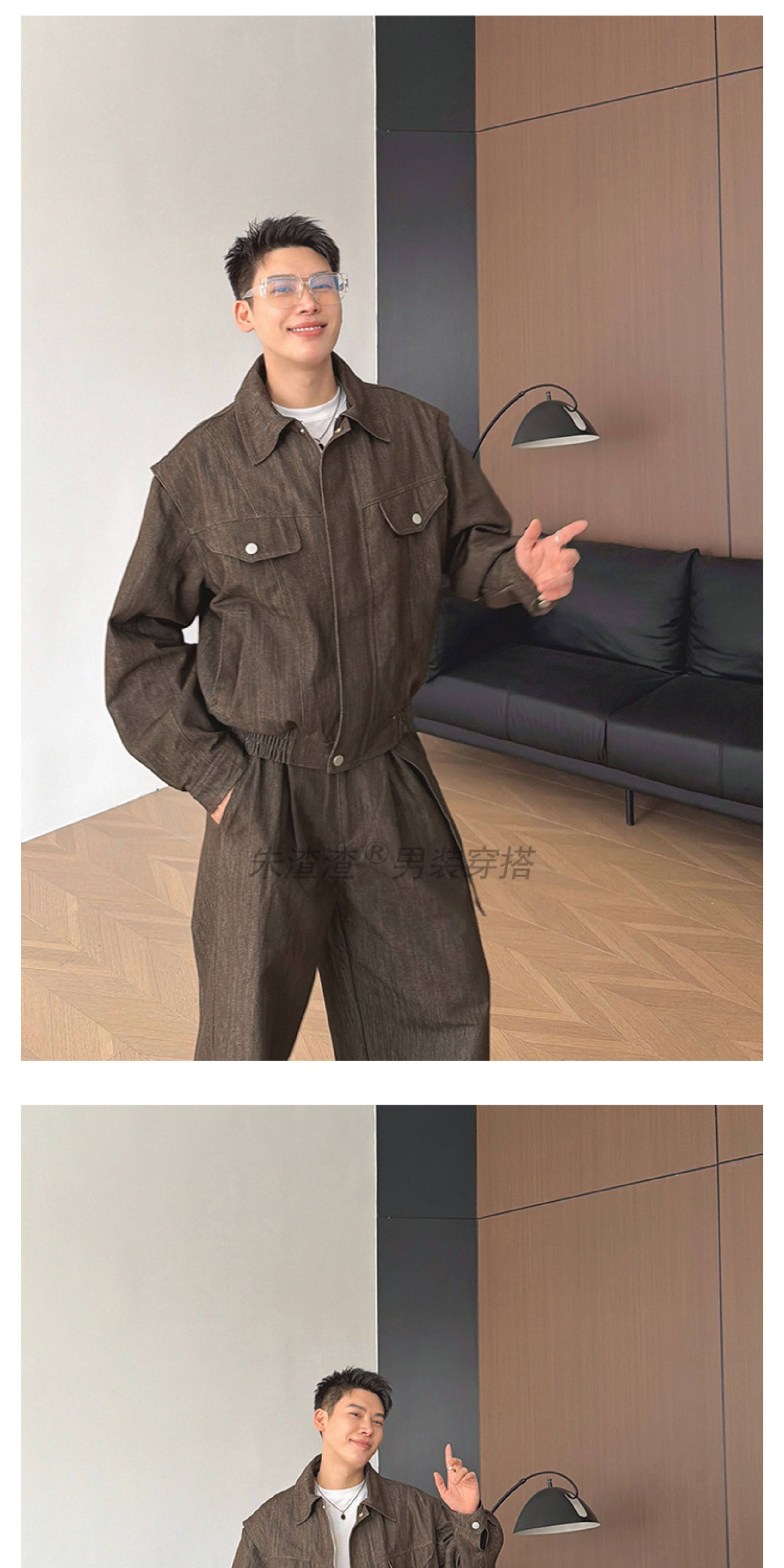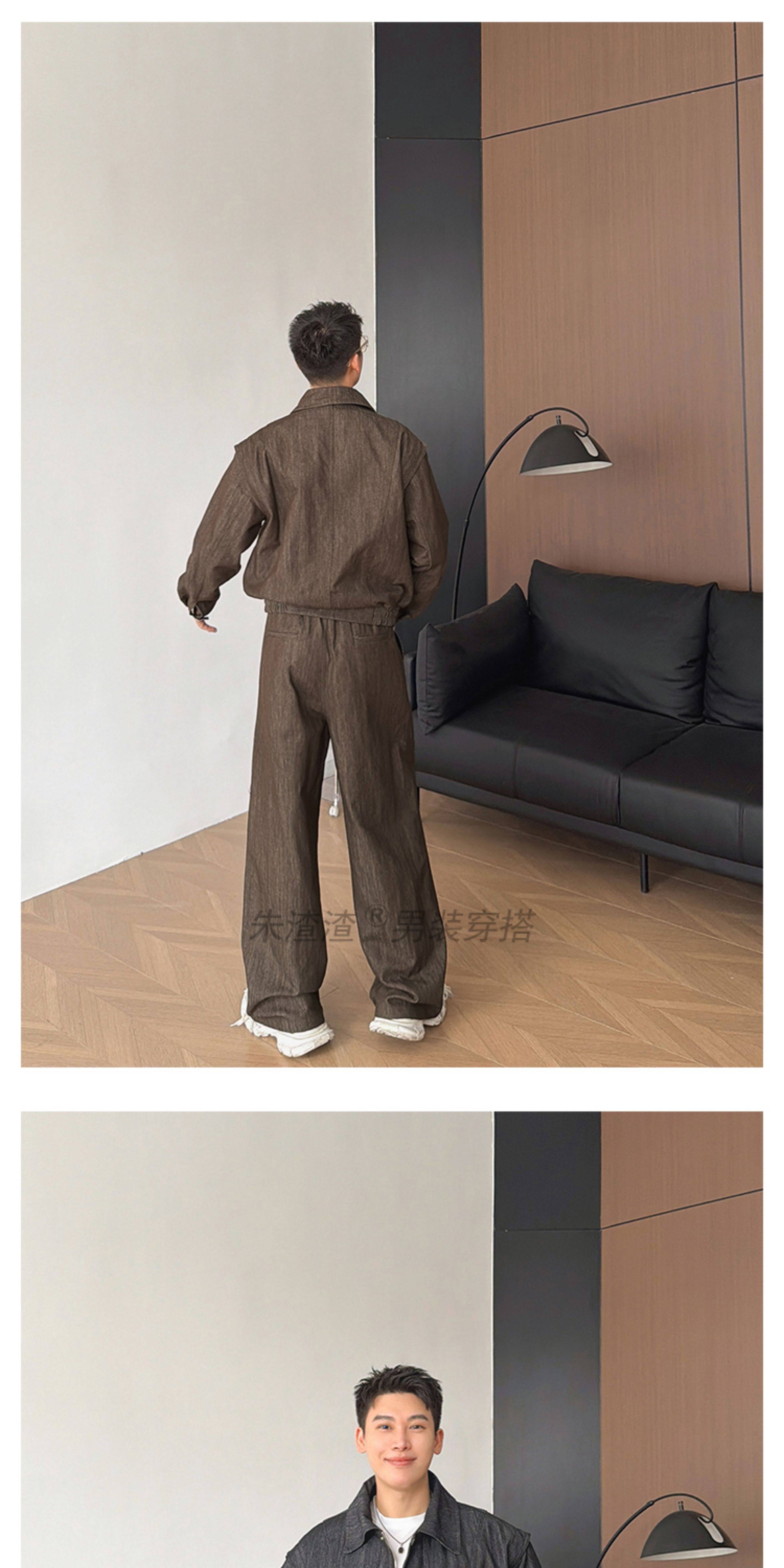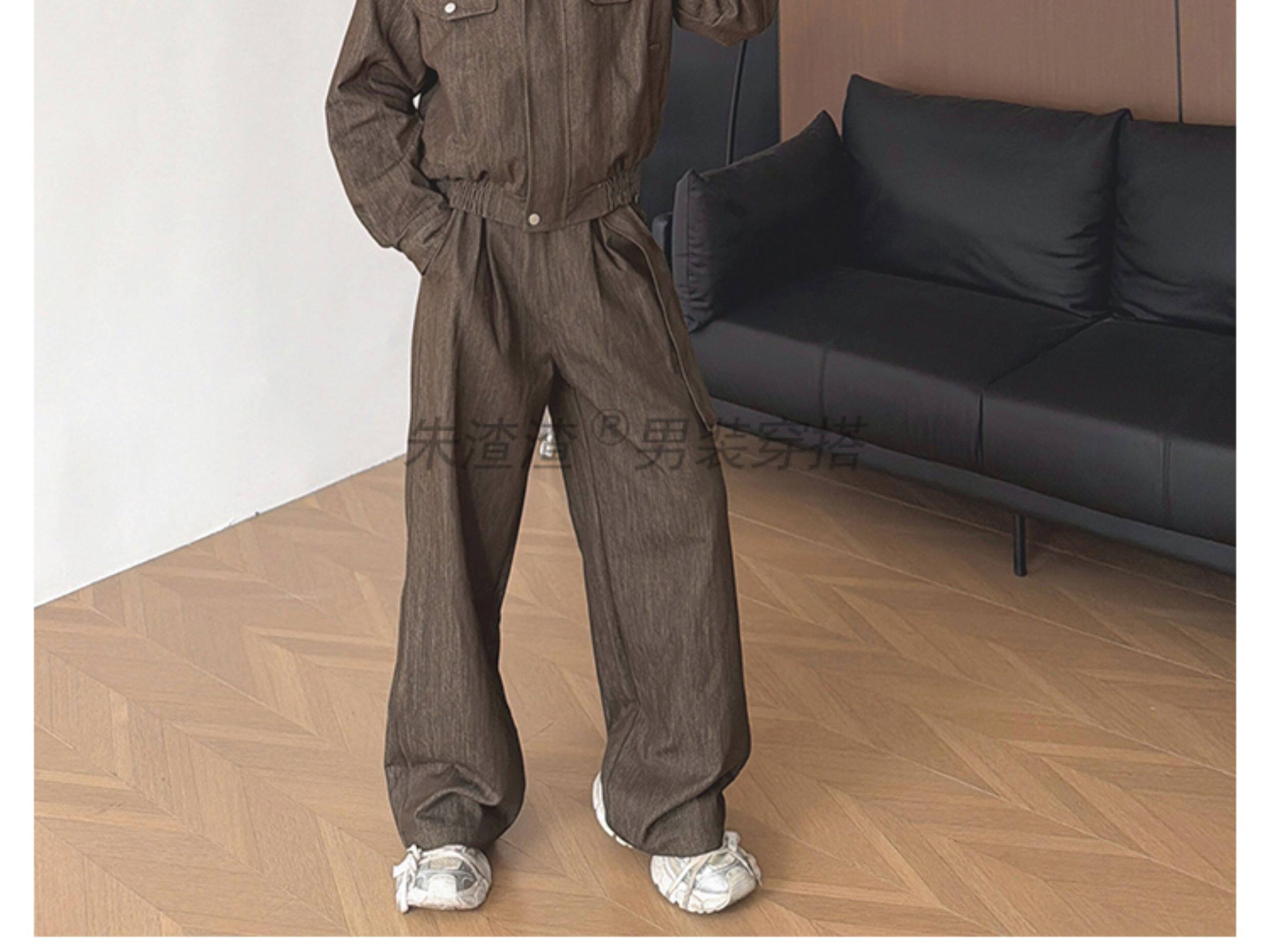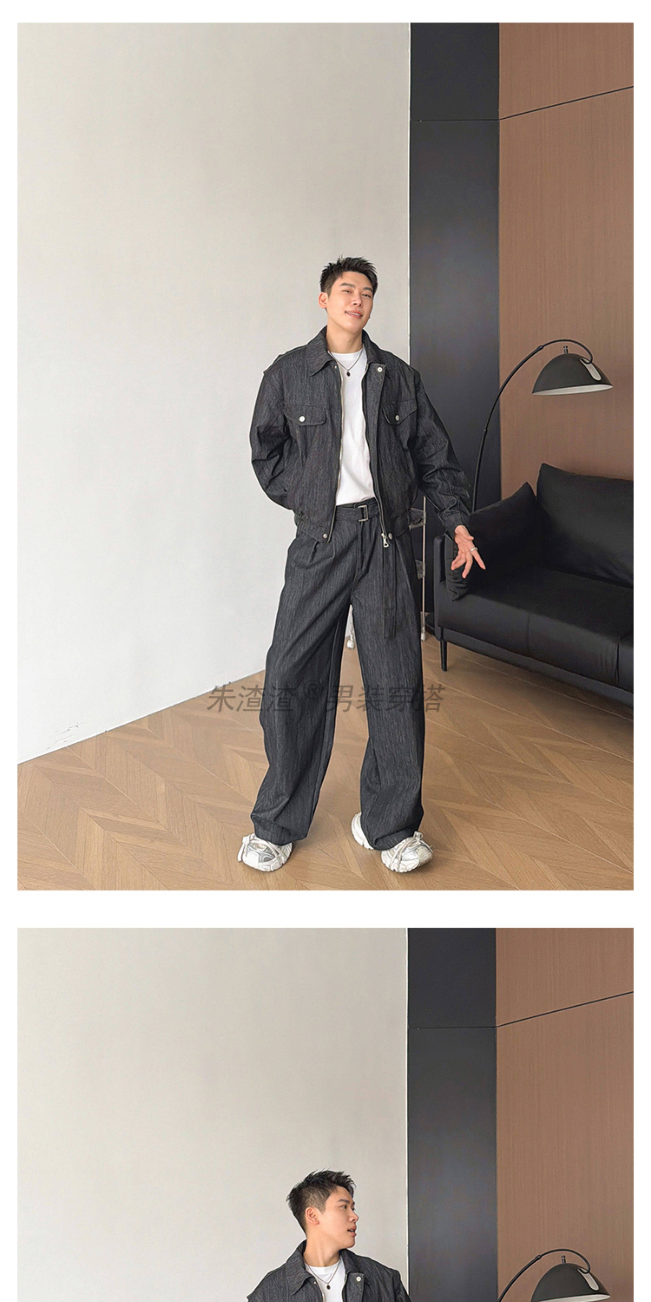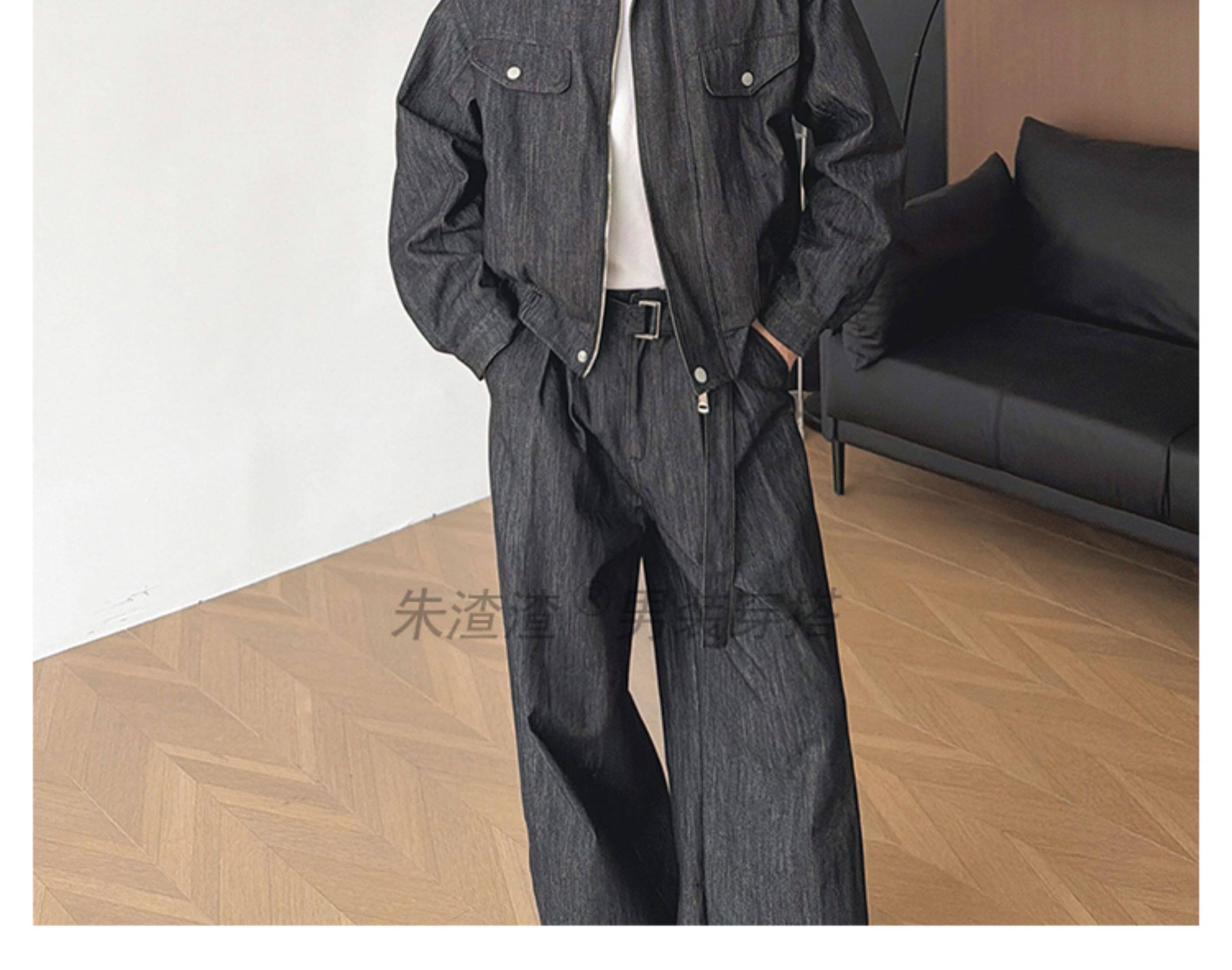 Zhu Chacha High-End Retro Denim Jacket Men's Coat Autumn and Winter Loose Casual Wide-Leg Pants Thick 2-Piece Set