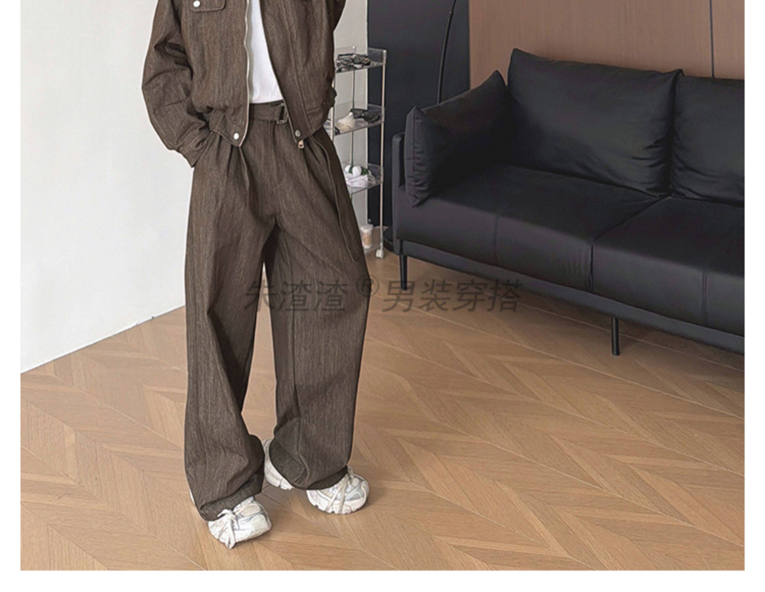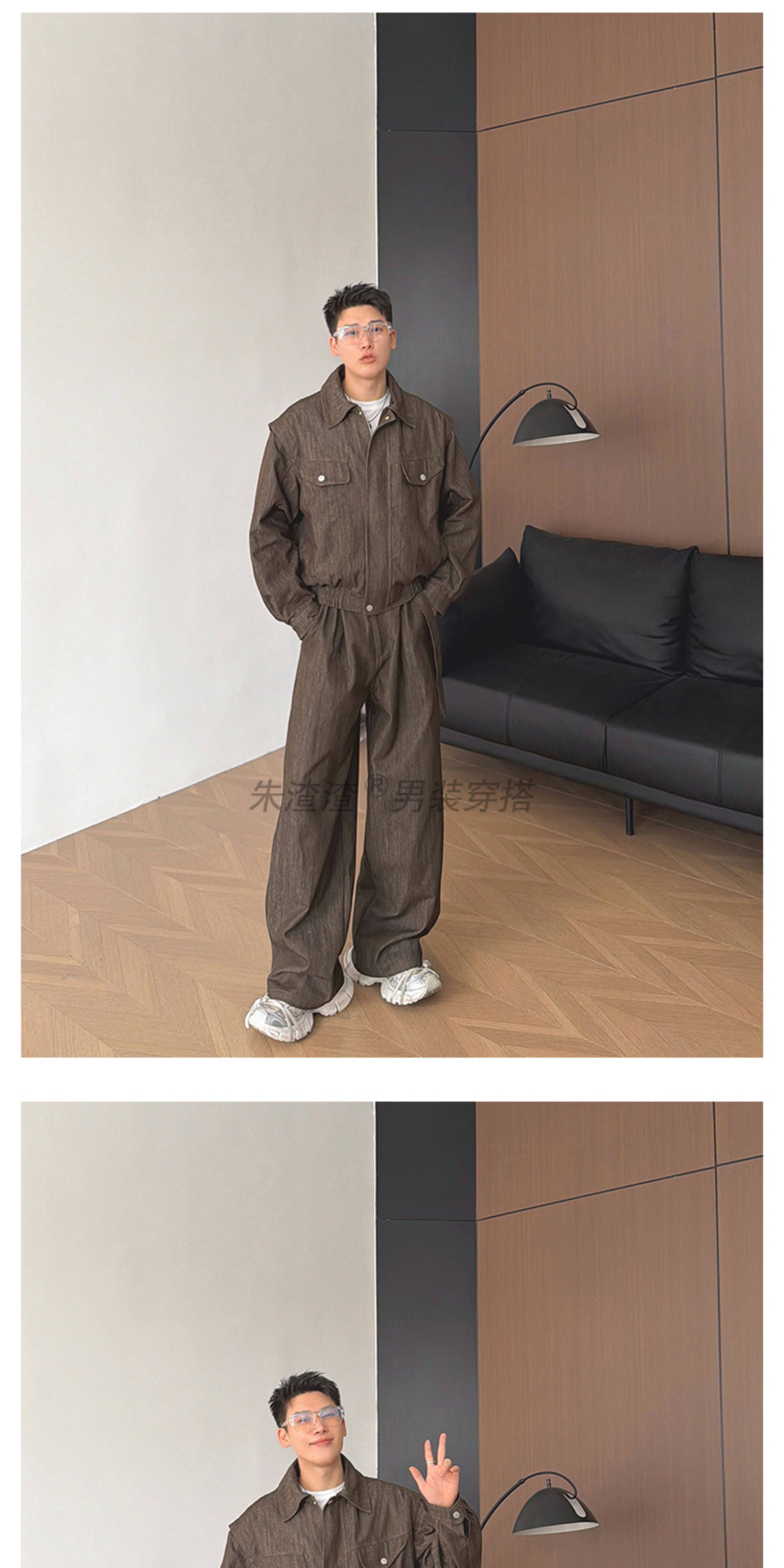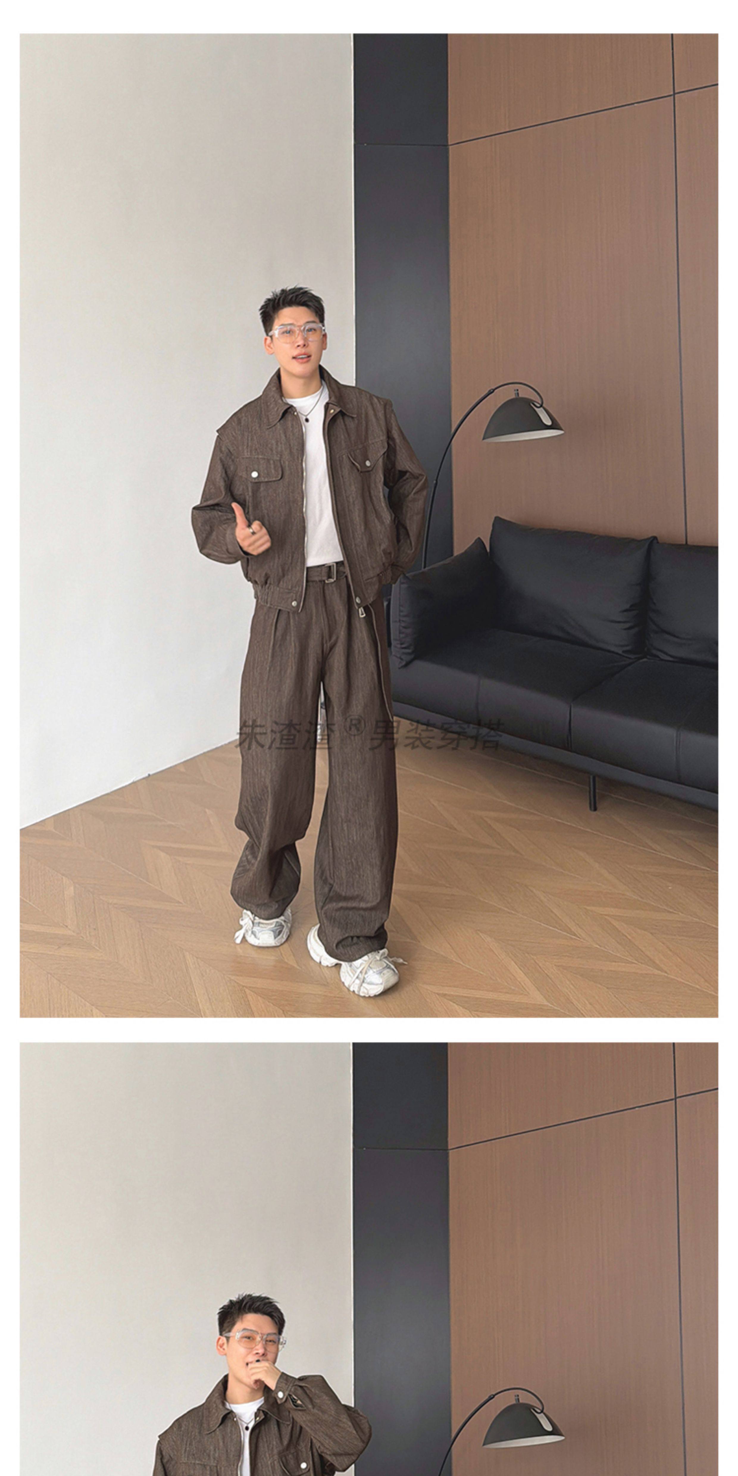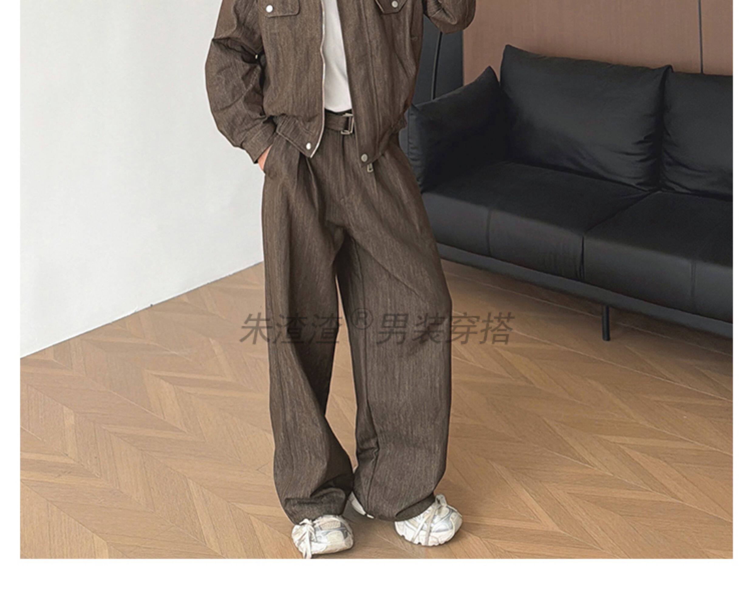 Zhu Chacha High-End Retro Denim Jacket Men's Coat Autumn and Winter Loose Casual Wide-Leg Pants Thick 2-Piece Set