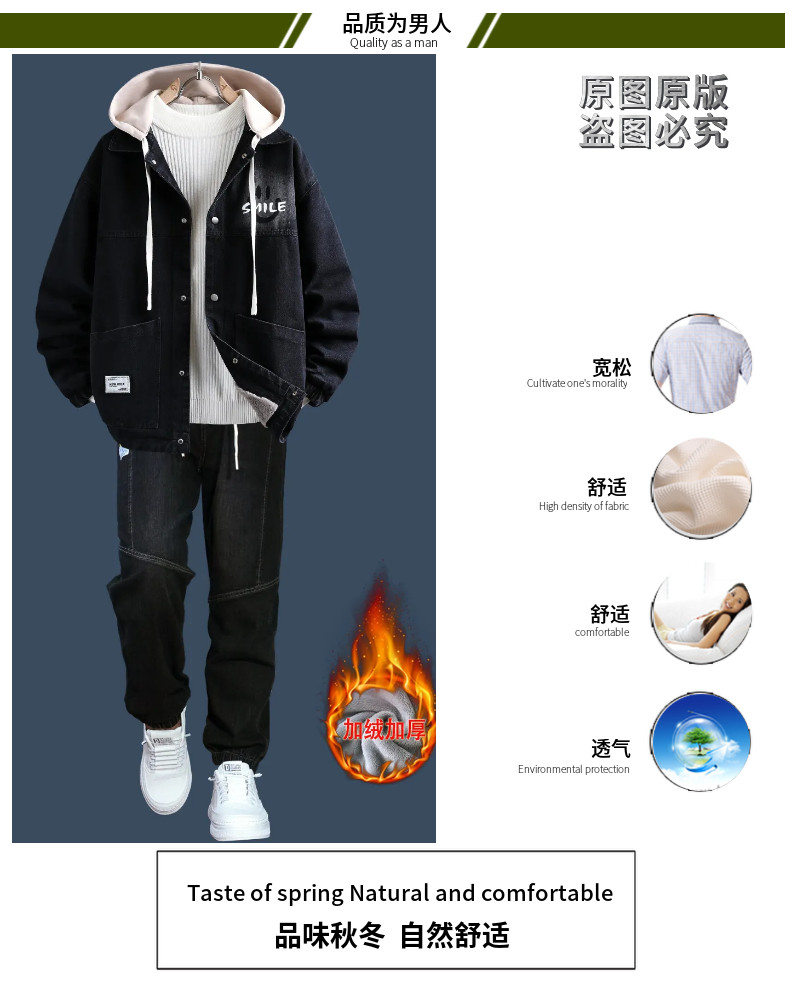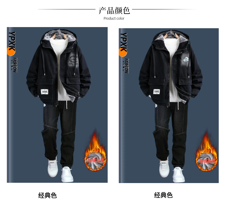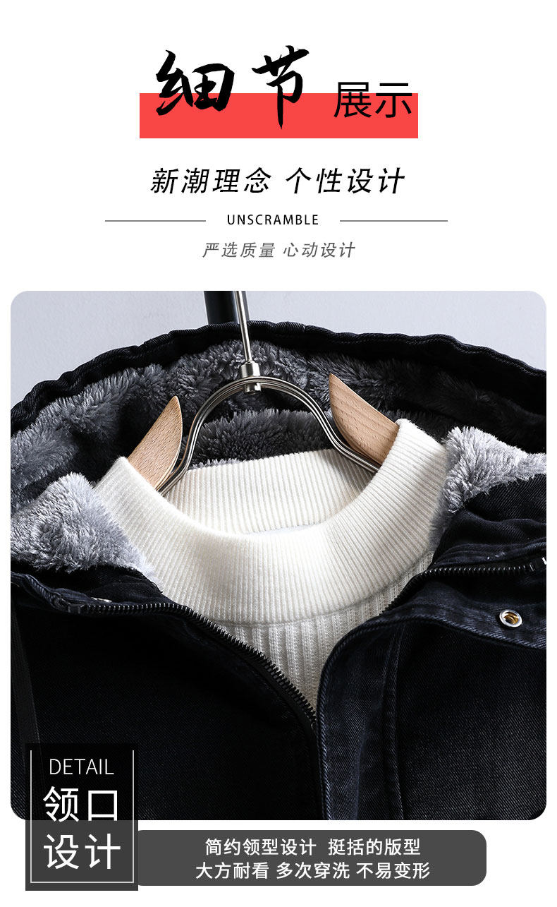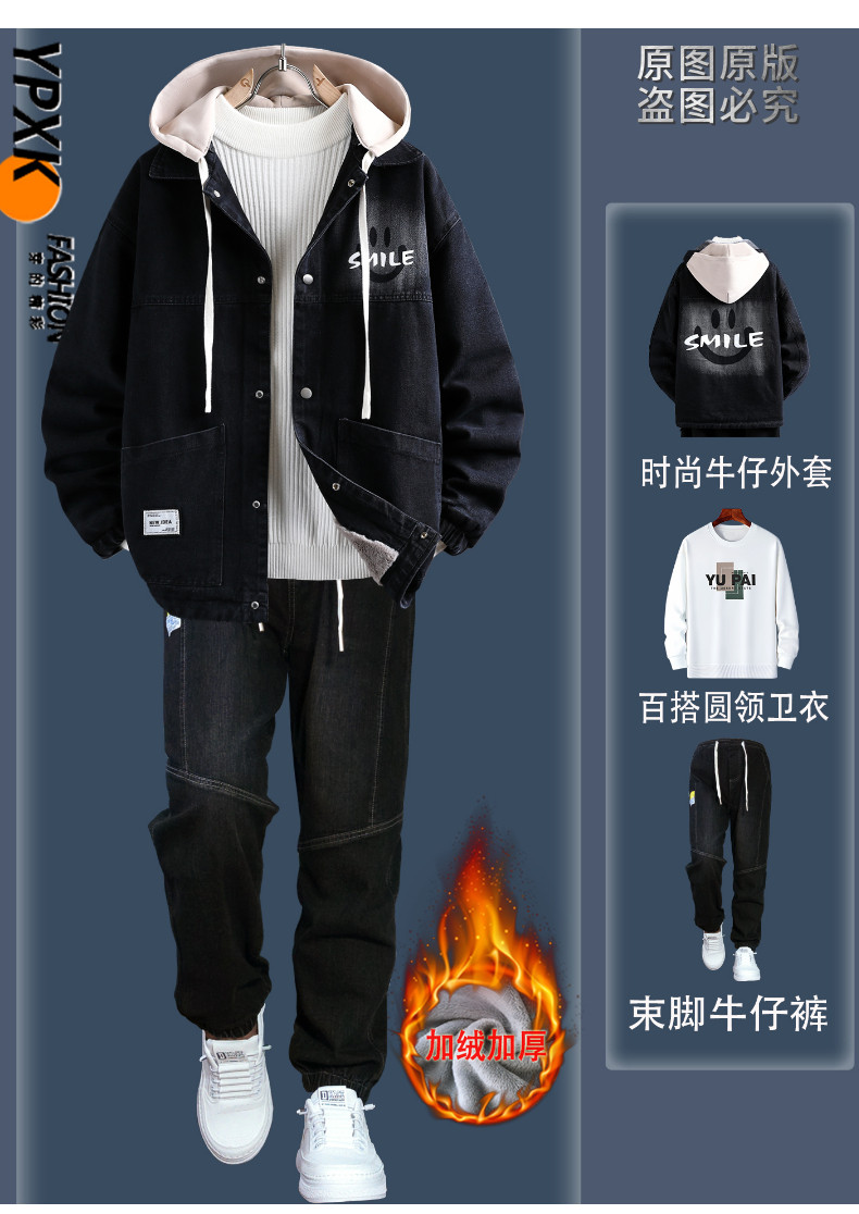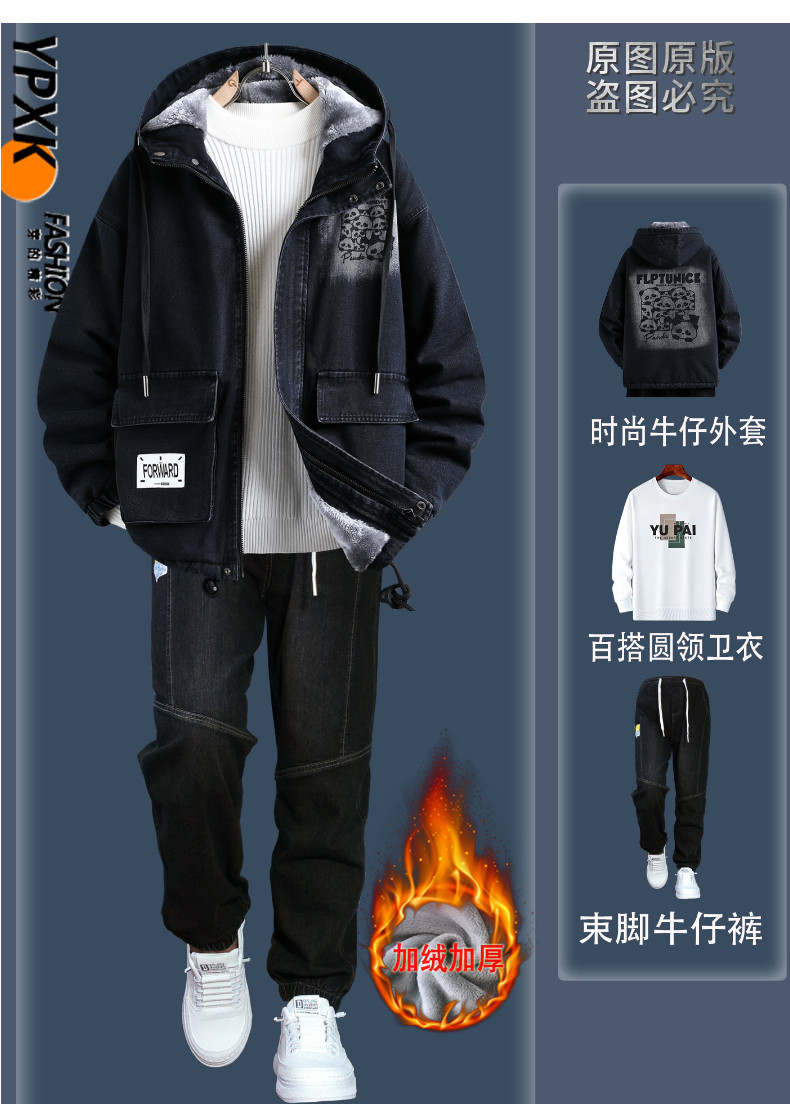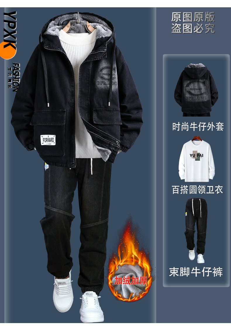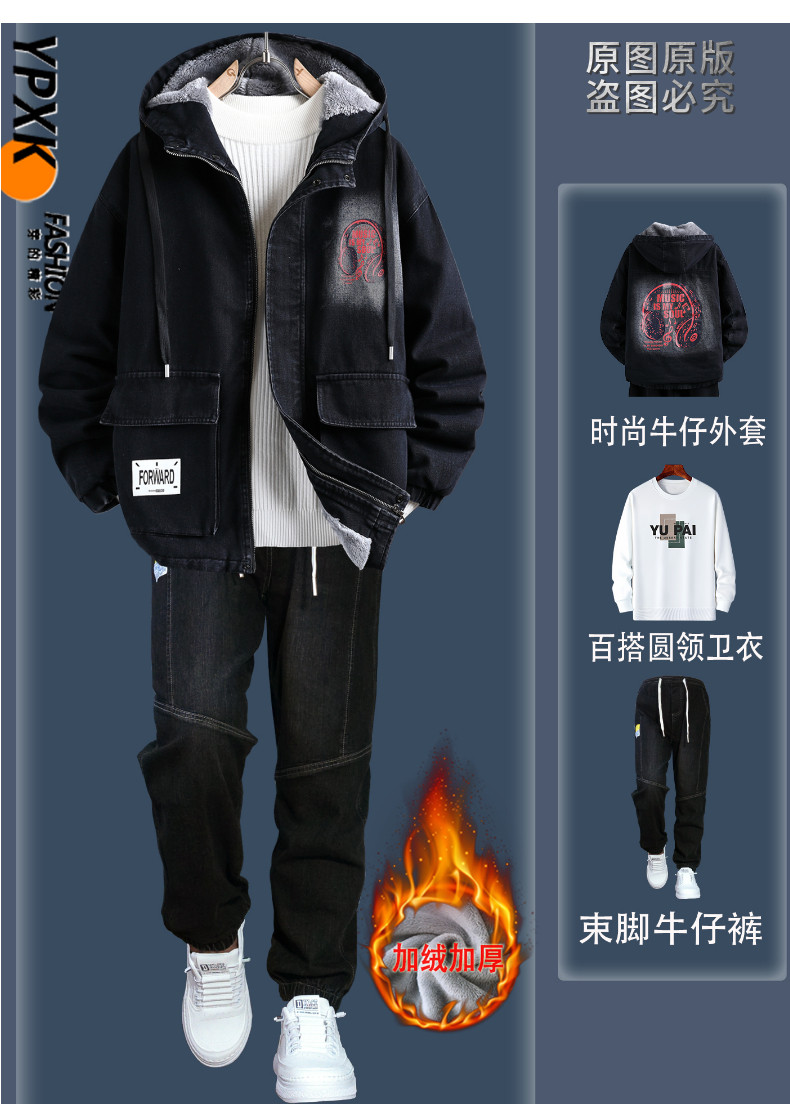 Teenagers' Fleece-Lined Thickened Denim Jacket Men's Winter New Style Outfit High School Student Trendy Brand
