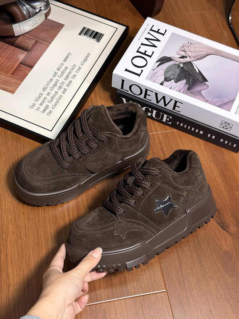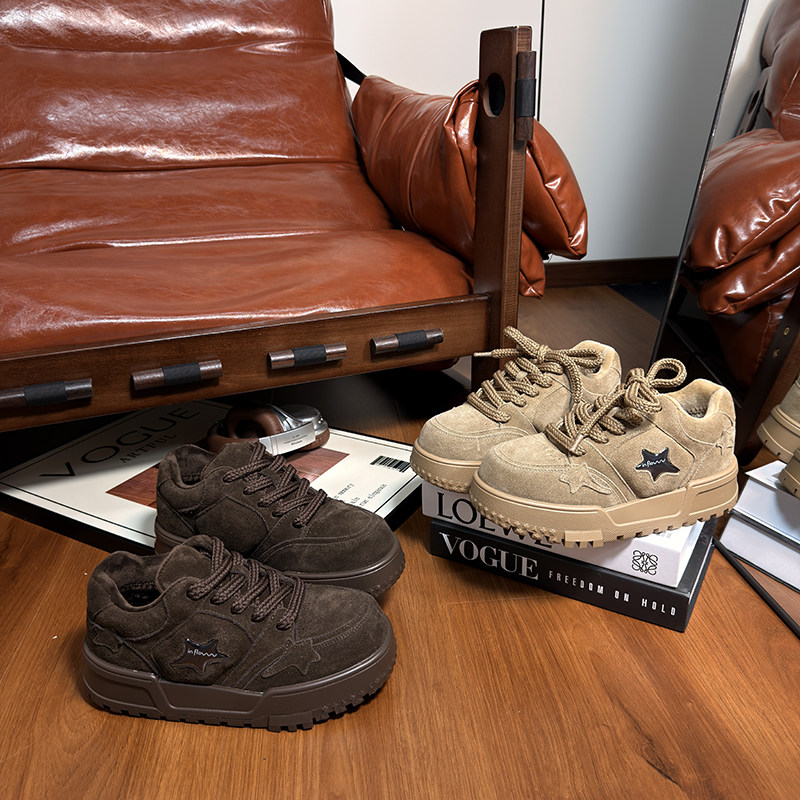 Hong Kong Genuine Leather Thick-Soled Loafers for Women 2025 Autumn and Winter New Style Height-Increasing Fleece-Lined Warm Casual Sneakers Trendy