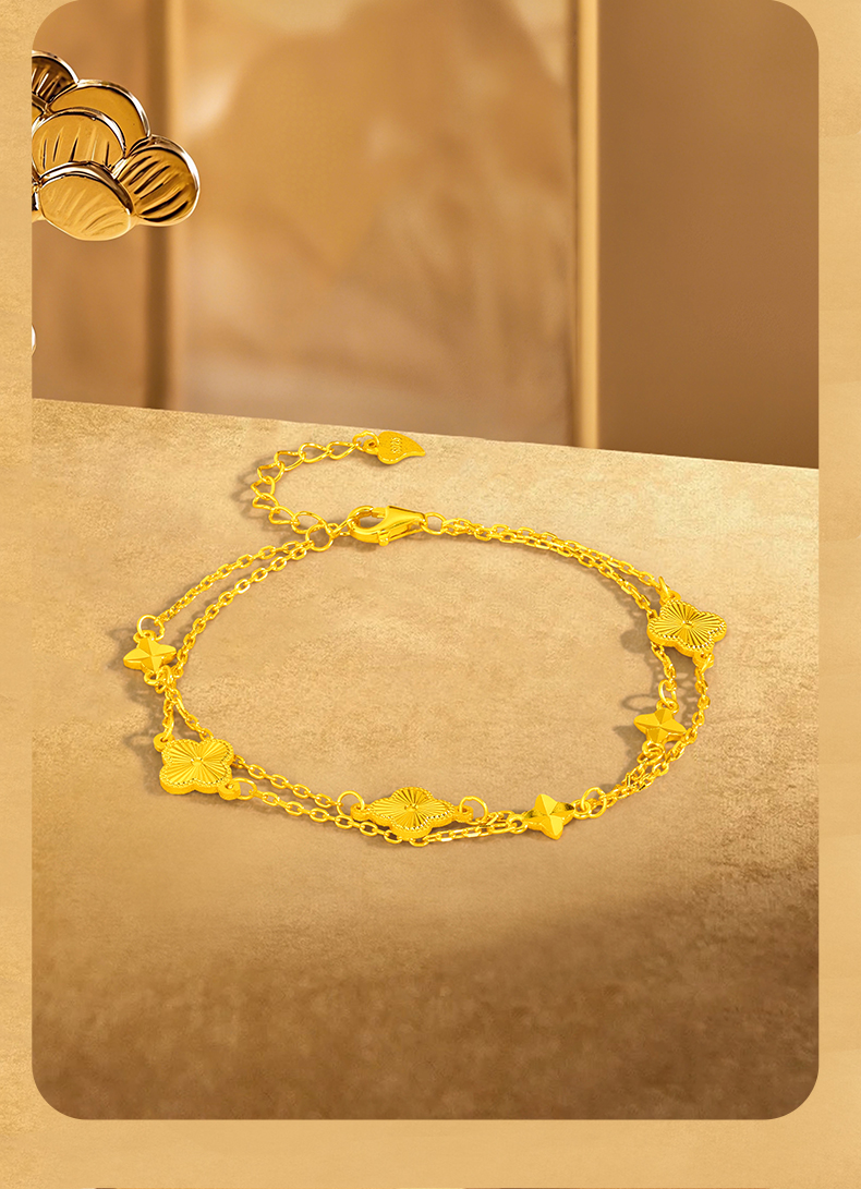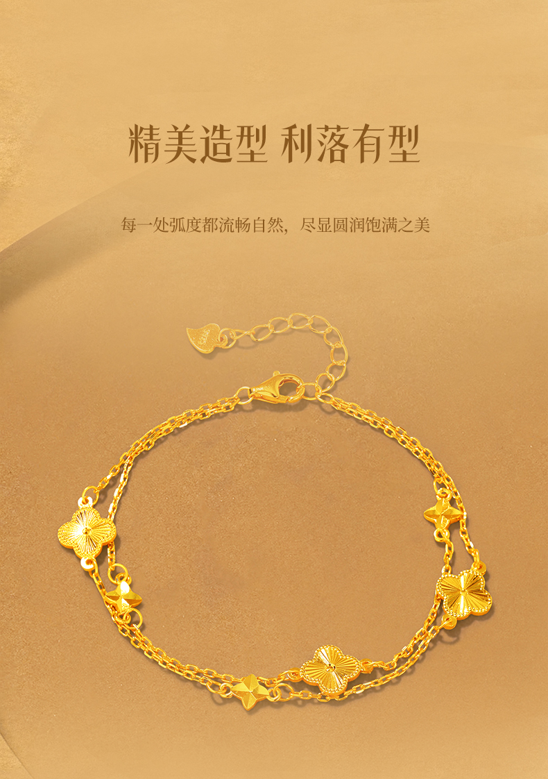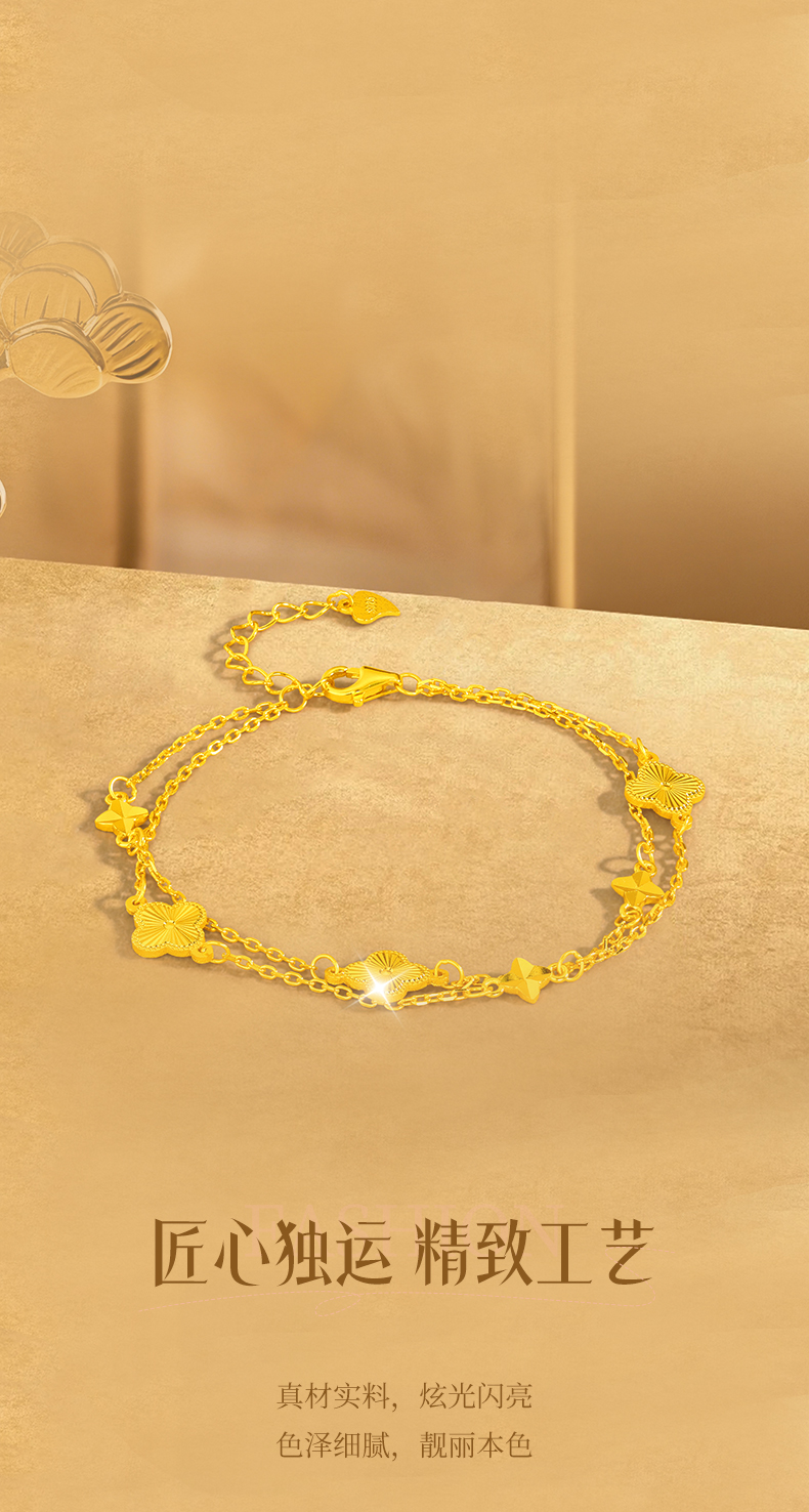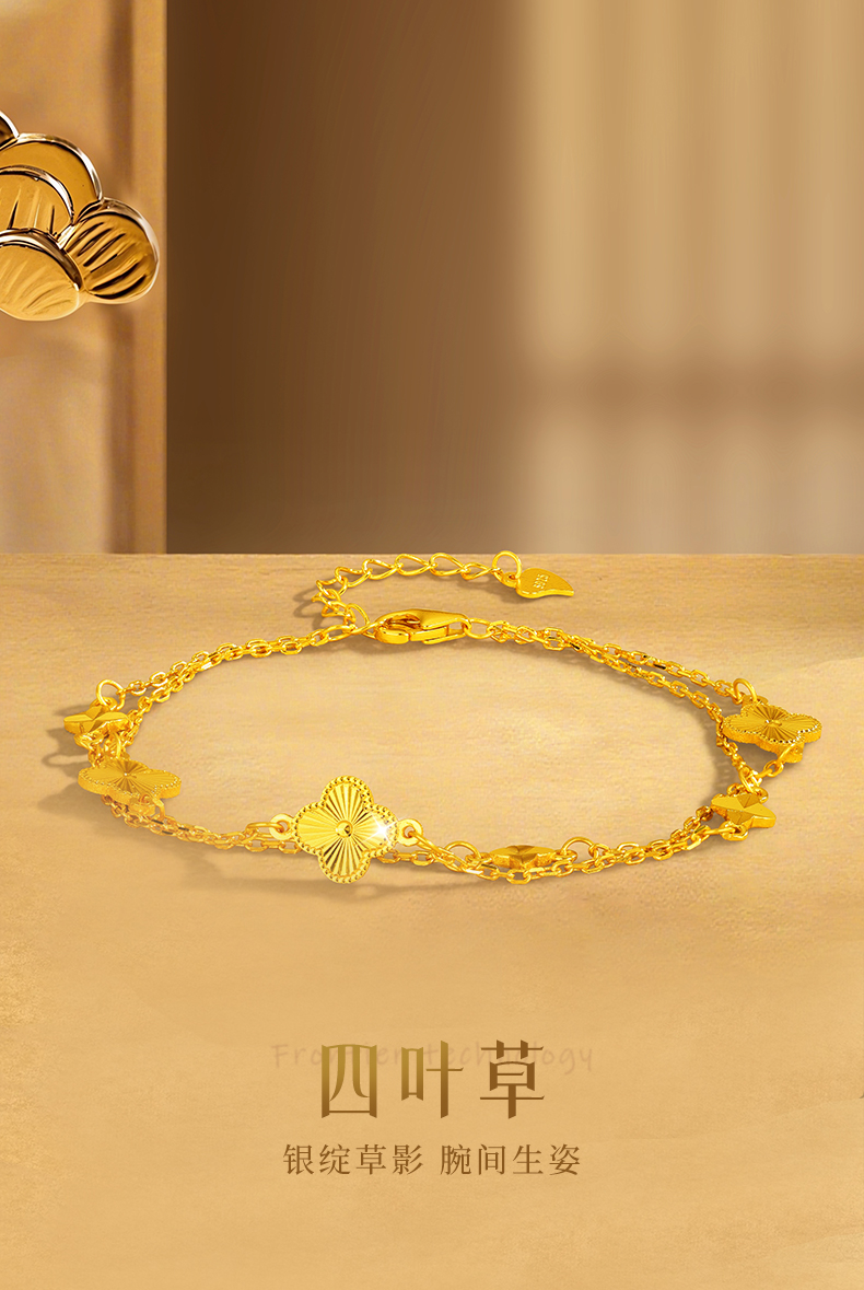 Jinliufu Auspicious S925 Silver Four-Leaf Clover Stackable Bracelet for Women, Flower Jewelry, Pure Silver Accessories, Gift for Girlfriend
