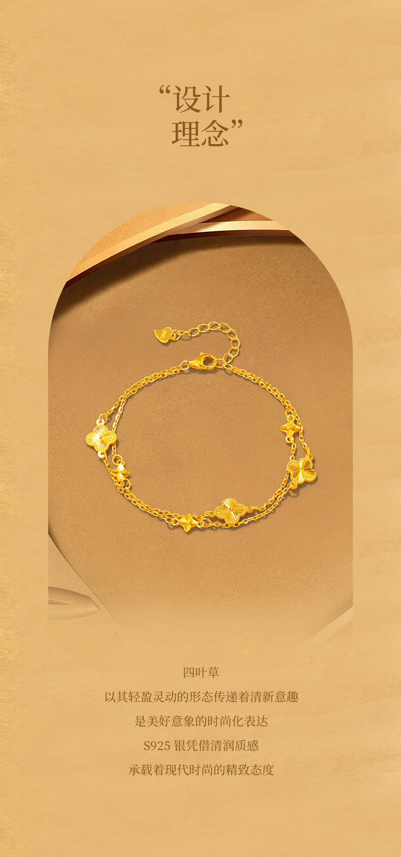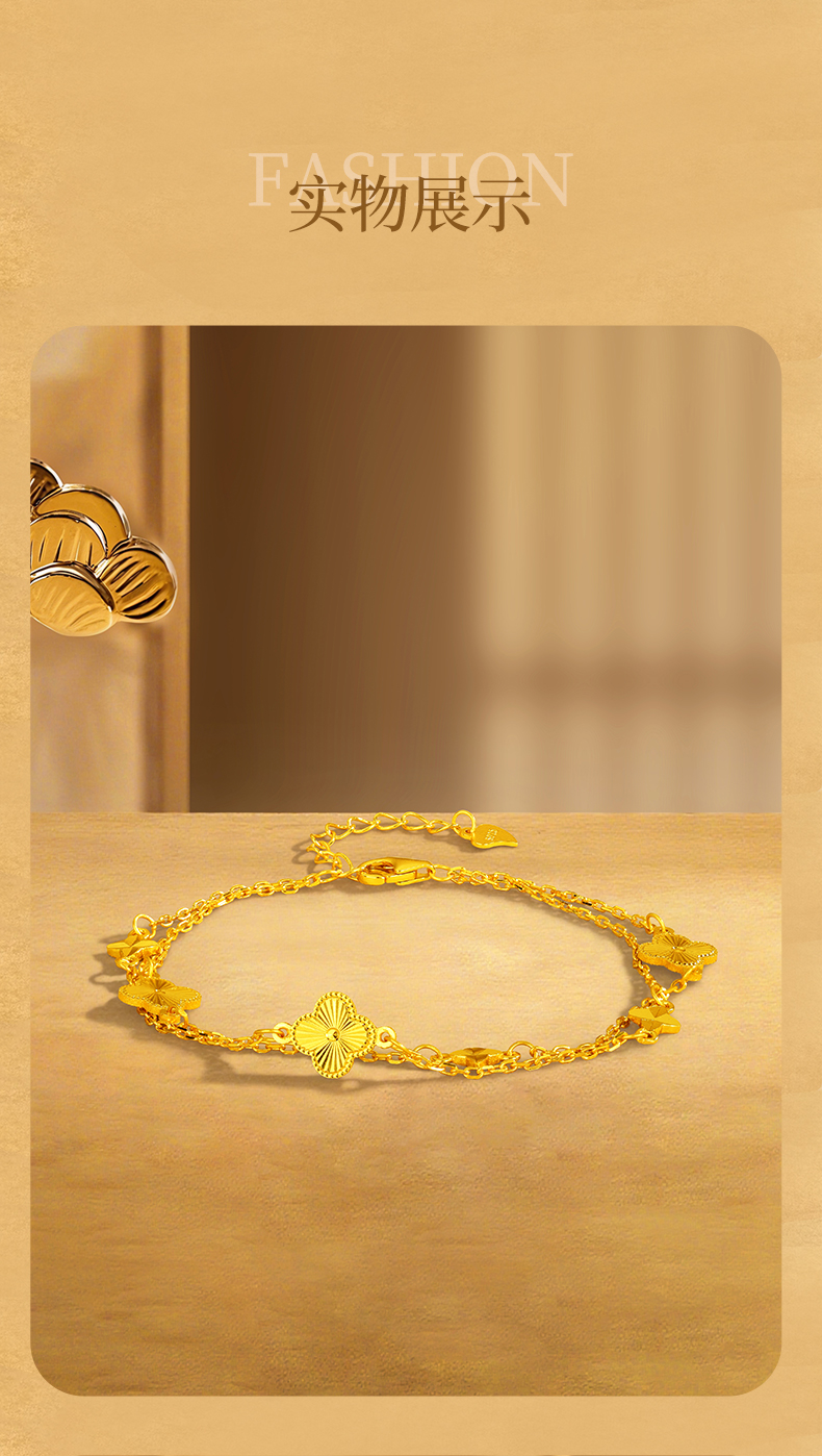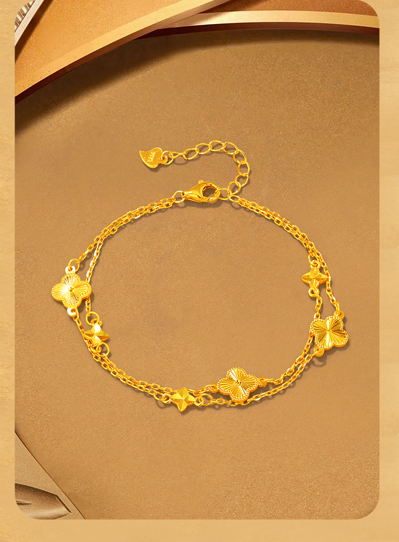 Jinliufu Auspicious S925 Silver Four-Leaf Clover Stackable Bracelet for Women, Flower Jewelry, Pure Silver Accessories, Gift for Girlfriend