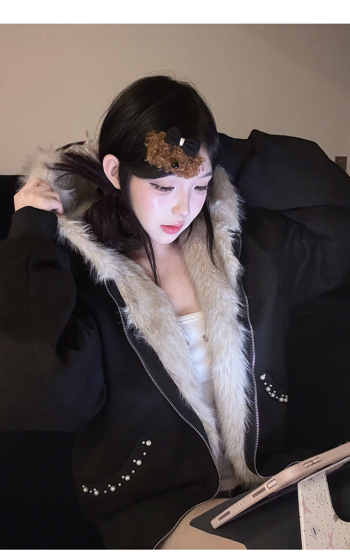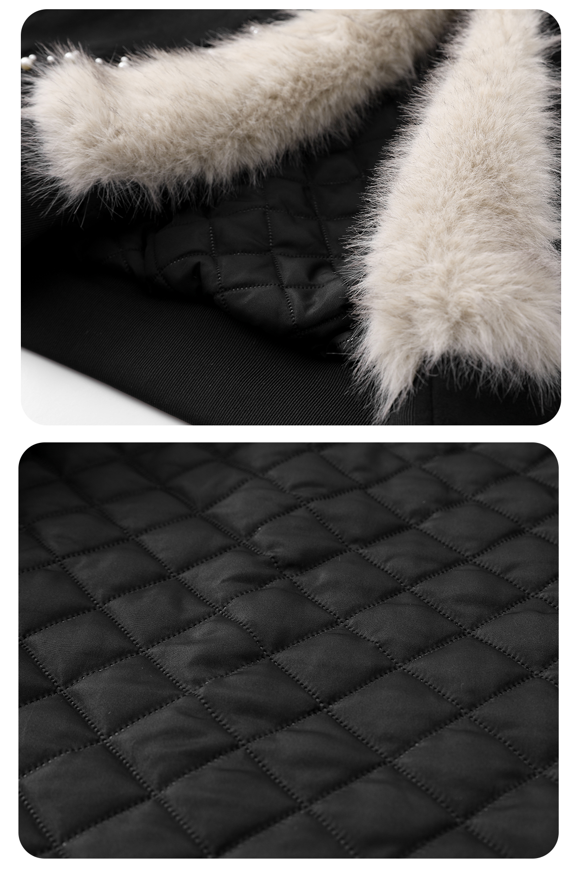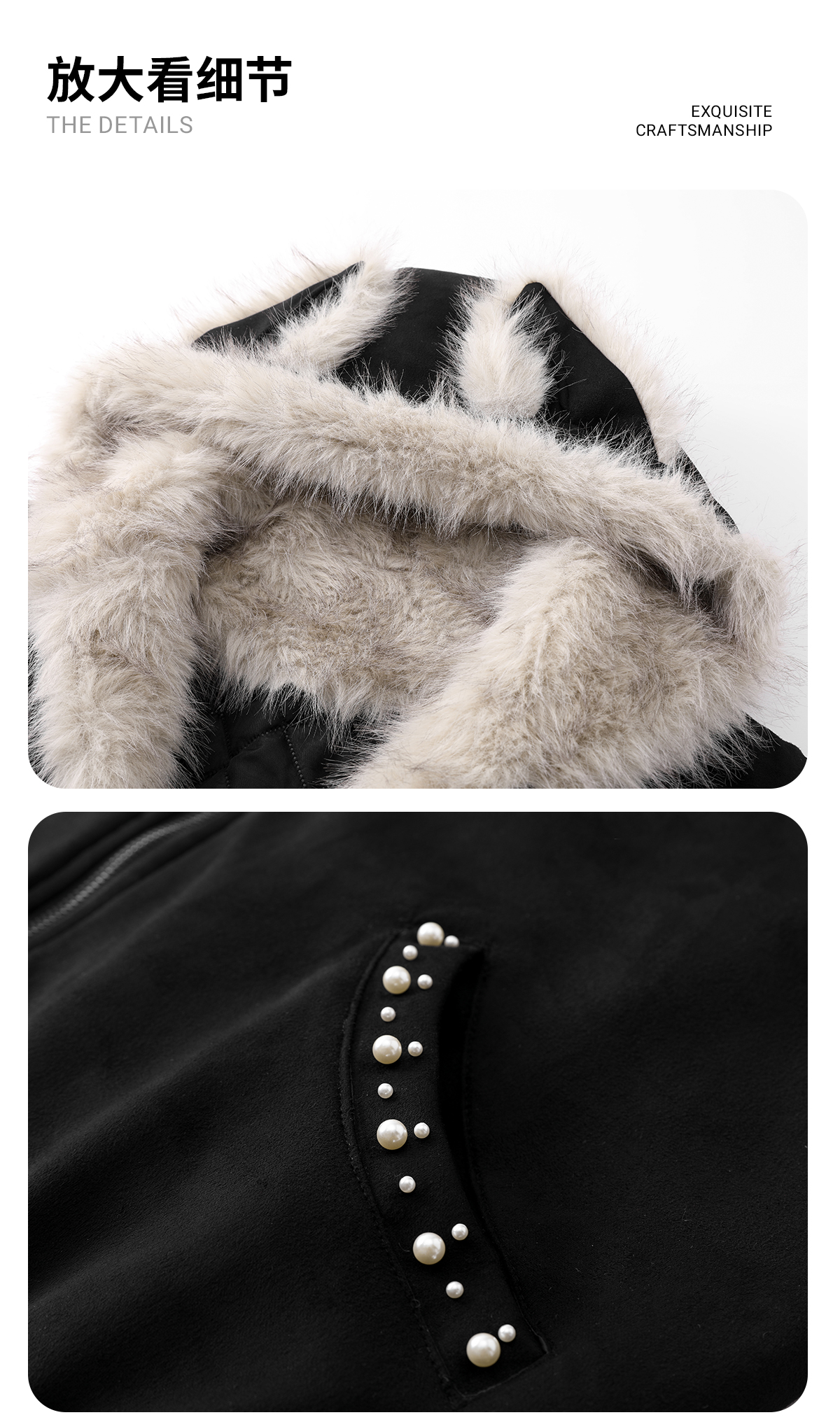Eggsays American-Style Winter Thickened Cotton Coat with Beaded Cardigan and Fur Collar Suede Jacket for Women and Men