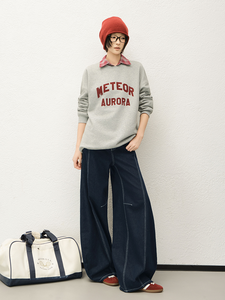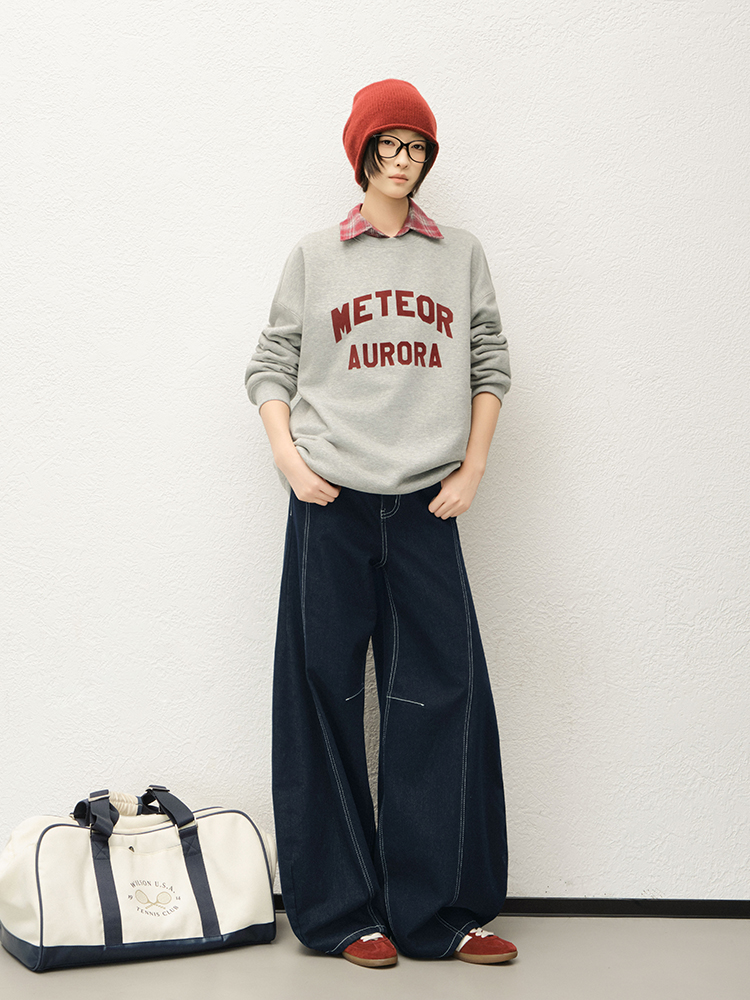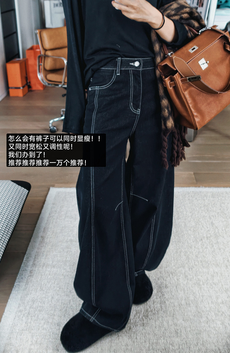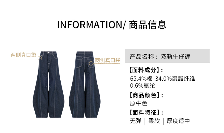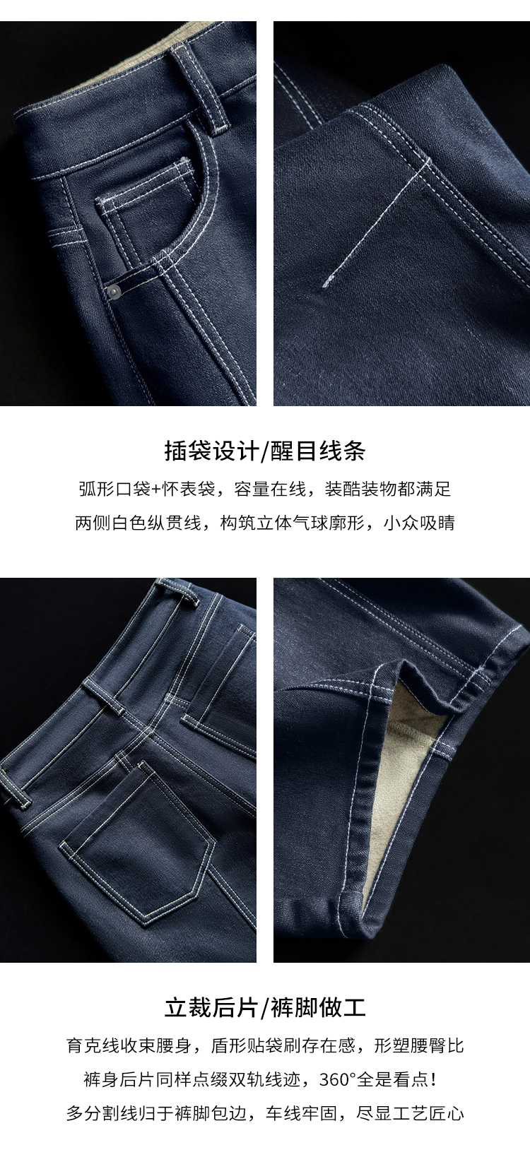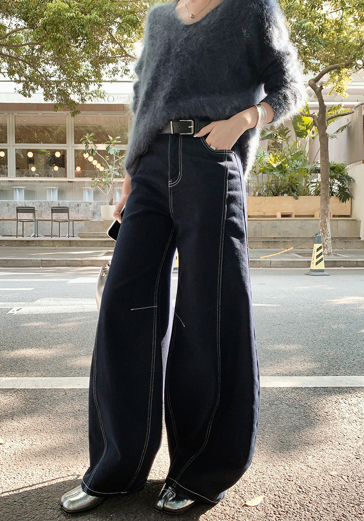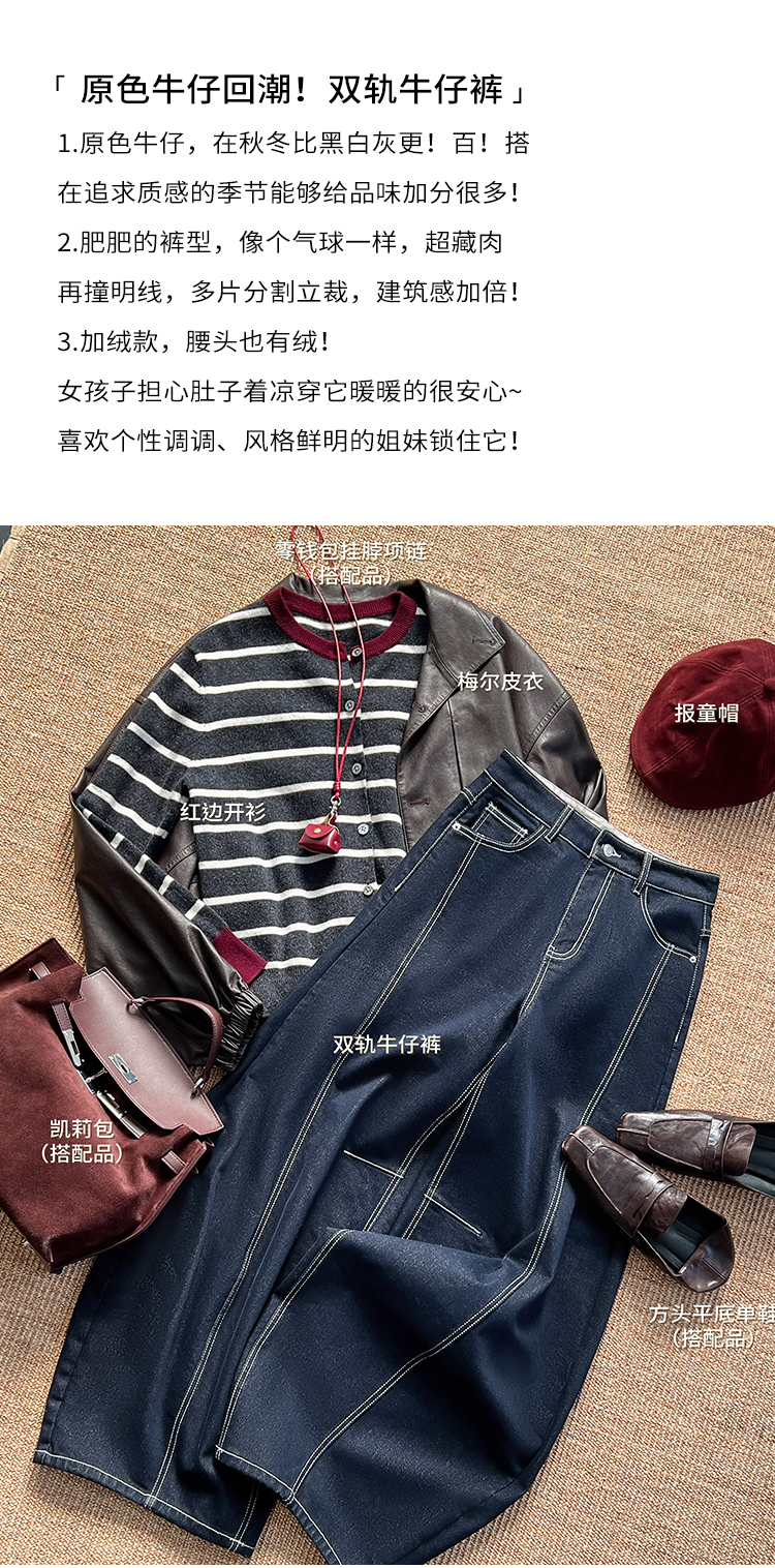 Meiyang Double Track Jeans Original Denim! Fleece-Lined Warm Balloon Pants [Small 60]-Thursday