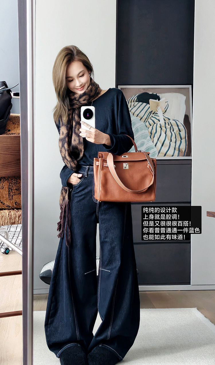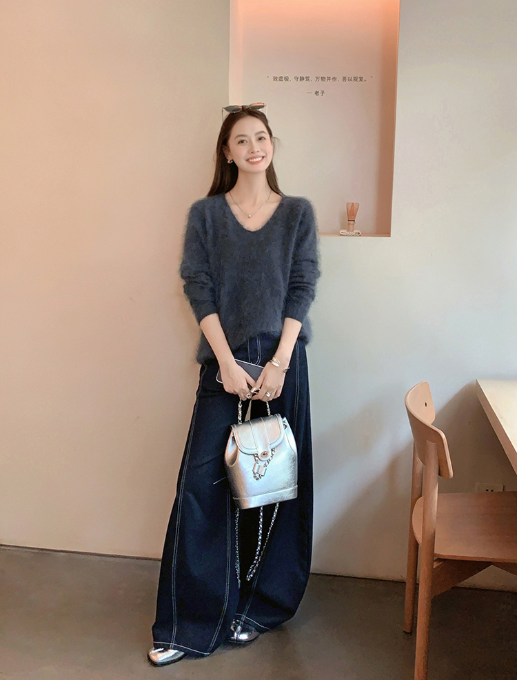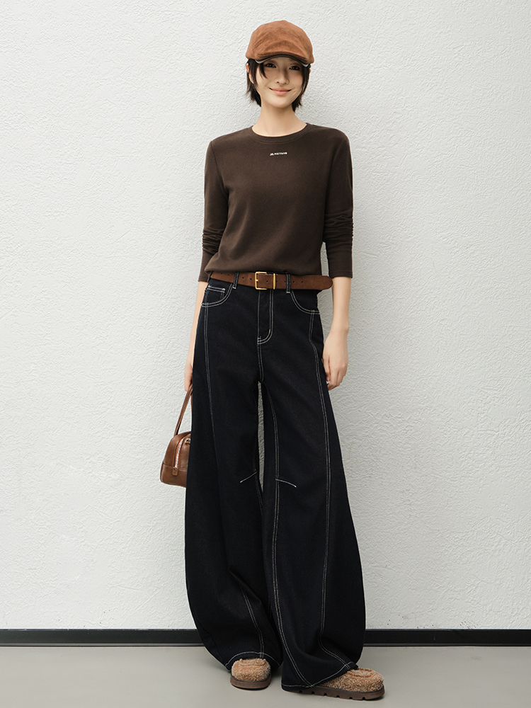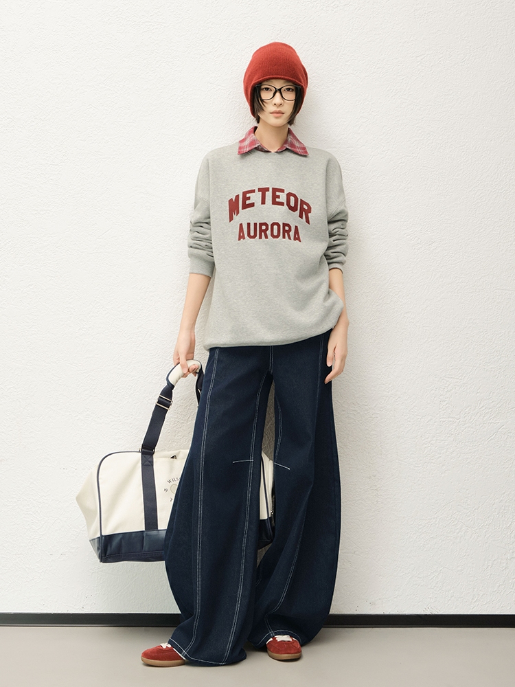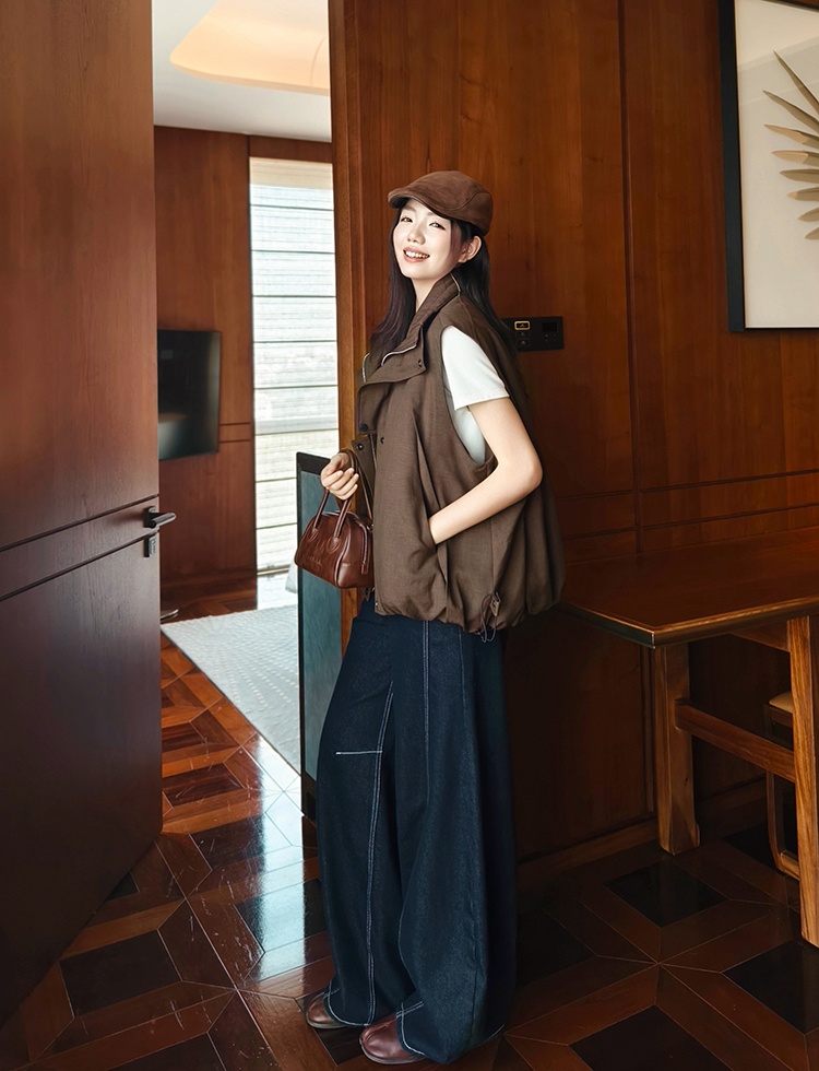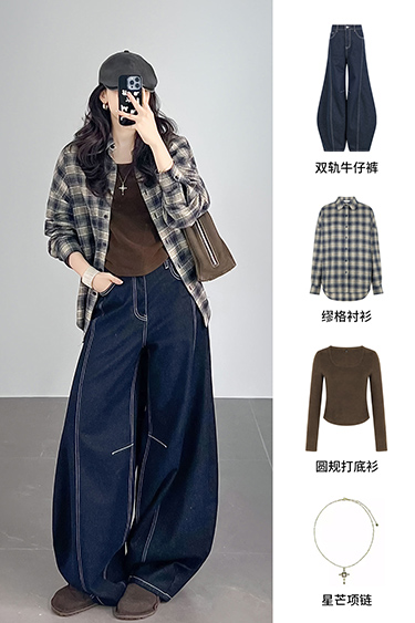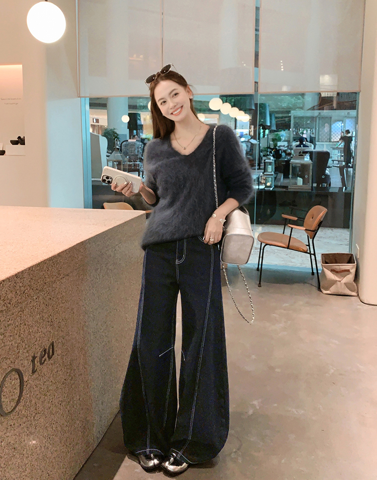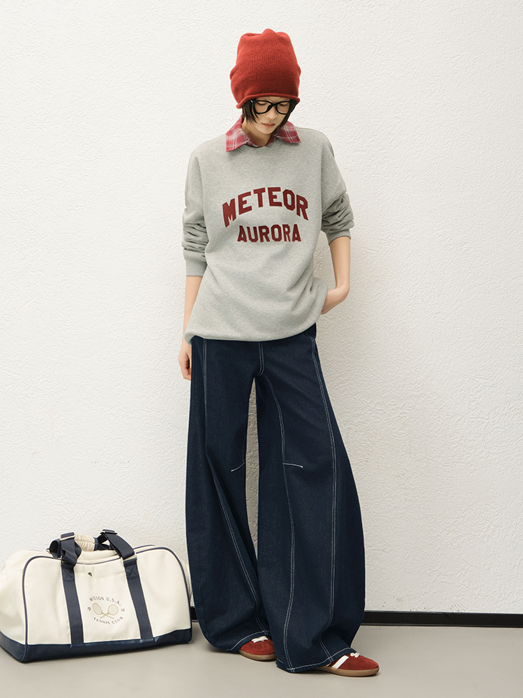 Meiyang Double Track Jeans Original Denim! Fleece-Lined Warm Balloon Pants [Small 60]-Thursday