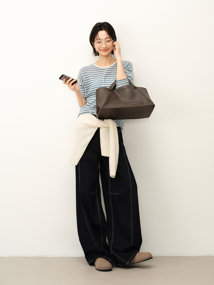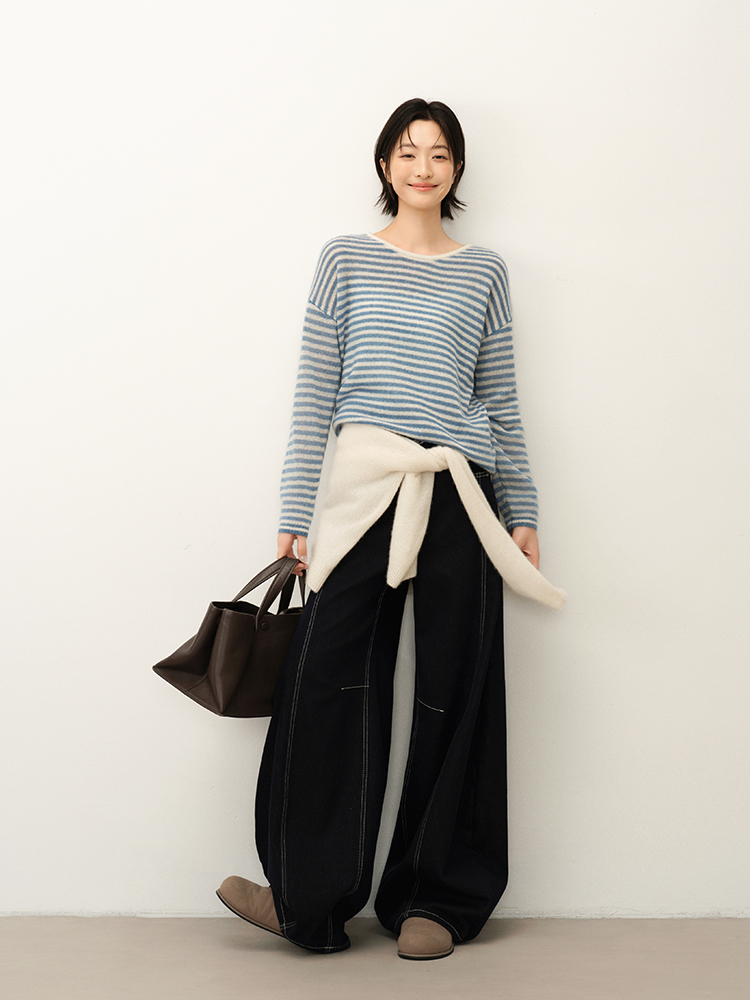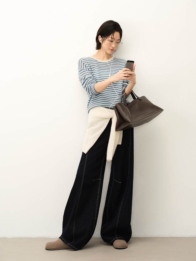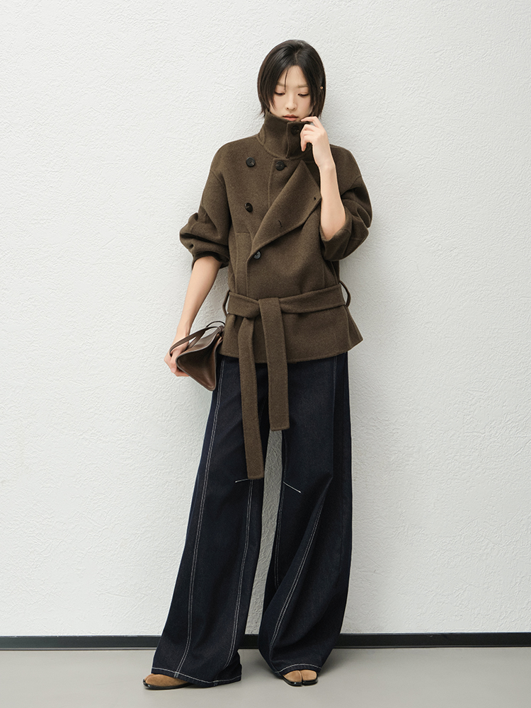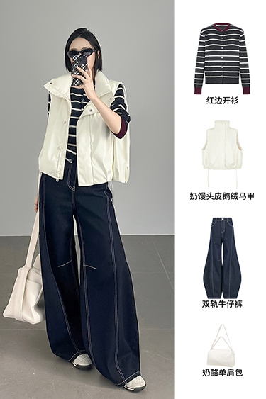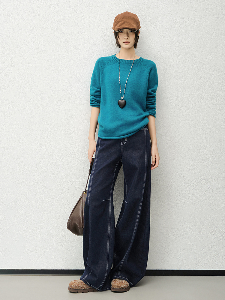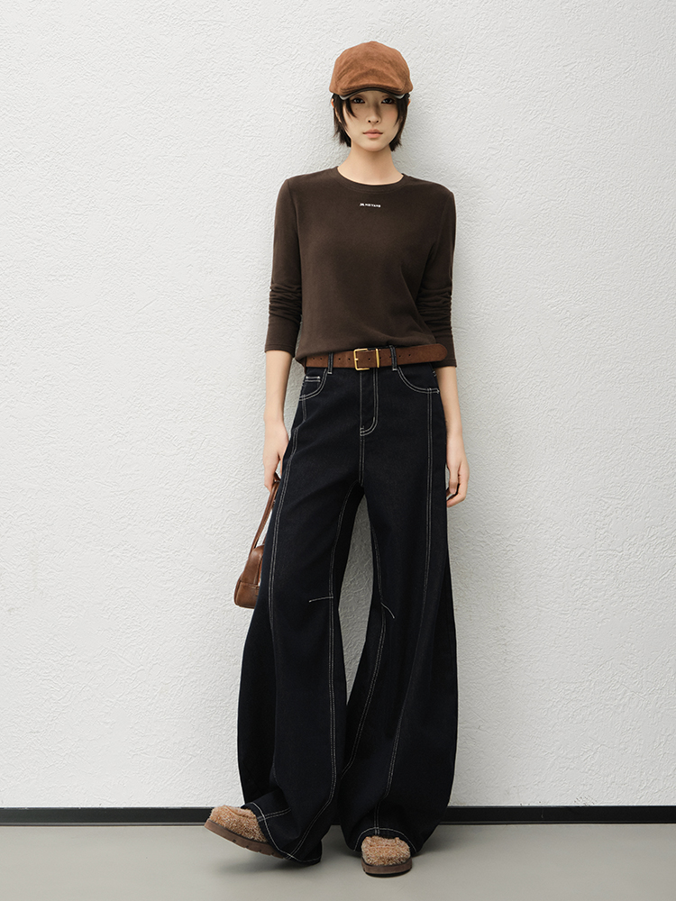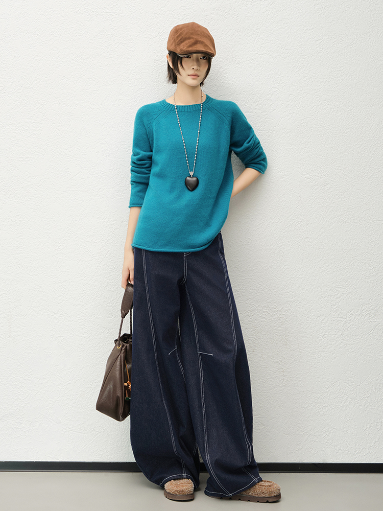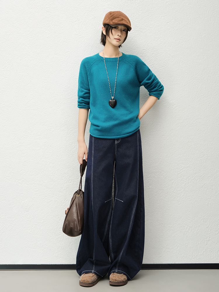 Meiyang Double Track Jeans Original Denim! Fleece-Lined Warm Balloon Pants [Small 60]-Thursday