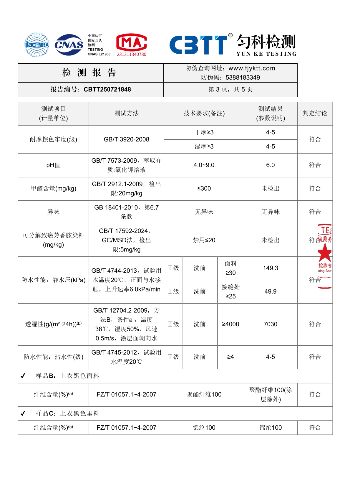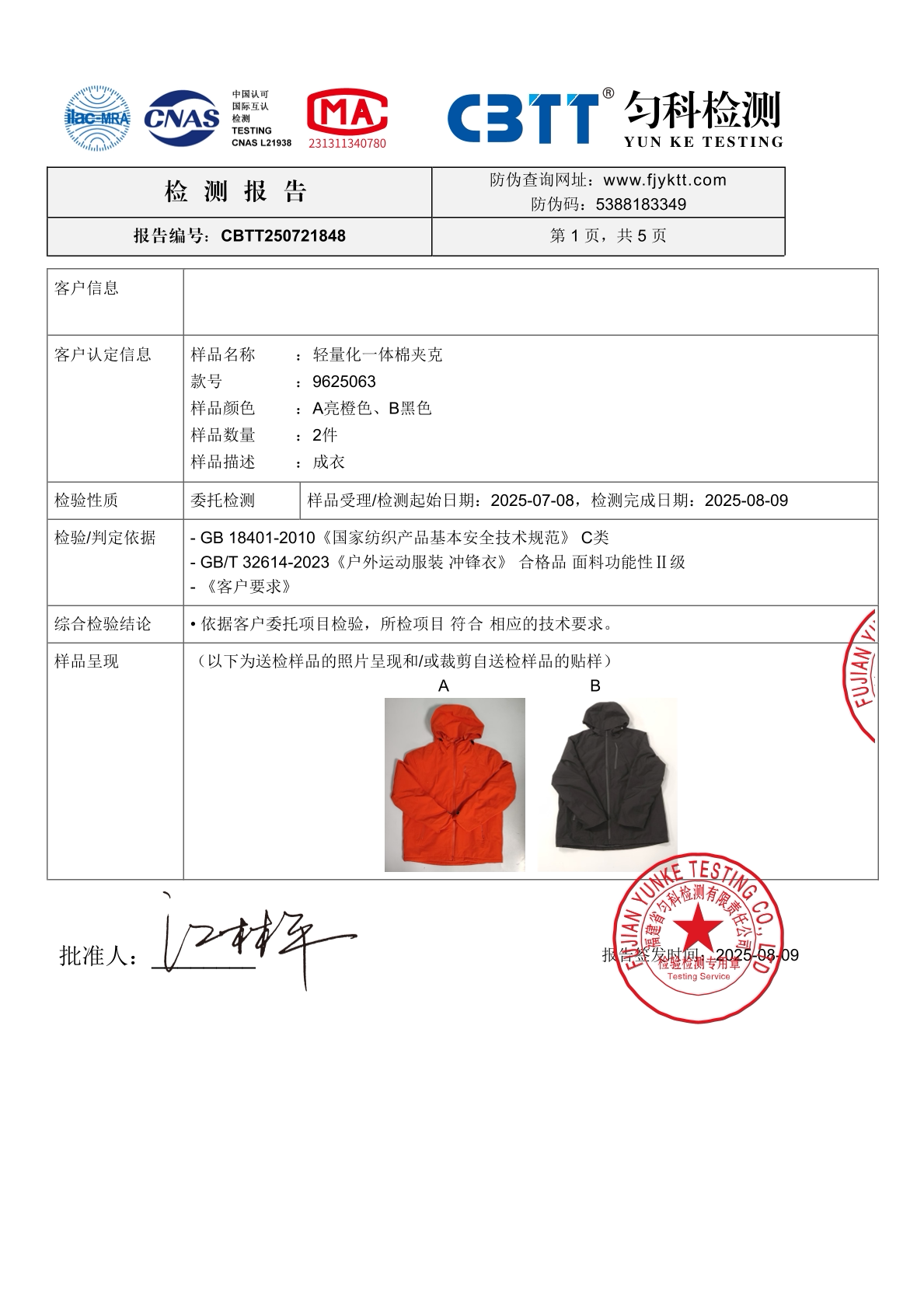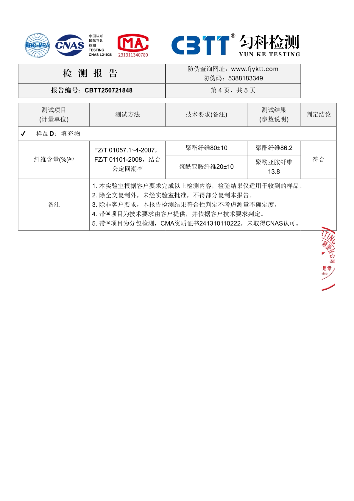 面料:聚酯纤维 里料:锦纶 填充物:20%聚酰亚胺 80%聚酯纤维