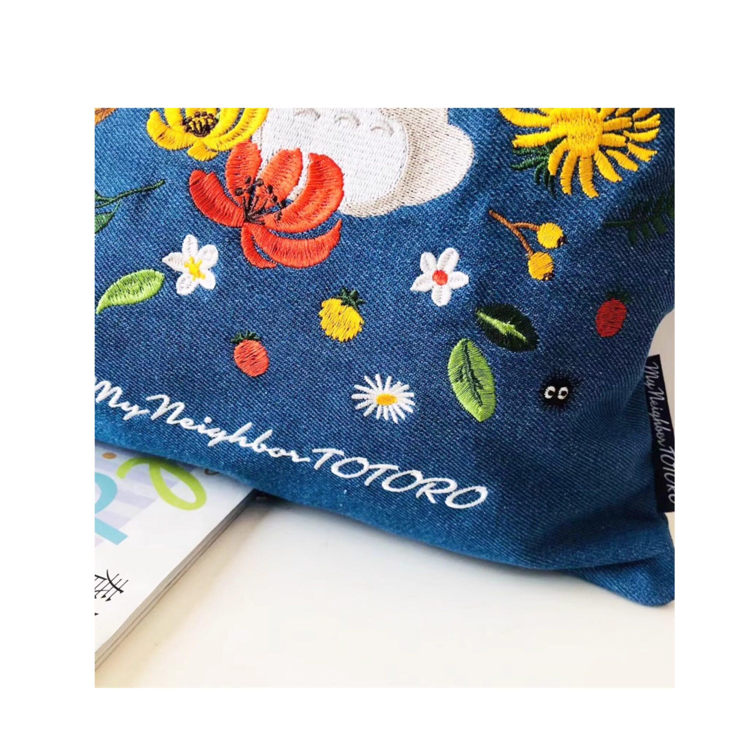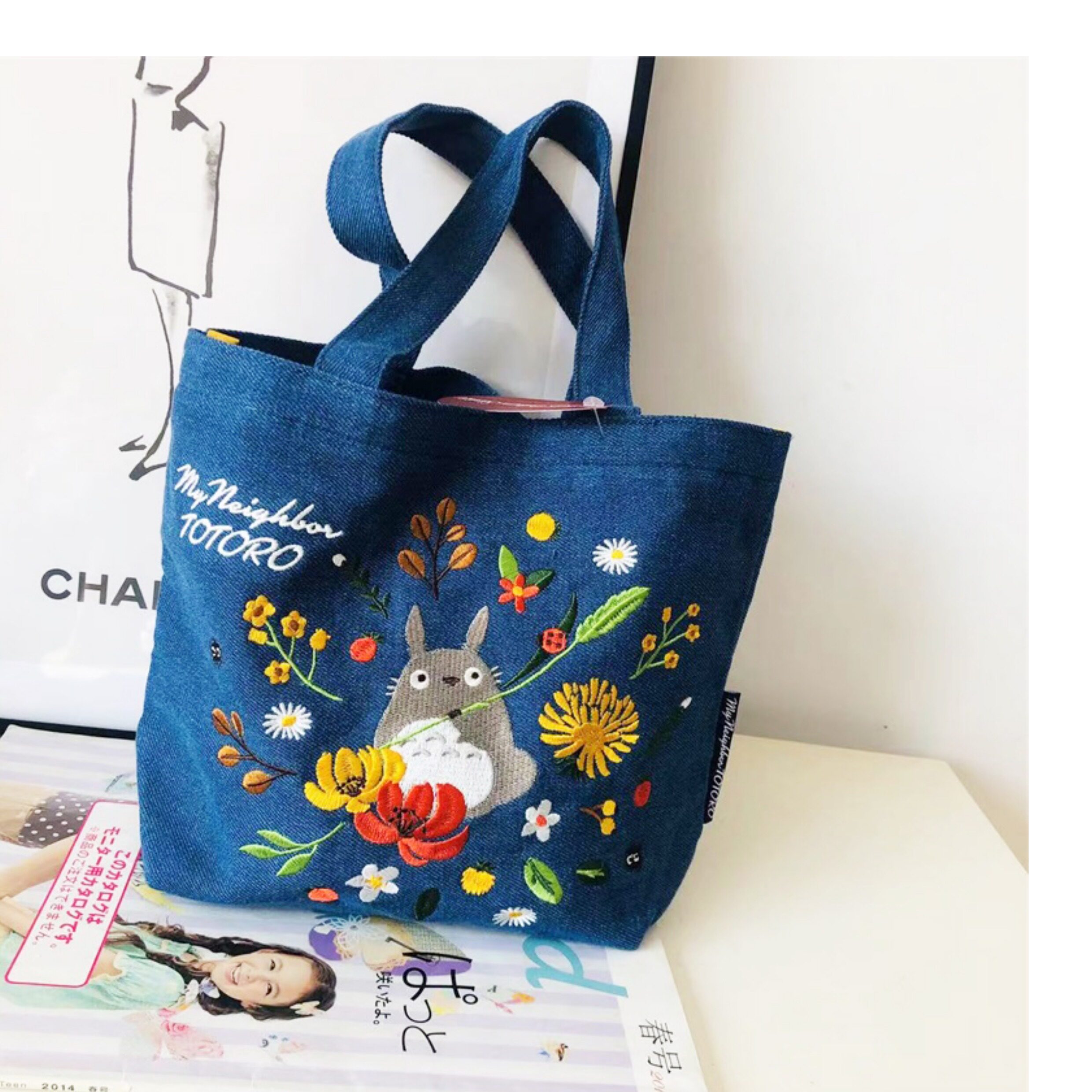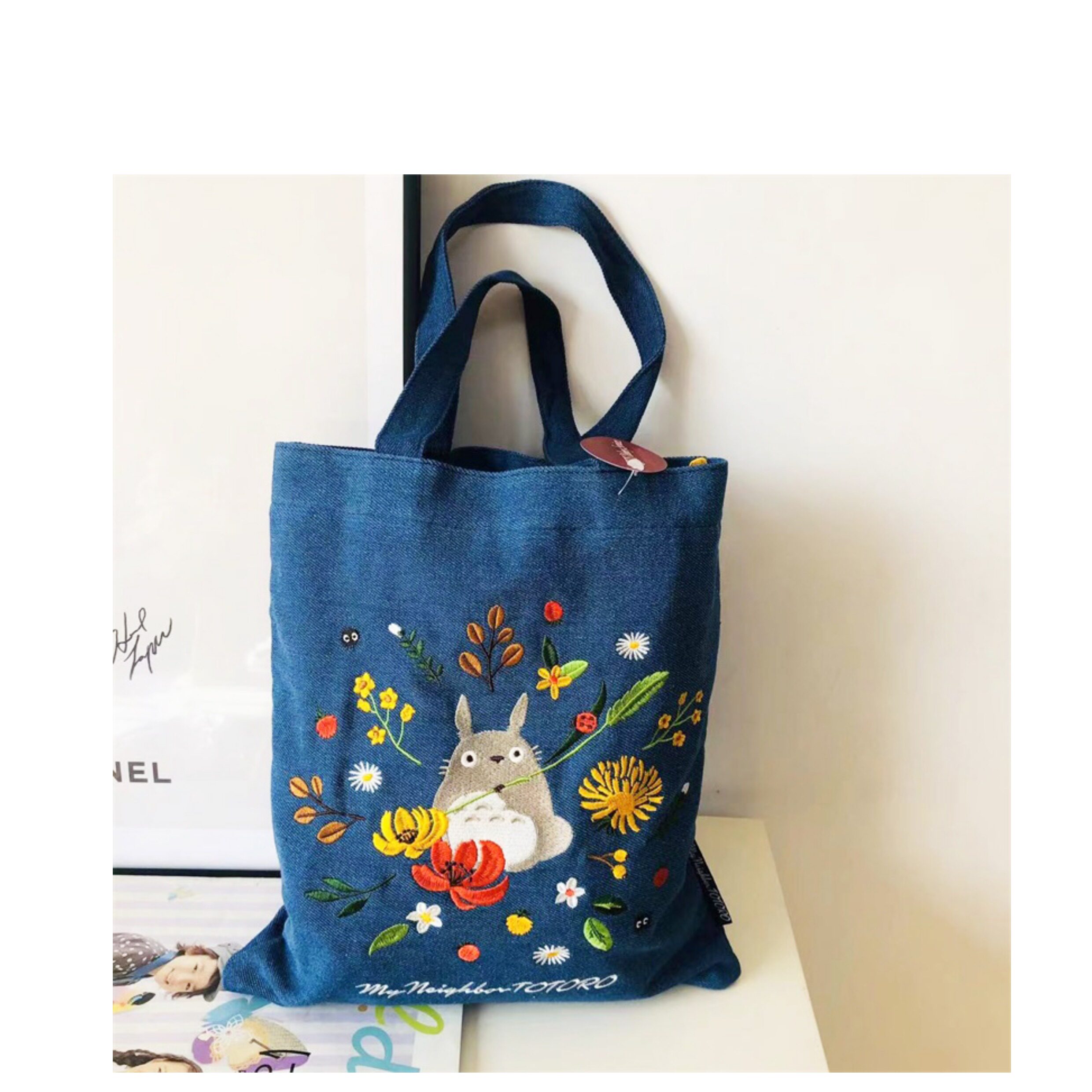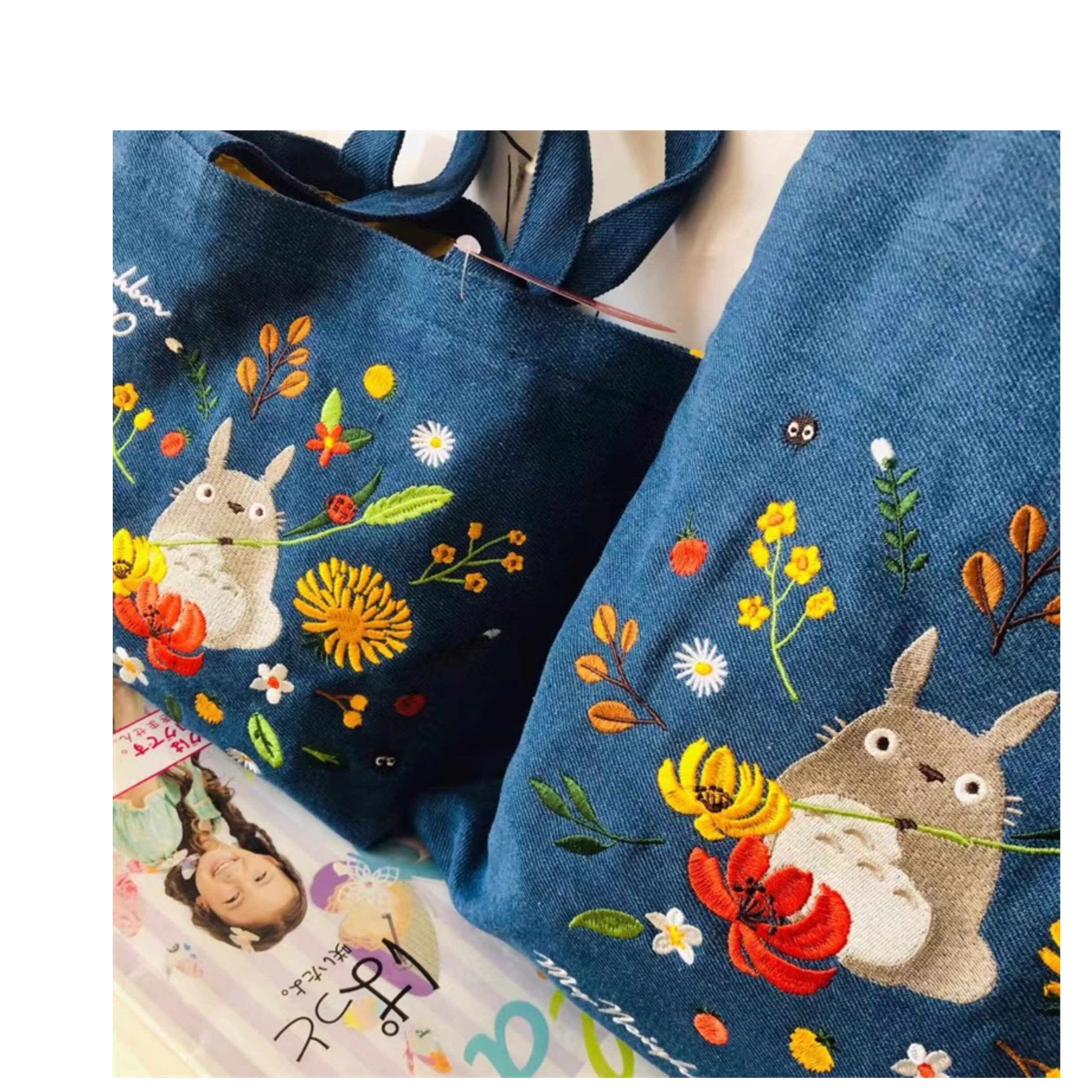 Japanese-Style Cartoon Miyazaki Versatile Totoro Tote Shoulder Casual Canvas Bag Denim Lightweight Student Embroidered Bag