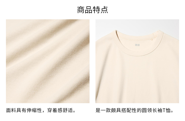 Uniqlo Women's Smooth Stretch Cotton Round Neck T-Shirt/Long Sleeve Basic Style Inner Wear 483469