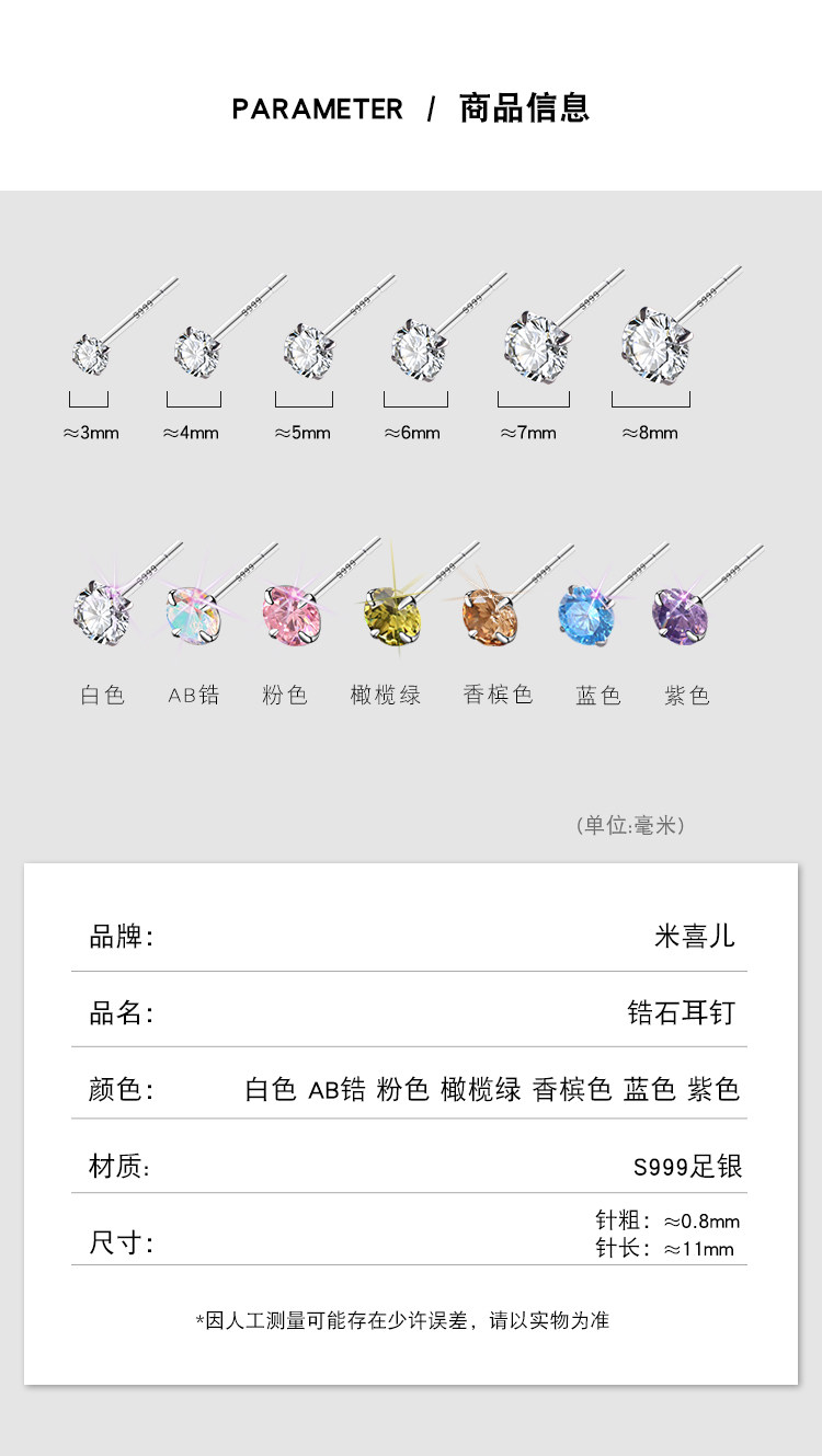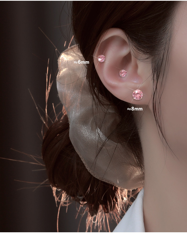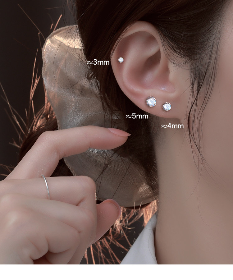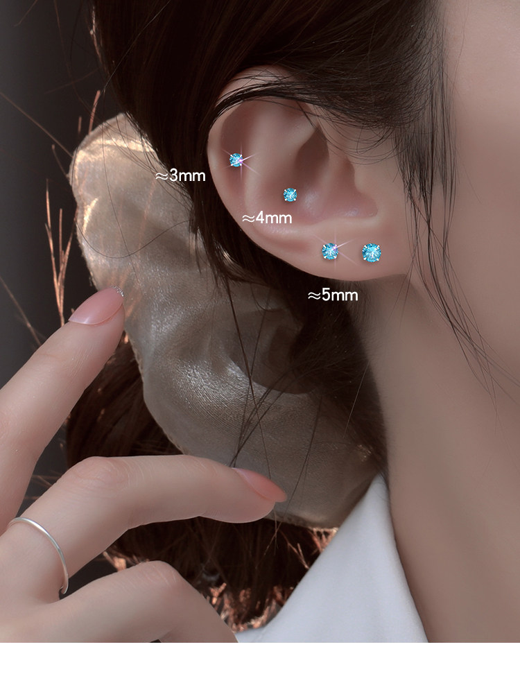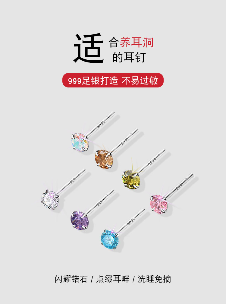 999 Pure Silver Ear Studs for Women, Super Shiny and High-End, Small Earrings, Zircon Ear Studs, Ear Rods, Ear Accessories