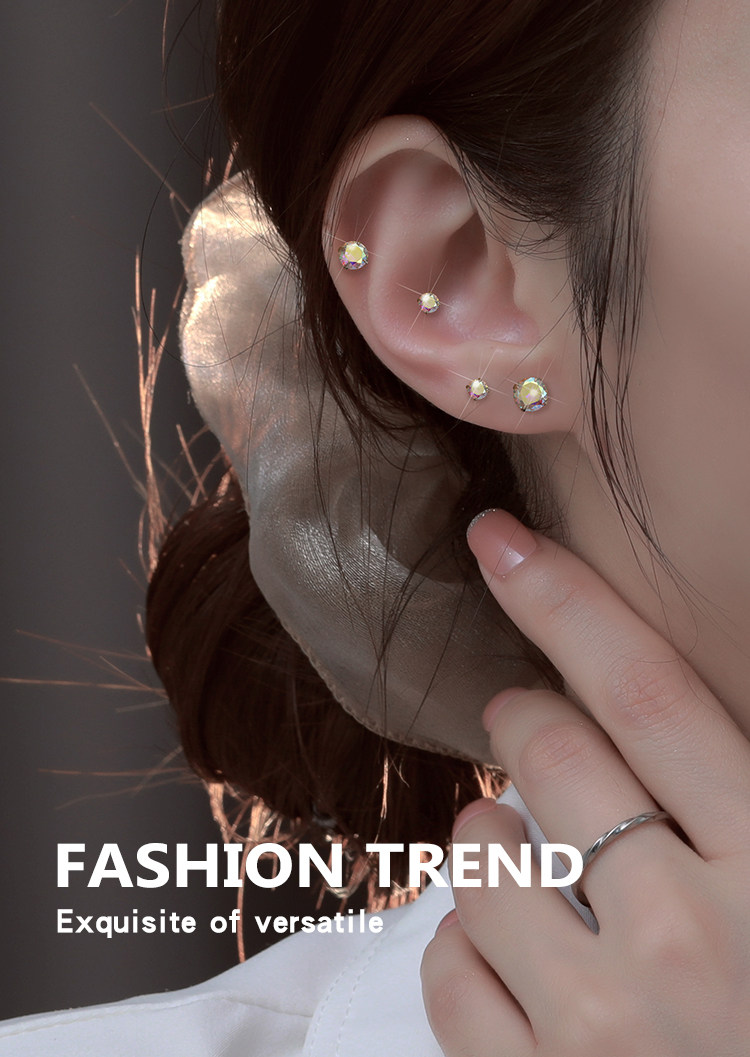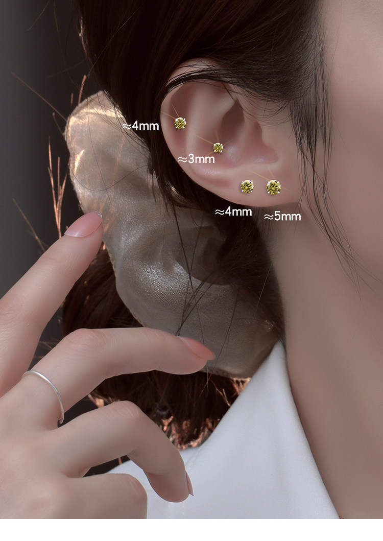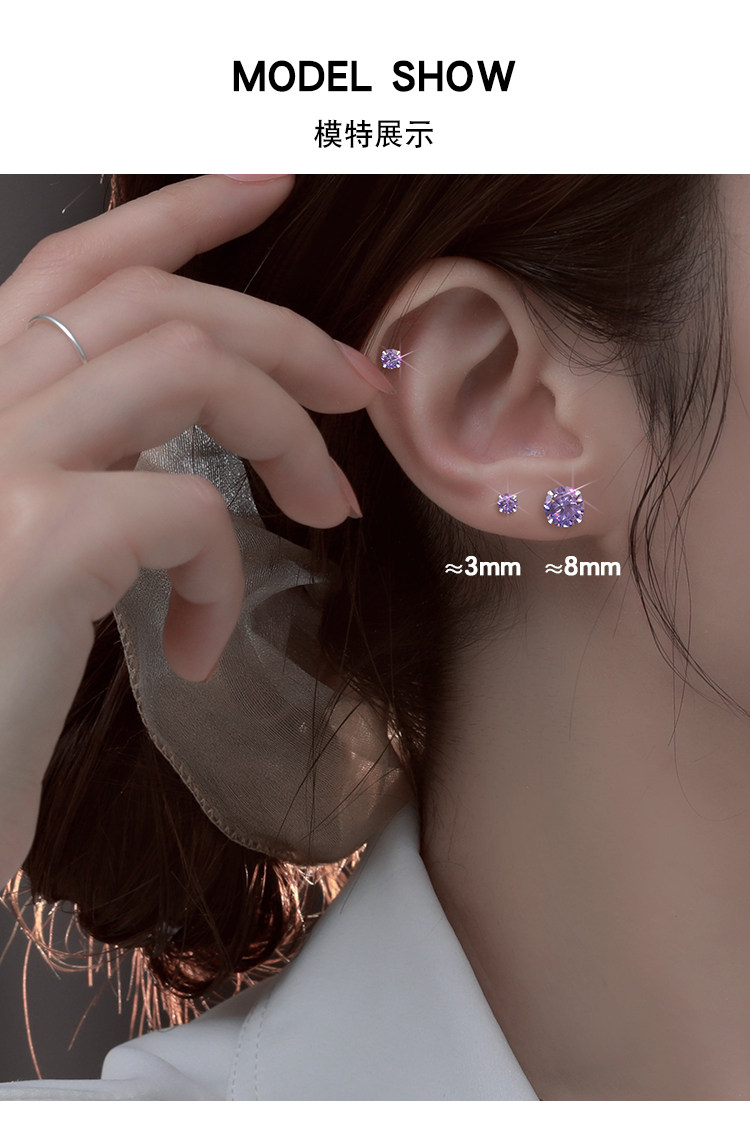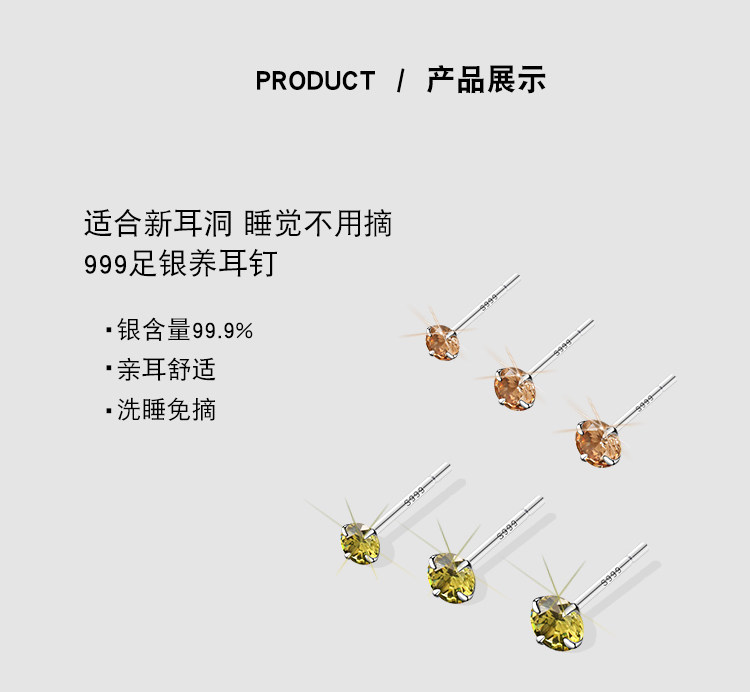 999 Pure Silver Ear Studs for Women, Super Shiny and High-End, Small Earrings, Zircon Ear Studs, Ear Rods, Ear Accessories