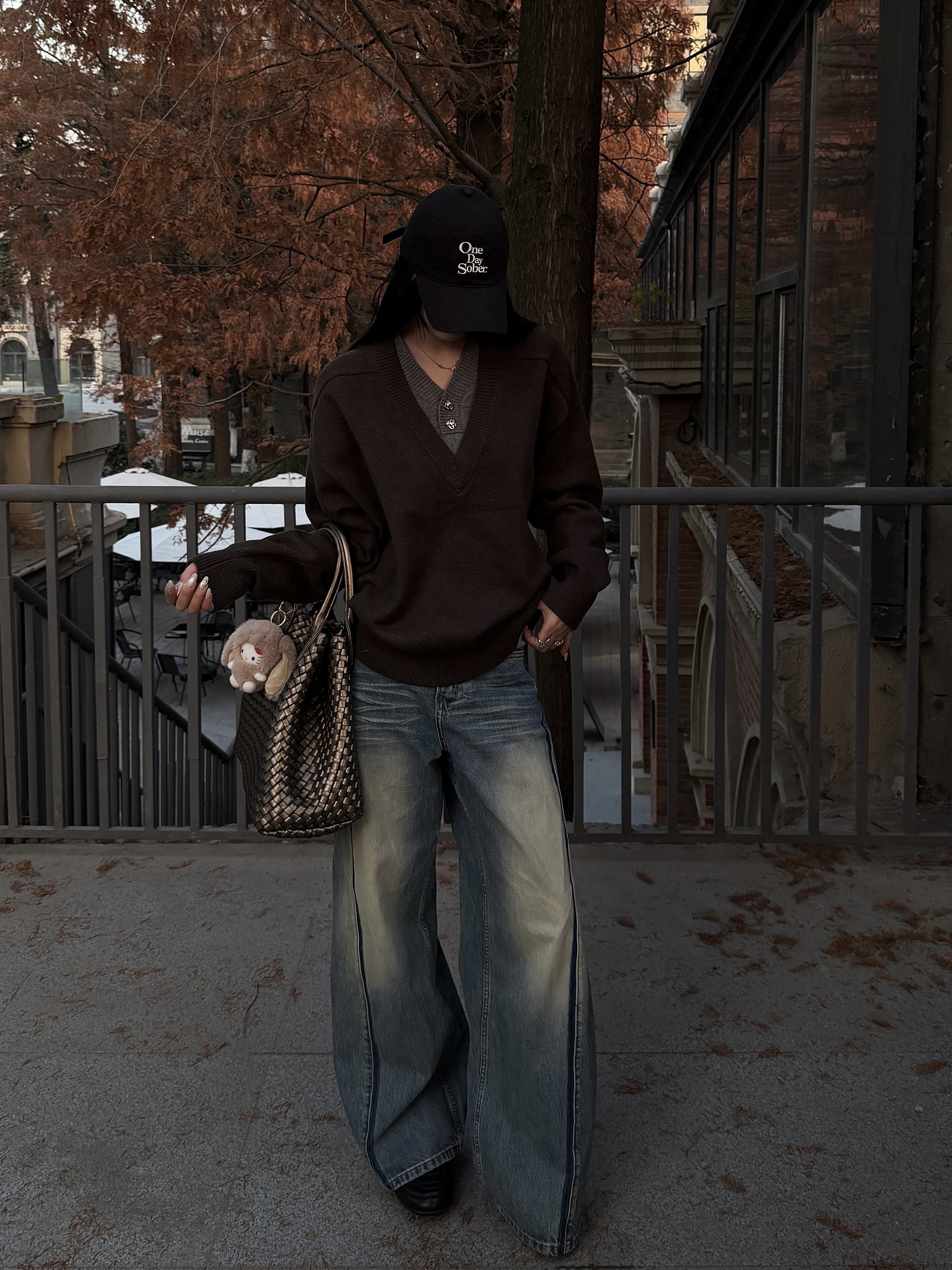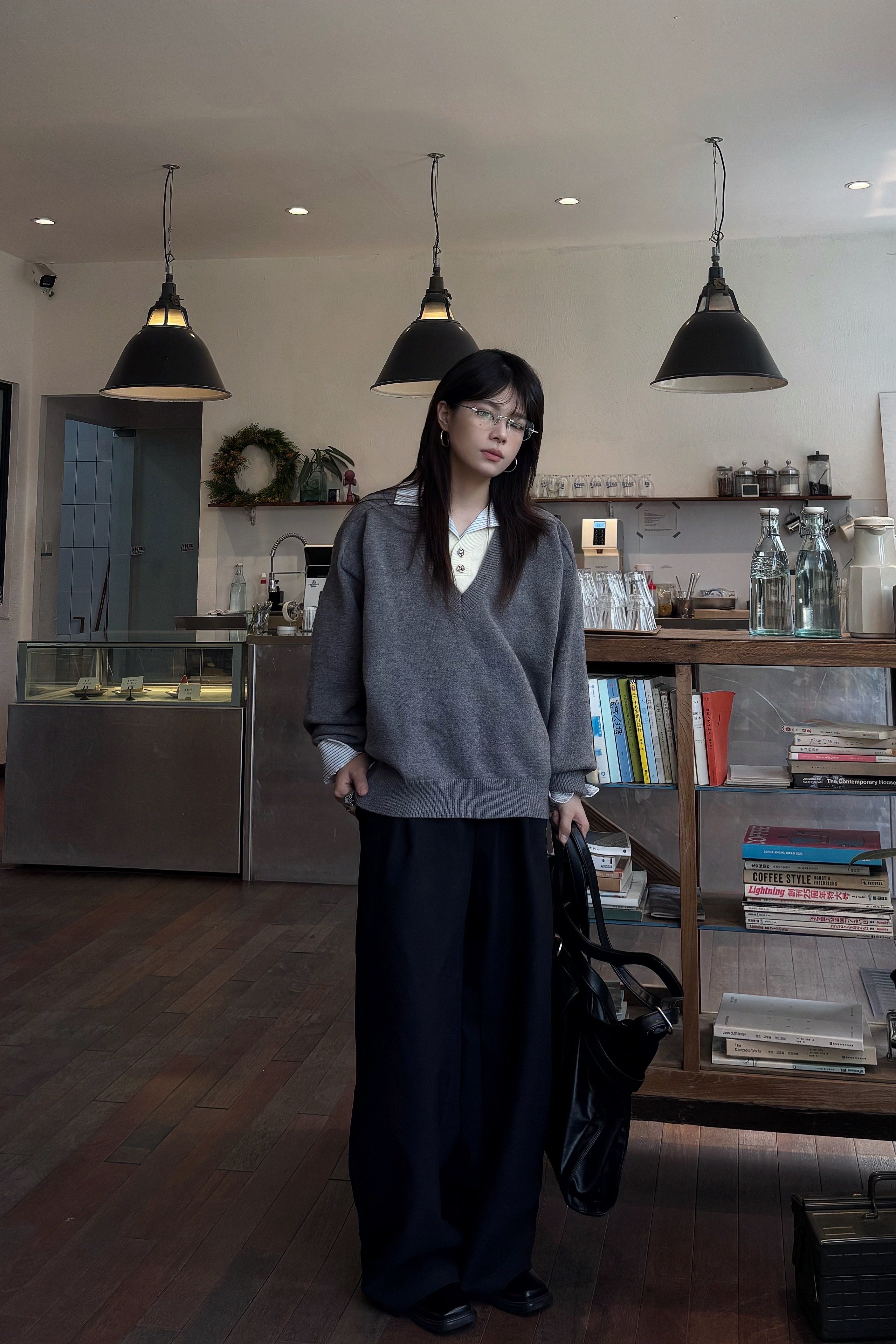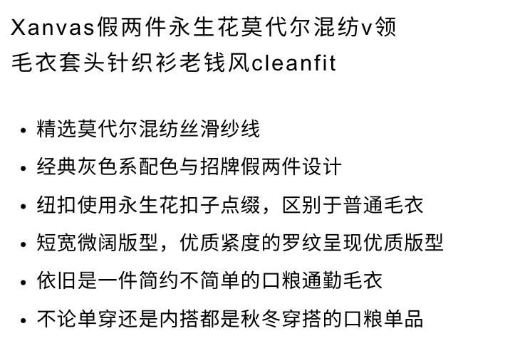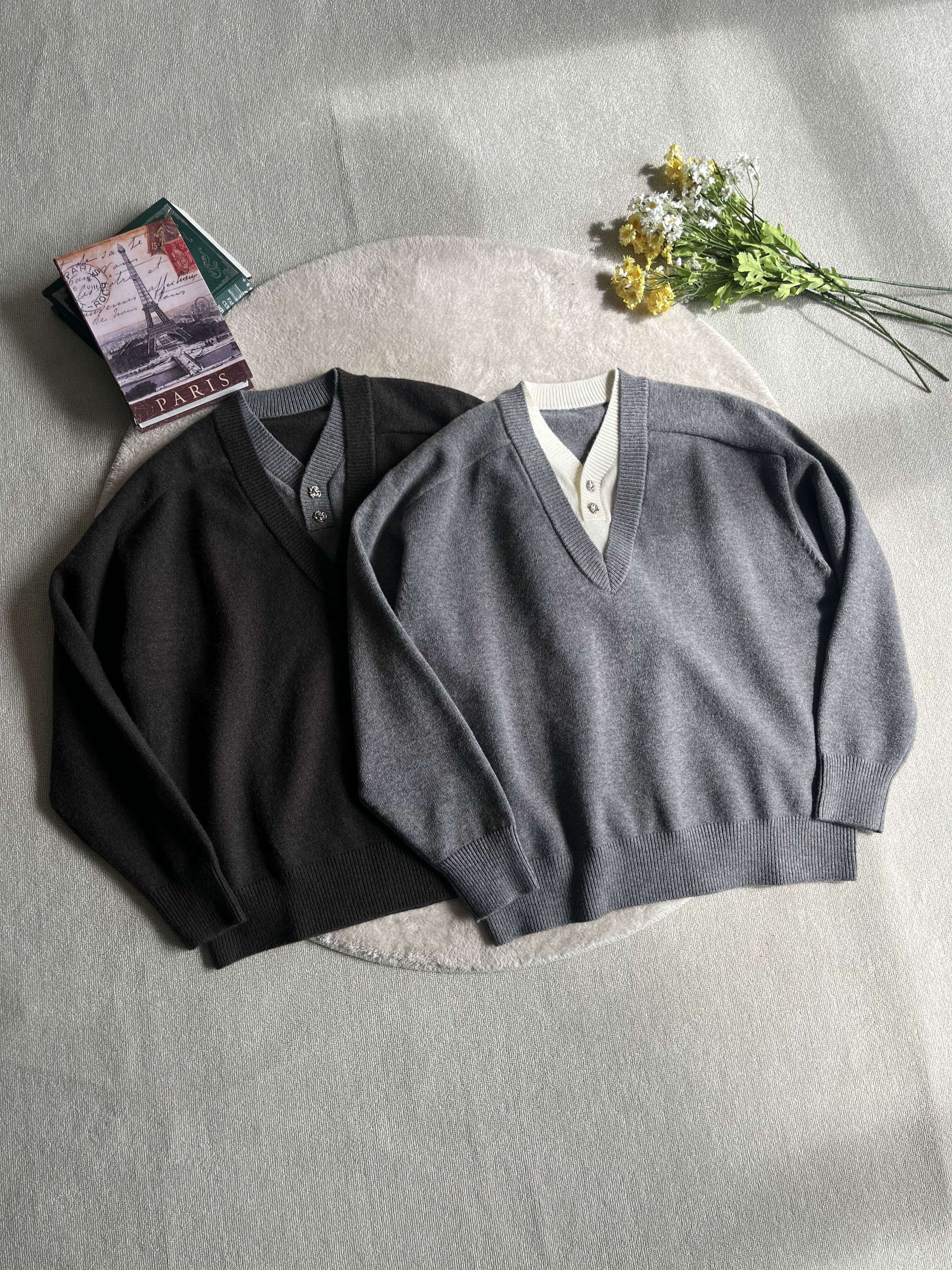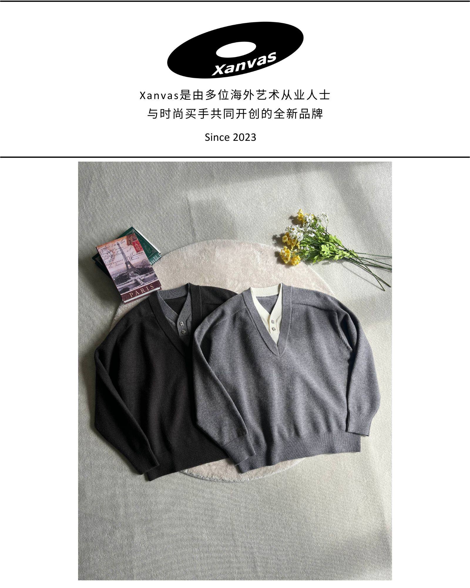 Xanvas Faux Two-Piece Eternal Flower Modal Blend V-Neck Sweater Pullover Knitwear Old Money Style Cleanfit