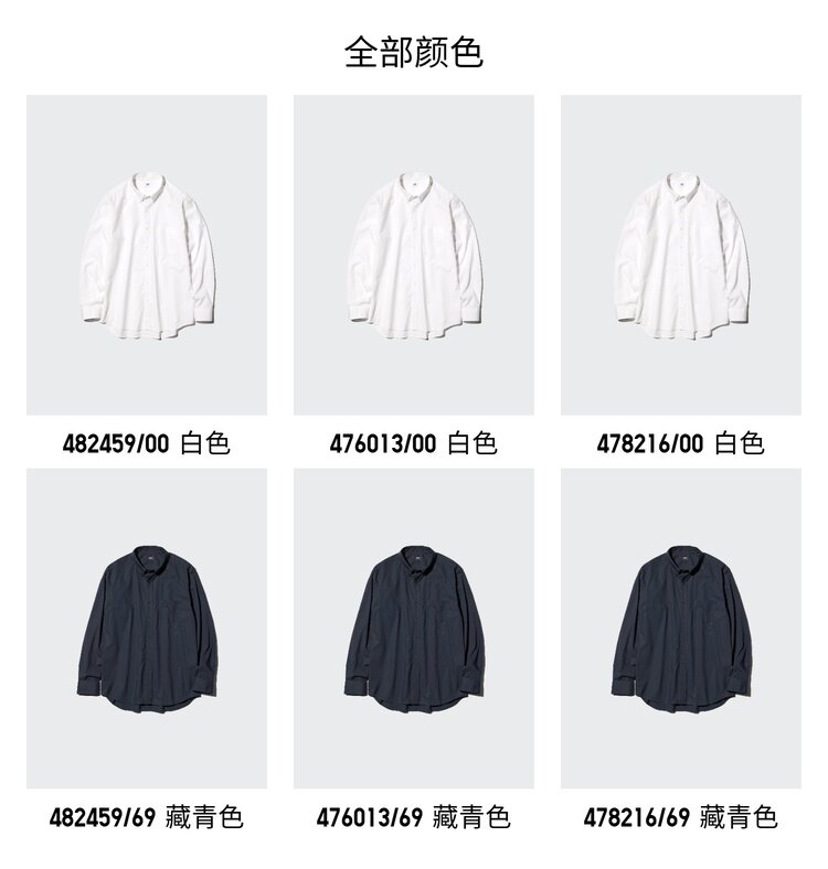 Priority Express Uniqlo Men's and Women's High-Quality Long-Staple Cotton Shirts/Long-Sleeve Shirts 482459 478216