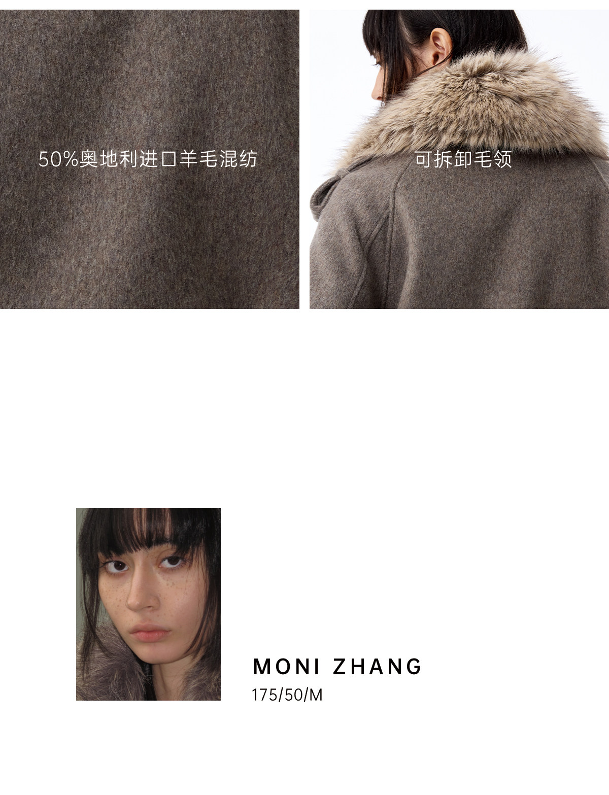 Jcaesar Women Detachable Fur Collar Double-Breasted Short Woolen Coat Austrian Wool Blend Jacket