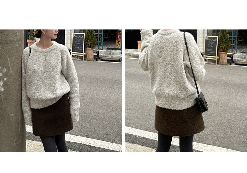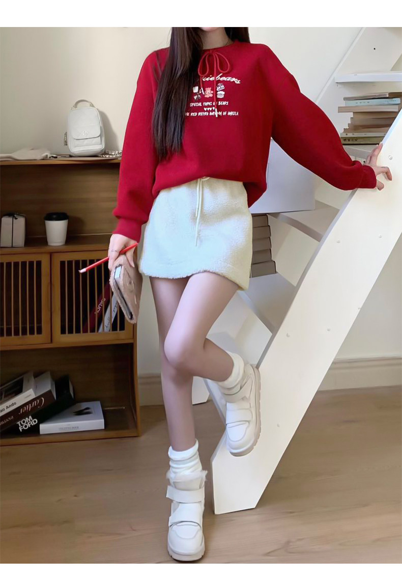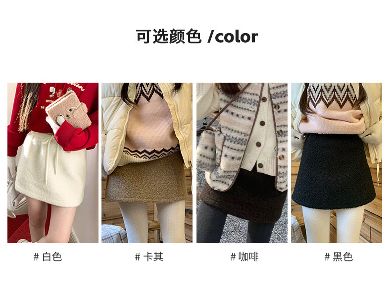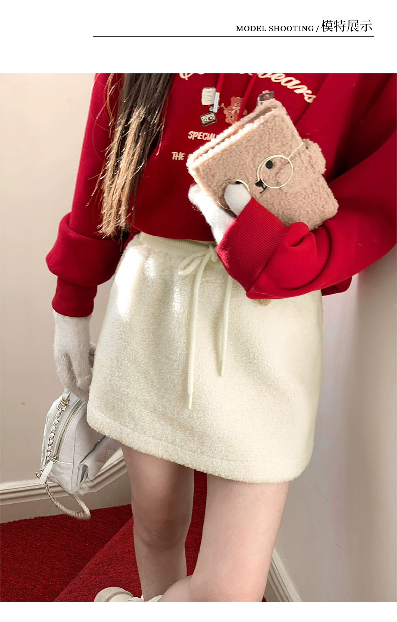 Off-White Lamb Wool Skirt for Women, Autumn and Winter 2025 New Style, High-Waisted, Petite, Elegant A-Line Bodycon Mini Skirt