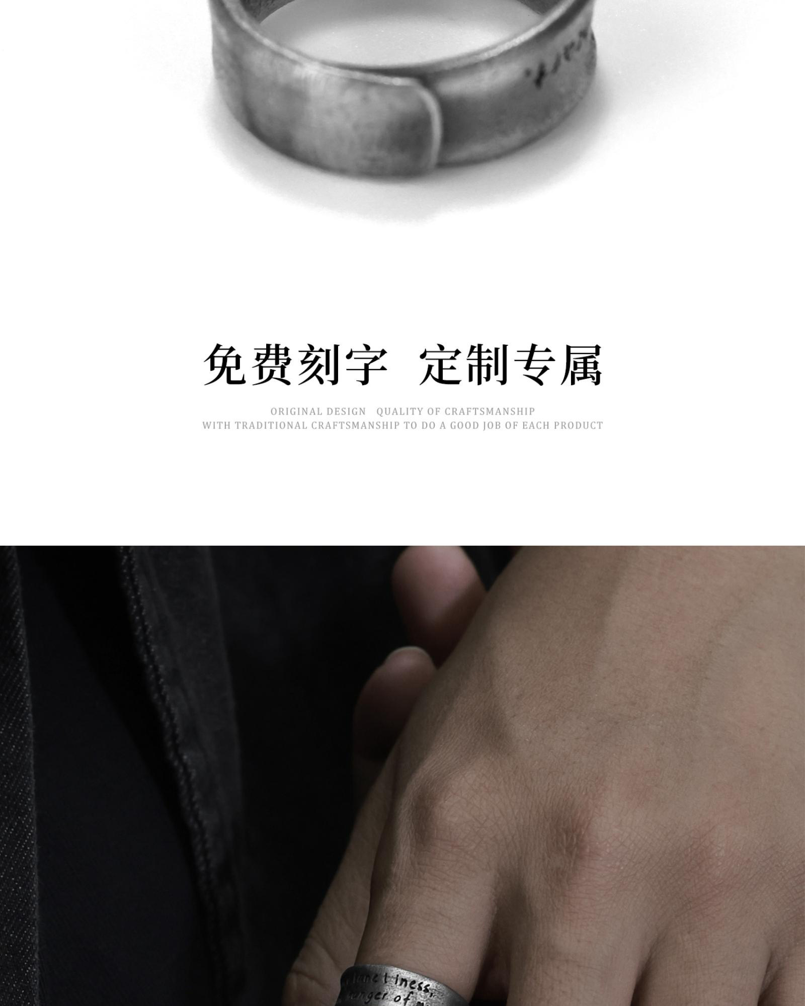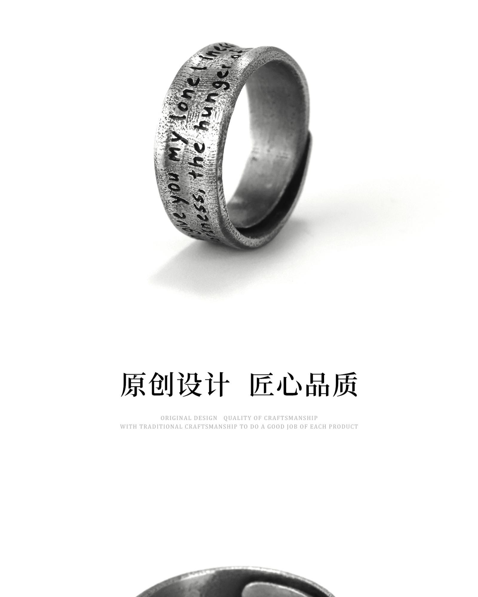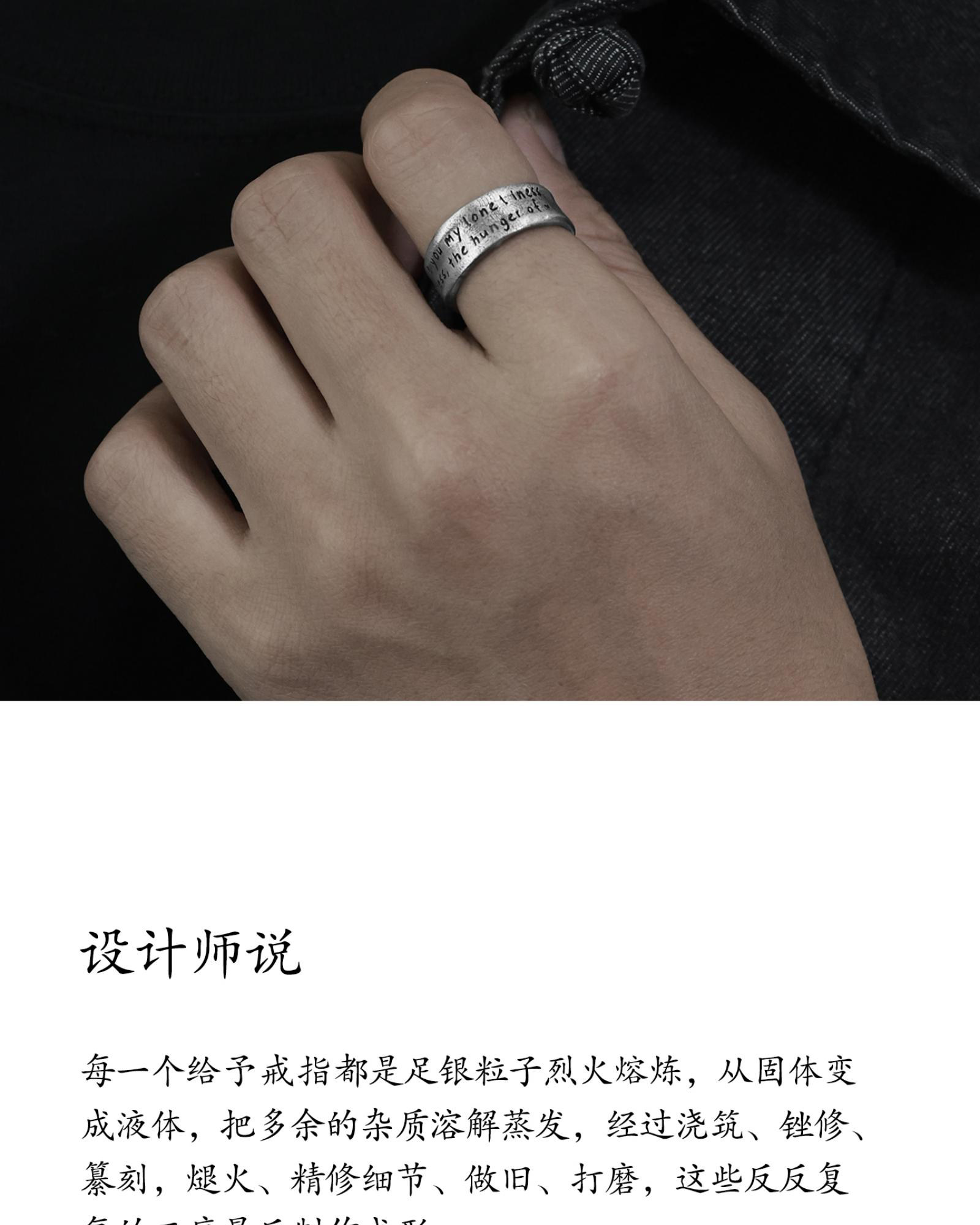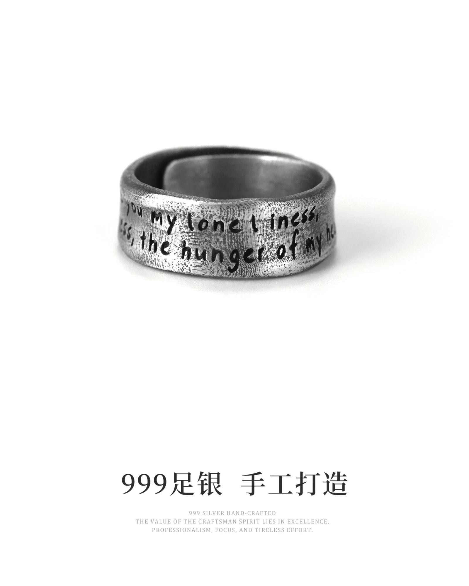 Yinshu Original "Give" S999 Pure Silver Wide Band Ring, Unique and Unisex Style, High-End Feel