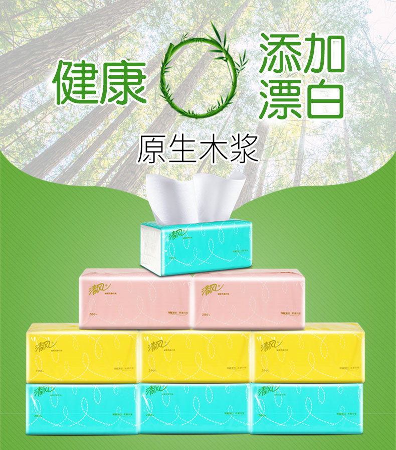 Qingfeng Tissue Paper Household Tissues 2-Ply 200 Sheets Large Pack Toilet Paper Tissue 3 Packs 1 Bundle Economical Pack