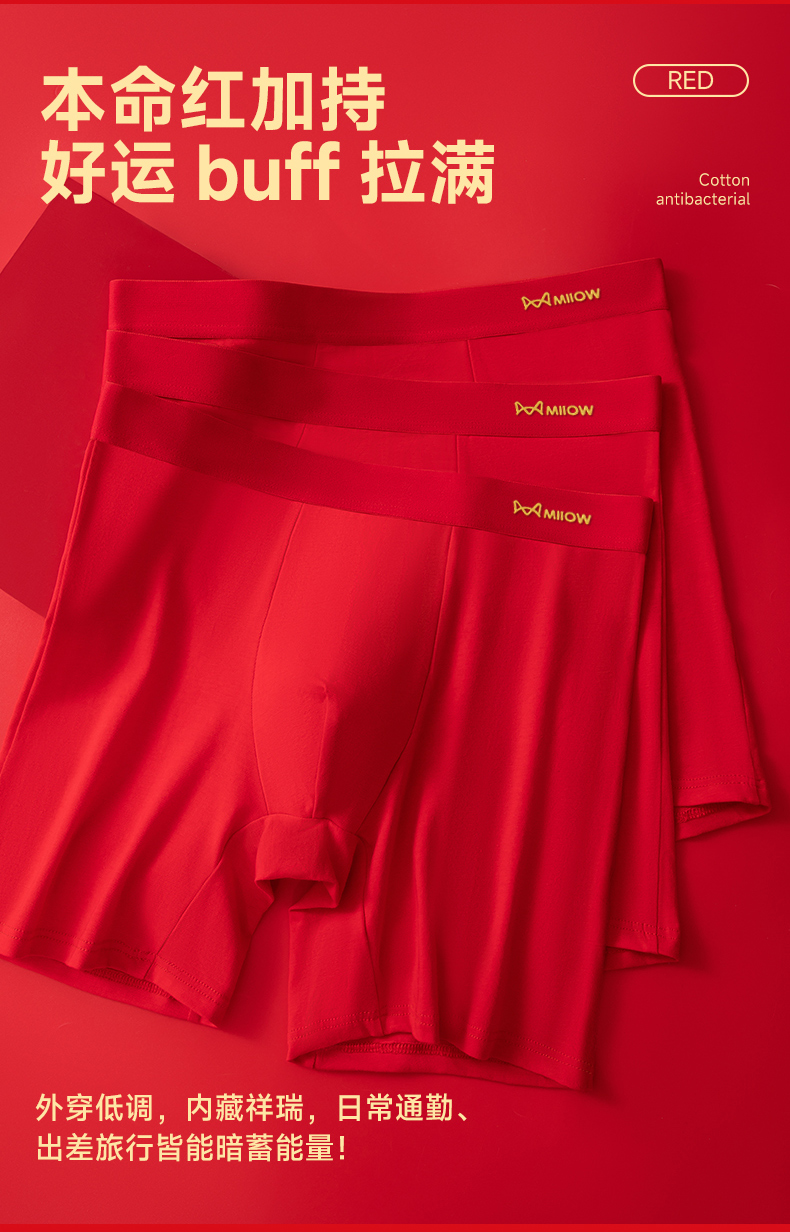 Catman Men's Underwear Pure Cotton Extended Anti-Chafing Leg Sports Red Zodiac Year Boxer Briefs Large Size Boxer Shorts