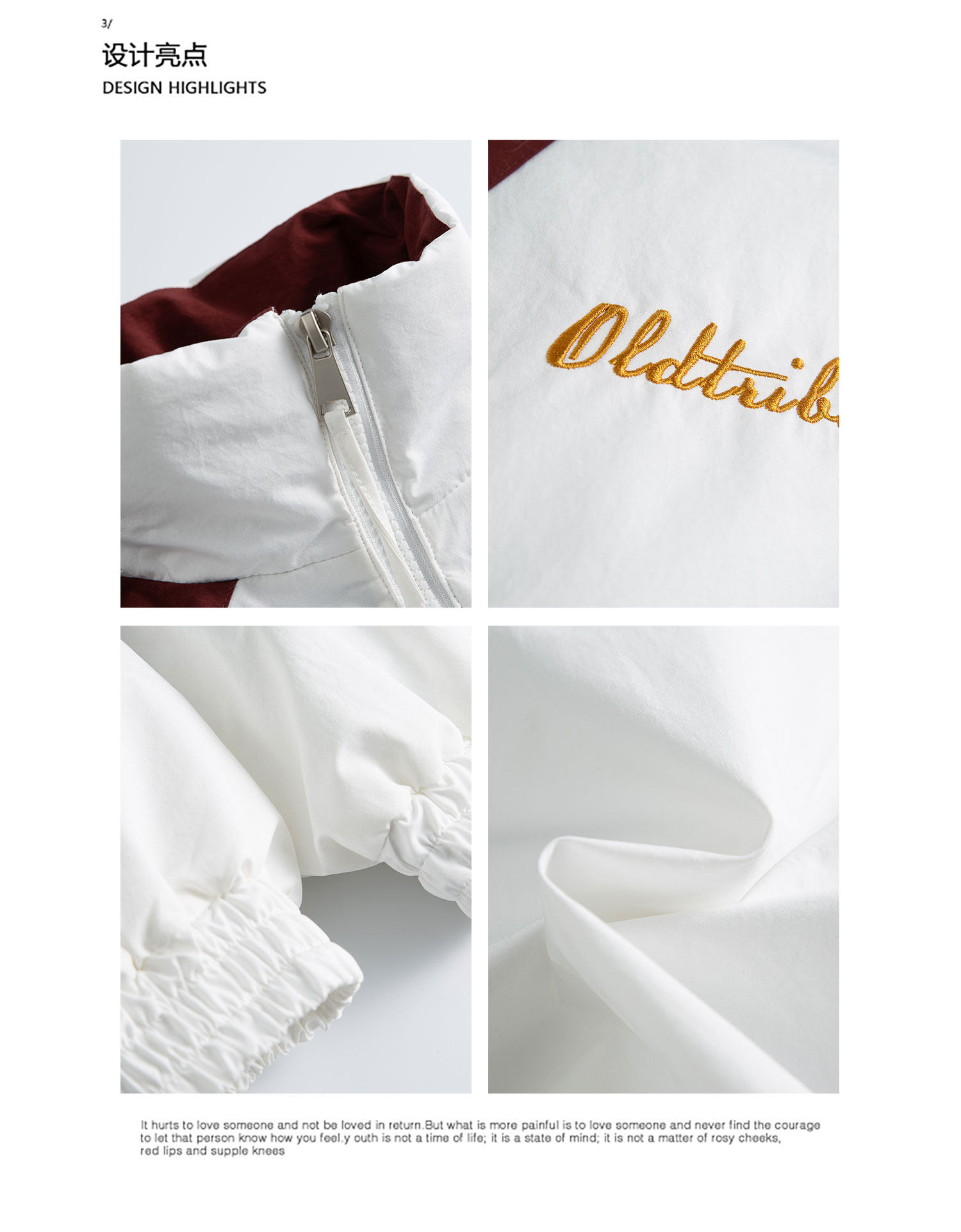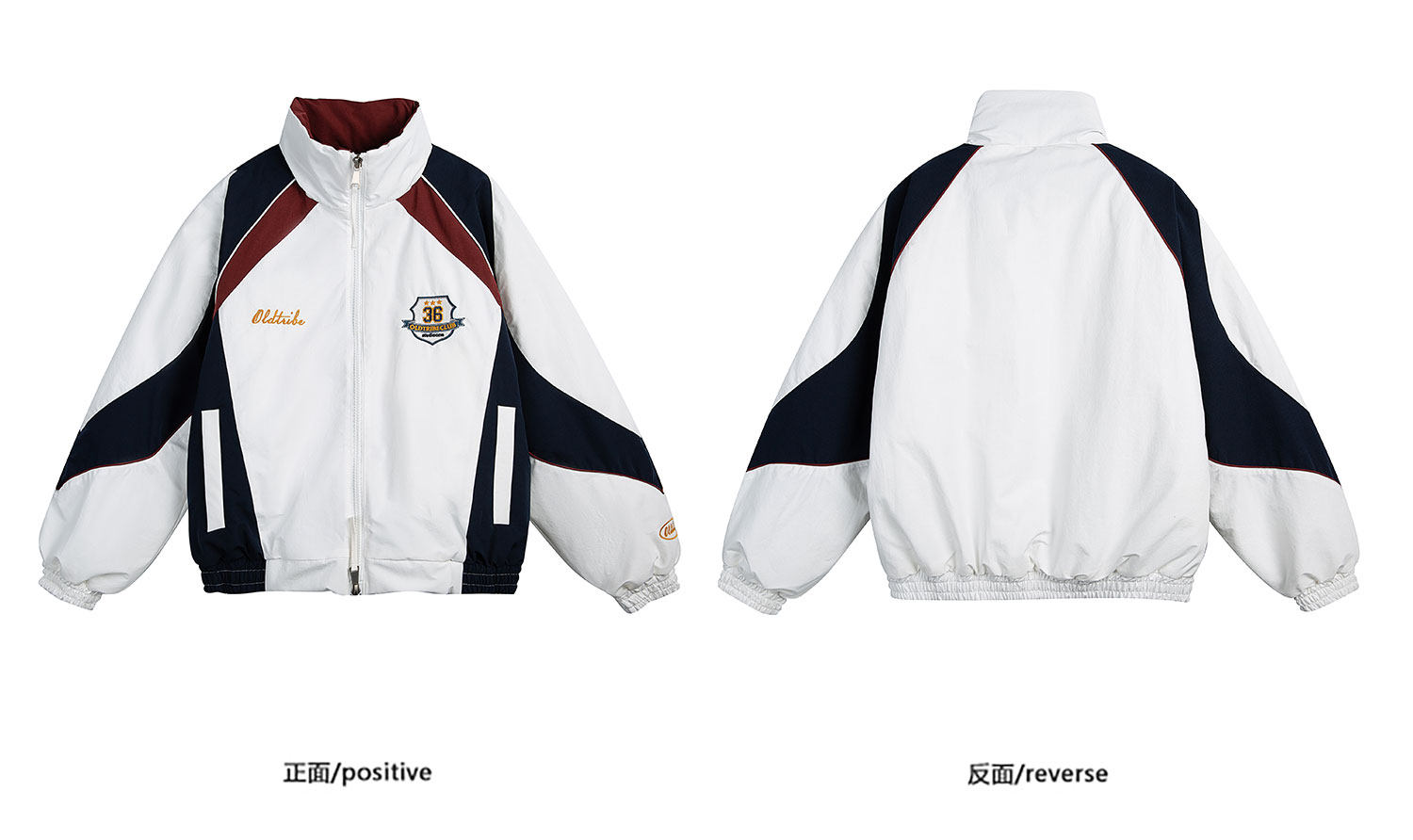 K787 American Retro Letter Embroidery Color-Block Stand Collar Cotton Jacket Unisex Trendy Brand Warm Couple Zipper Cotton Coat