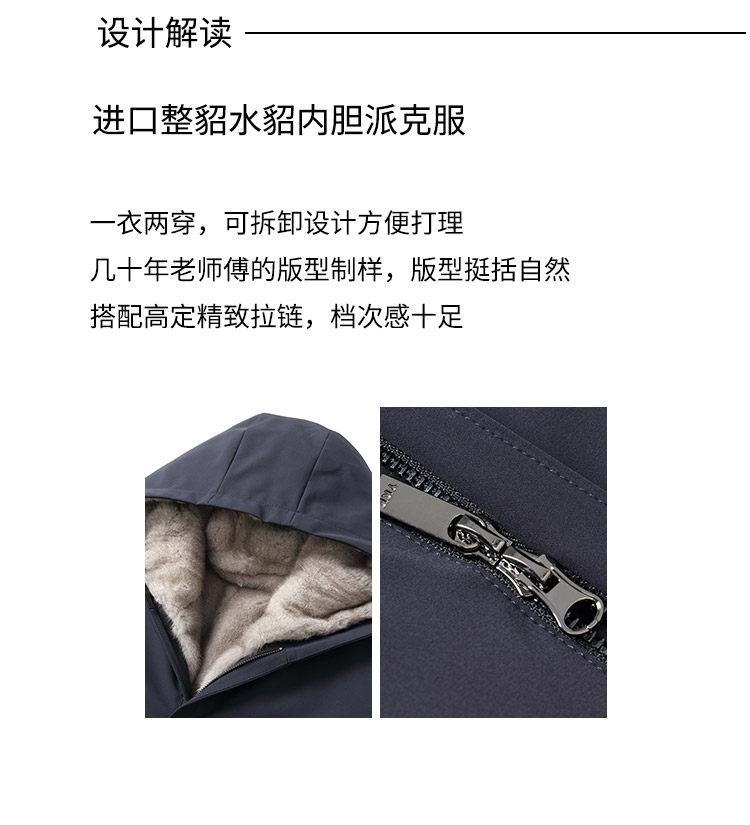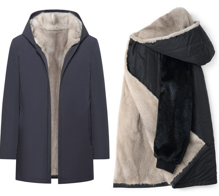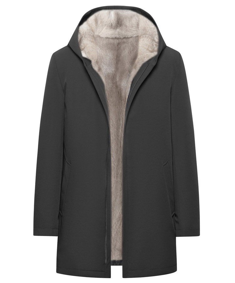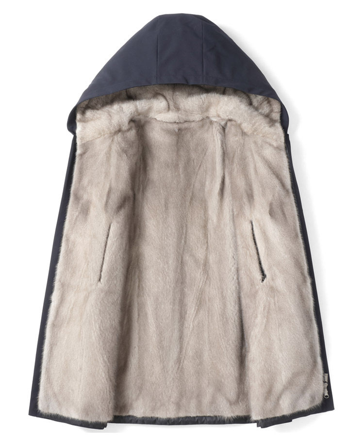 2025 New Parka Men's Mink Fur Lining Whole Mink Fur Hooded Parka Thickened Fur Integrated Coat