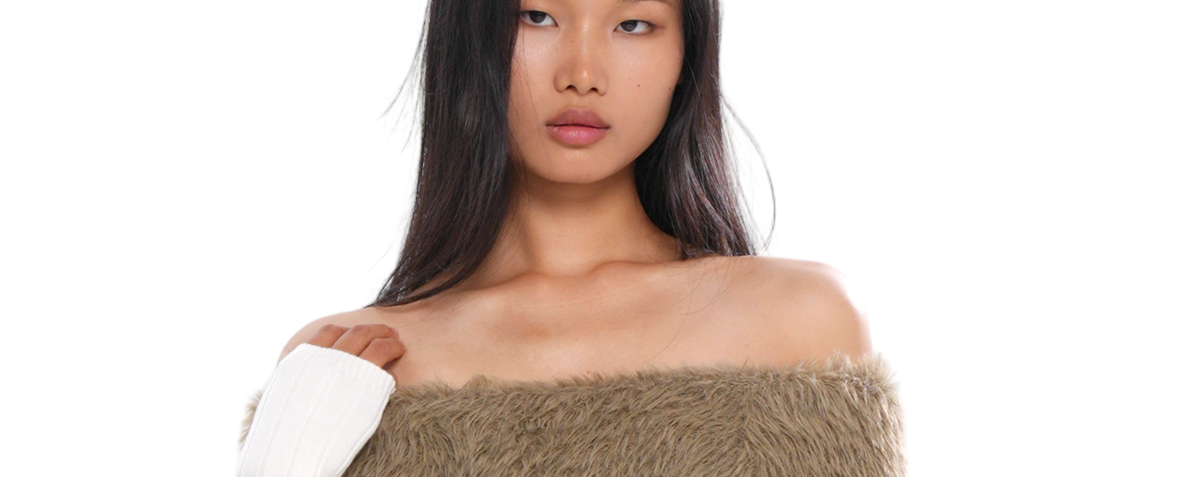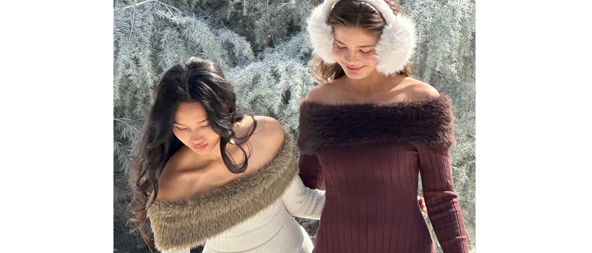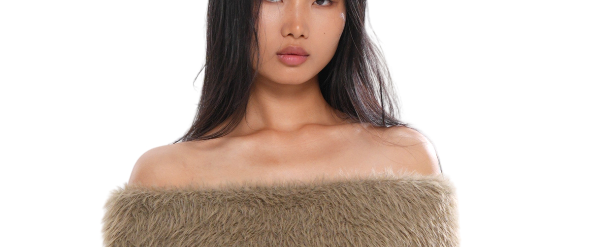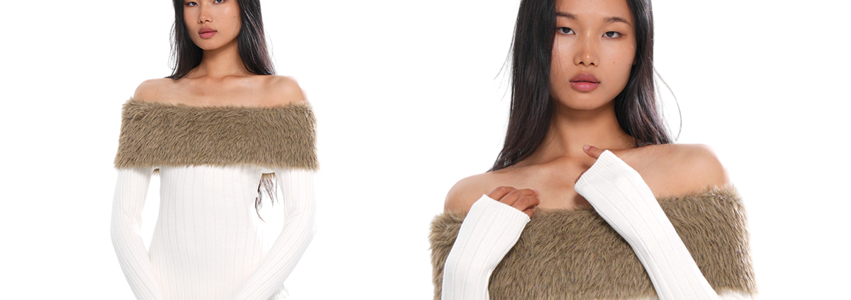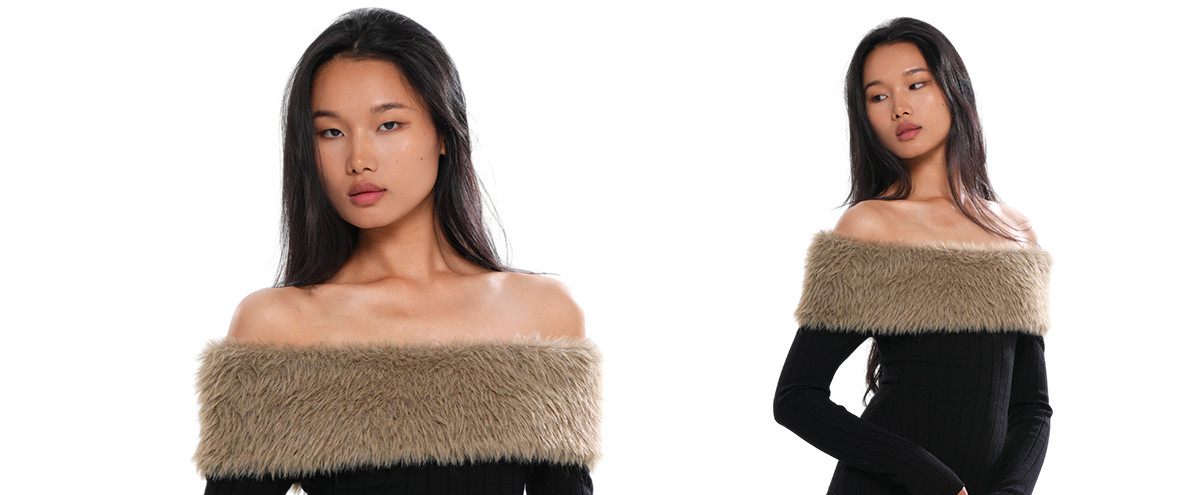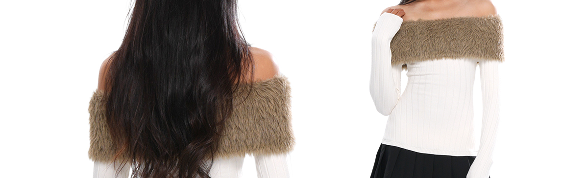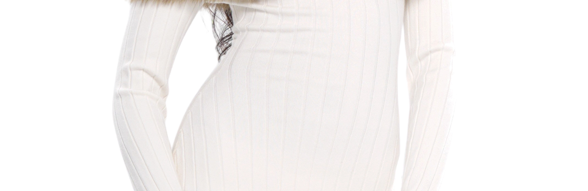 Sweetchilling25 Winter Furry One-Shoulder Waist-Cinching Slimming Patchwork Pleated Hot Girl Dress