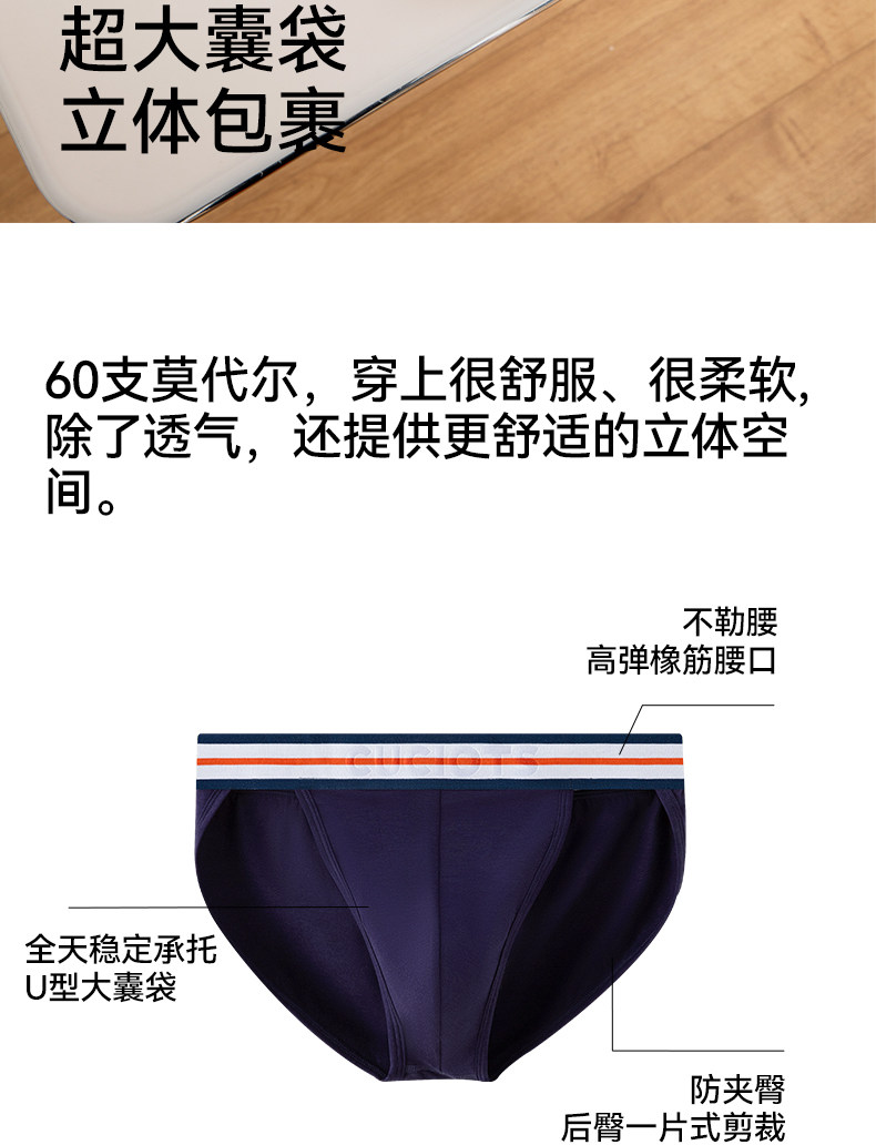 Men's High-Cut Modal Briefs with Large Pouch, Sexy High-Slit Briefs for Young Men, Sporty Style