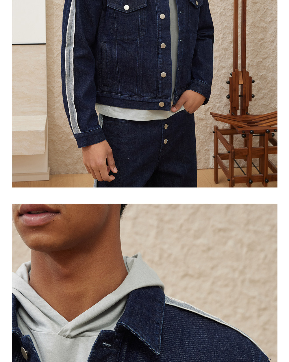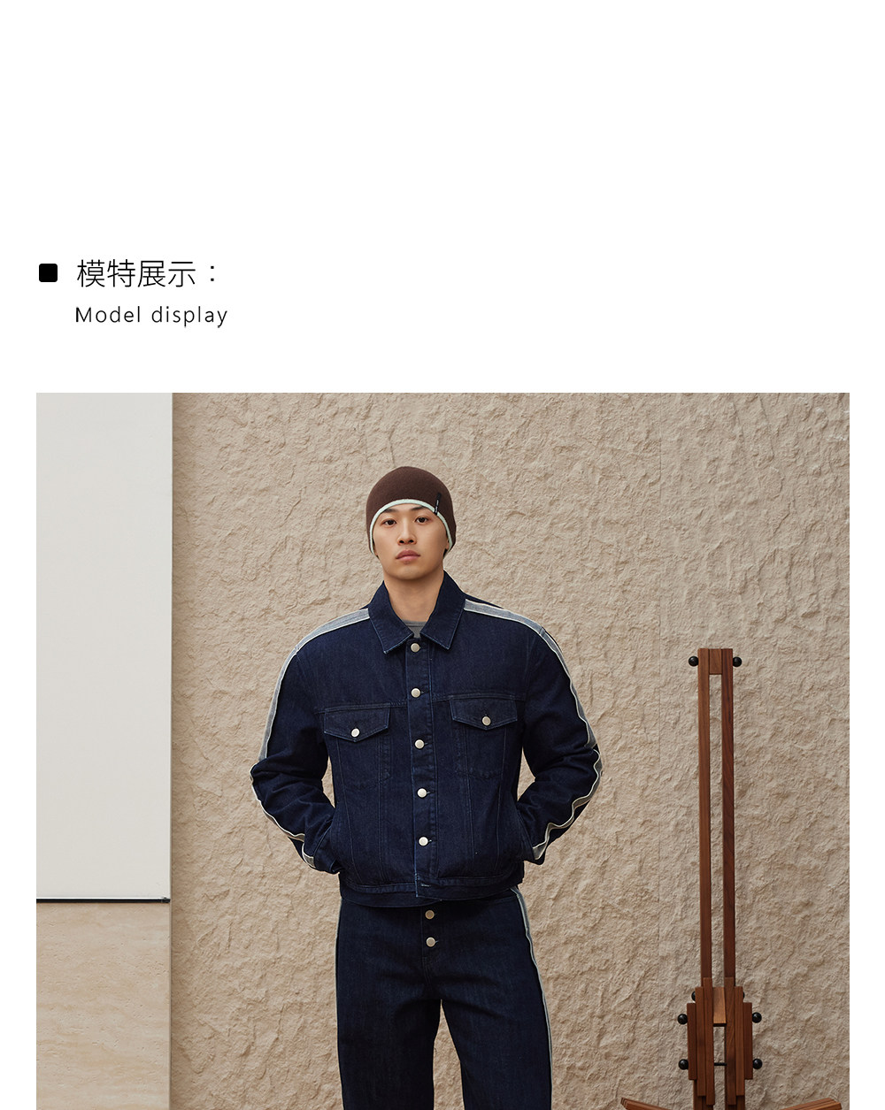Basic Unit New Style Washed Color-Blocked Denim Jacket for Men, Slim Fit Short Top for Autumn and Winter