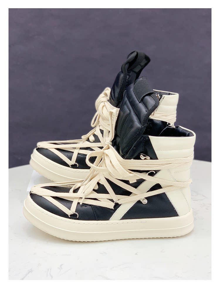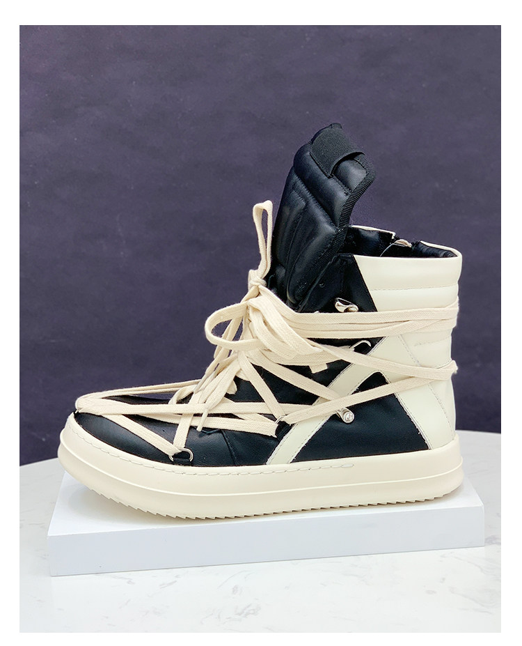 Men's Inverted Triangle High-Top Shoes with Pentagram Design, Short Boots with Milky Fragrance, High Street Visual Style, Dark Thick-Soled Martin Boots, Trendy
