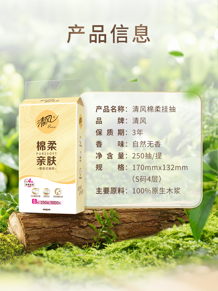 Carefully Selected [Same Model as Li Yunrui] Qingfeng Tissue Paper, Hanging Tissue, Cotton Soft 4-Layer, 250 Sheets, 10 Packs, Household Napkins