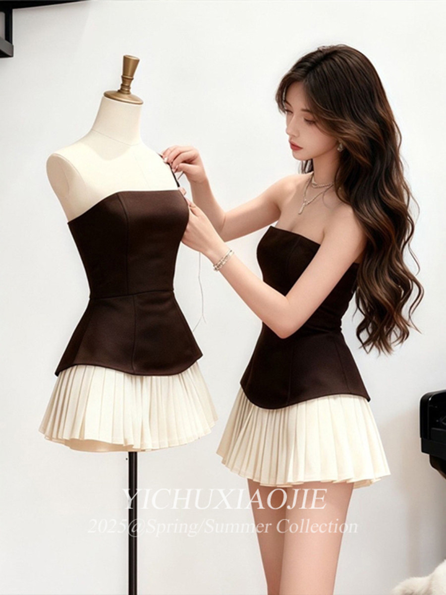 Especially Beautiful Waist-Cinching Off-The-Shoulder Tube Top Dress for Women, 2025 Autumn and Winter New Style, Elegant and Slimming, Off-Shoulder Short Dress