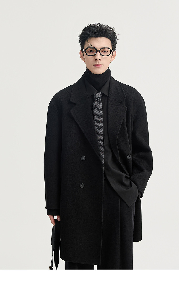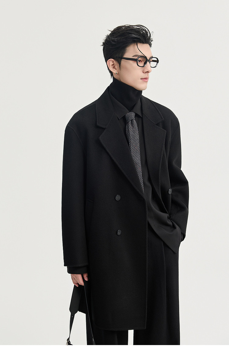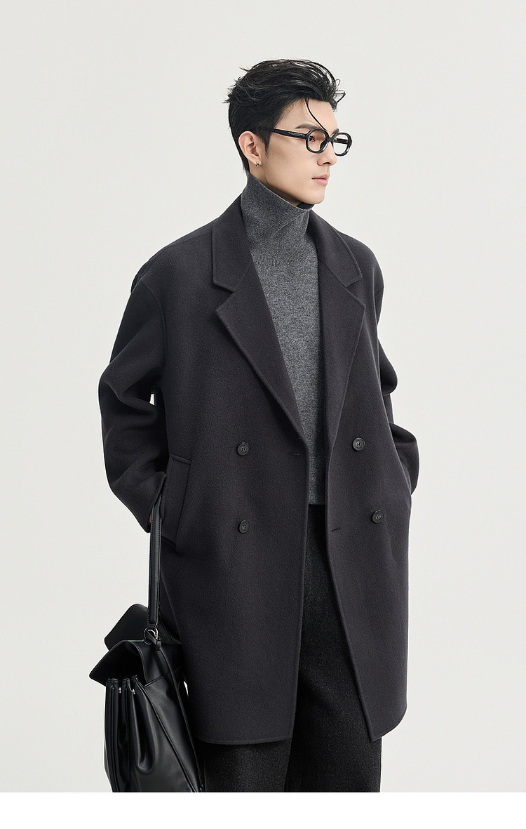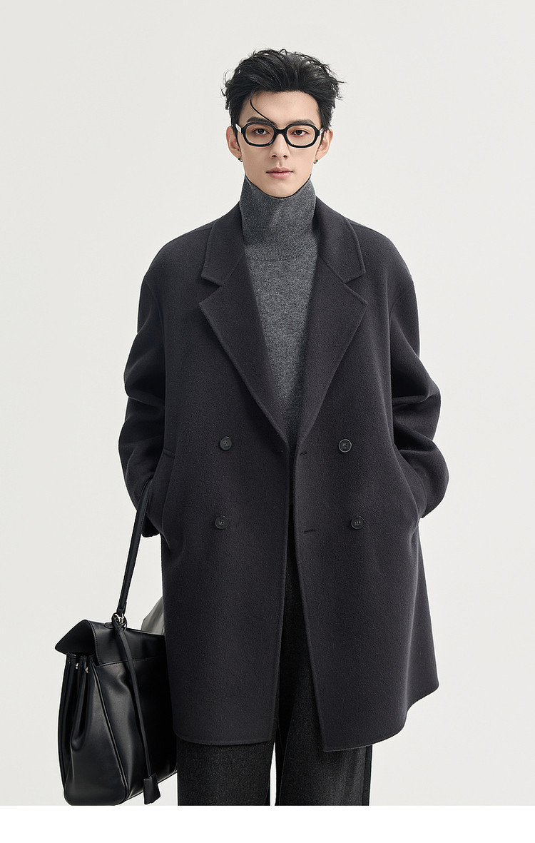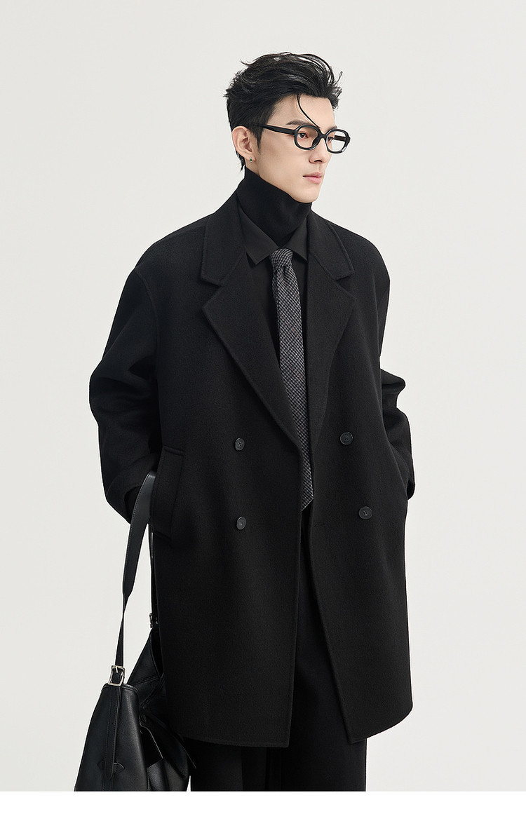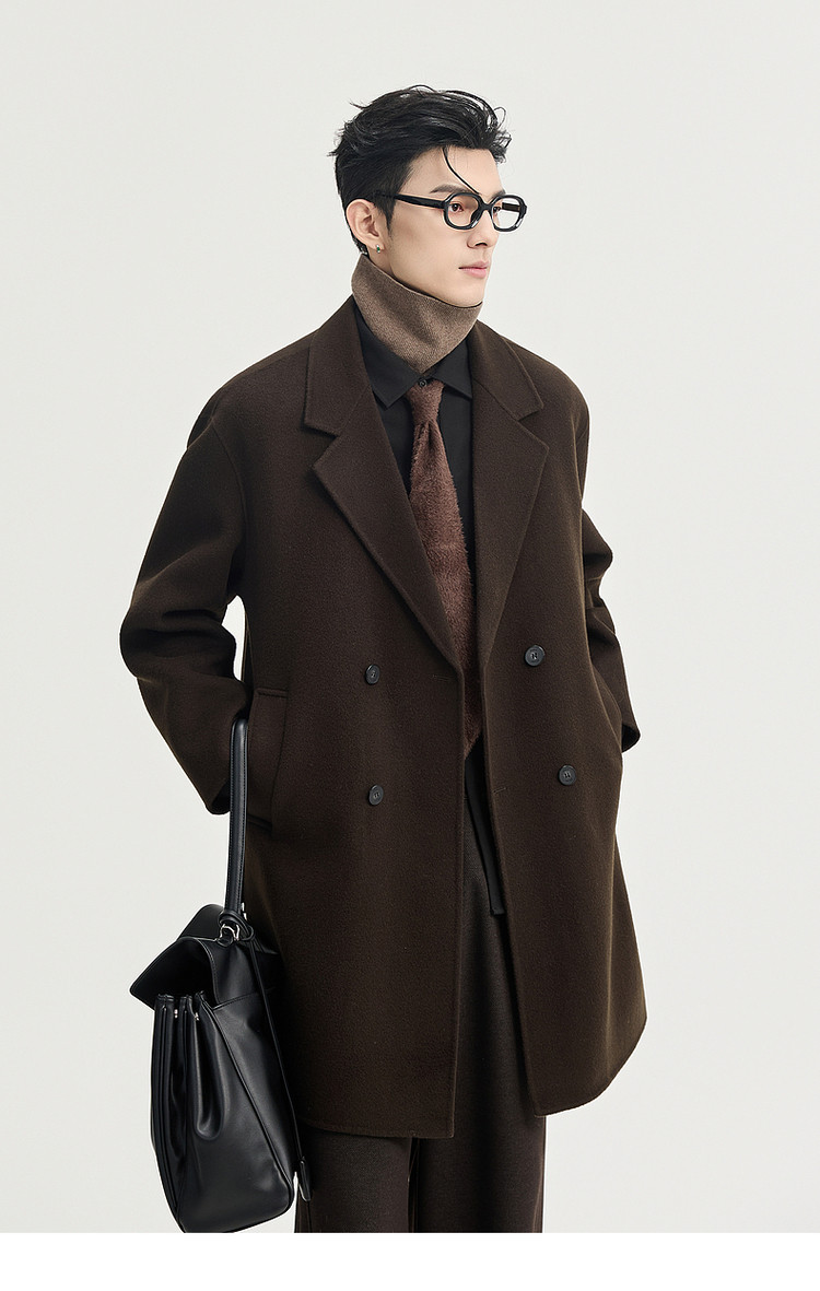 High-End Long down Coat with Goose down Lining, Thickened for Winter, Double-Sided Woolen Coat for Men, Mid-Length, Suitable for Petite Individuals