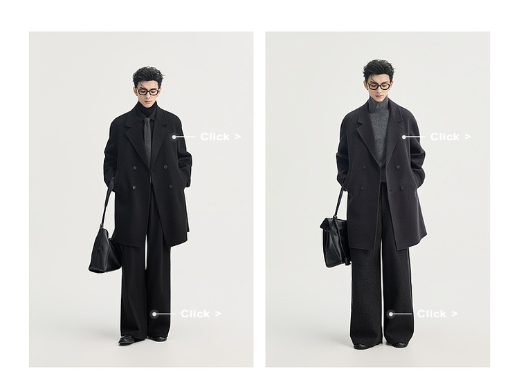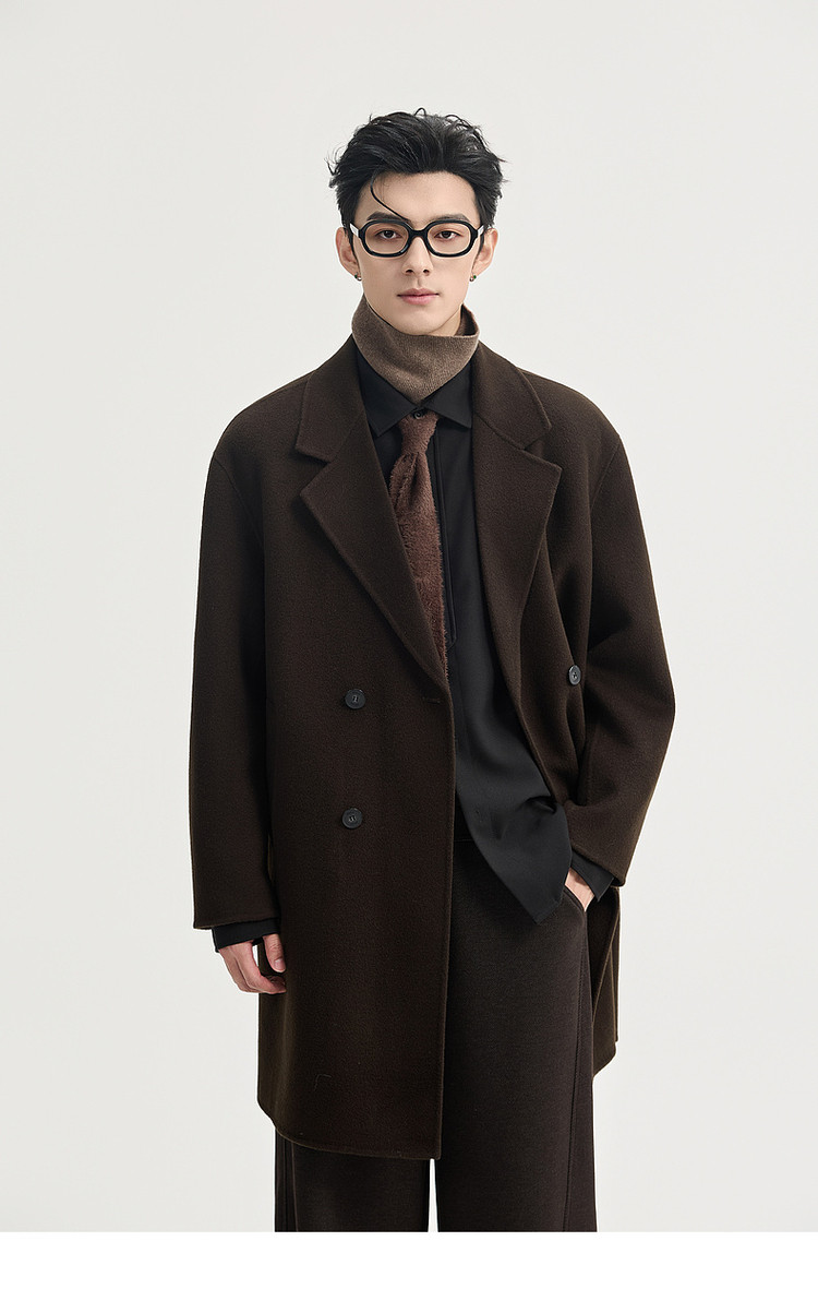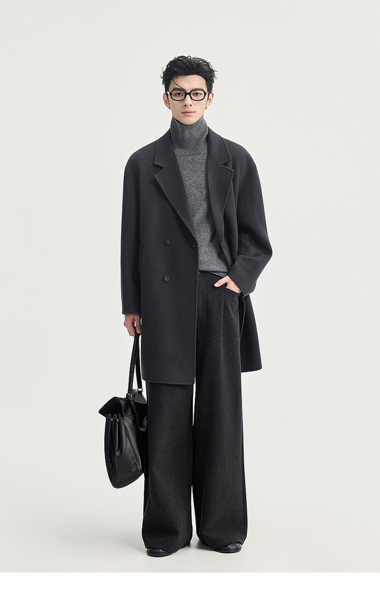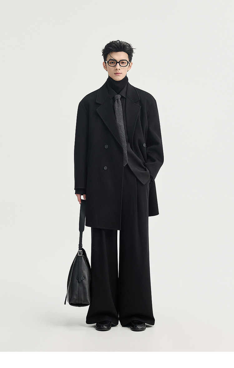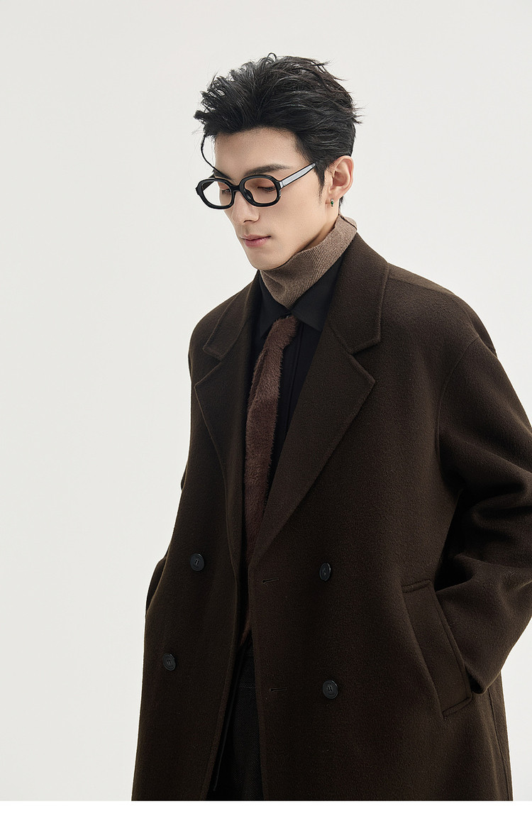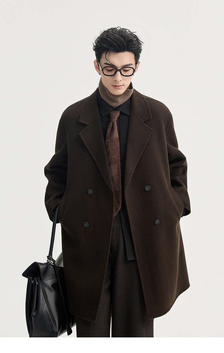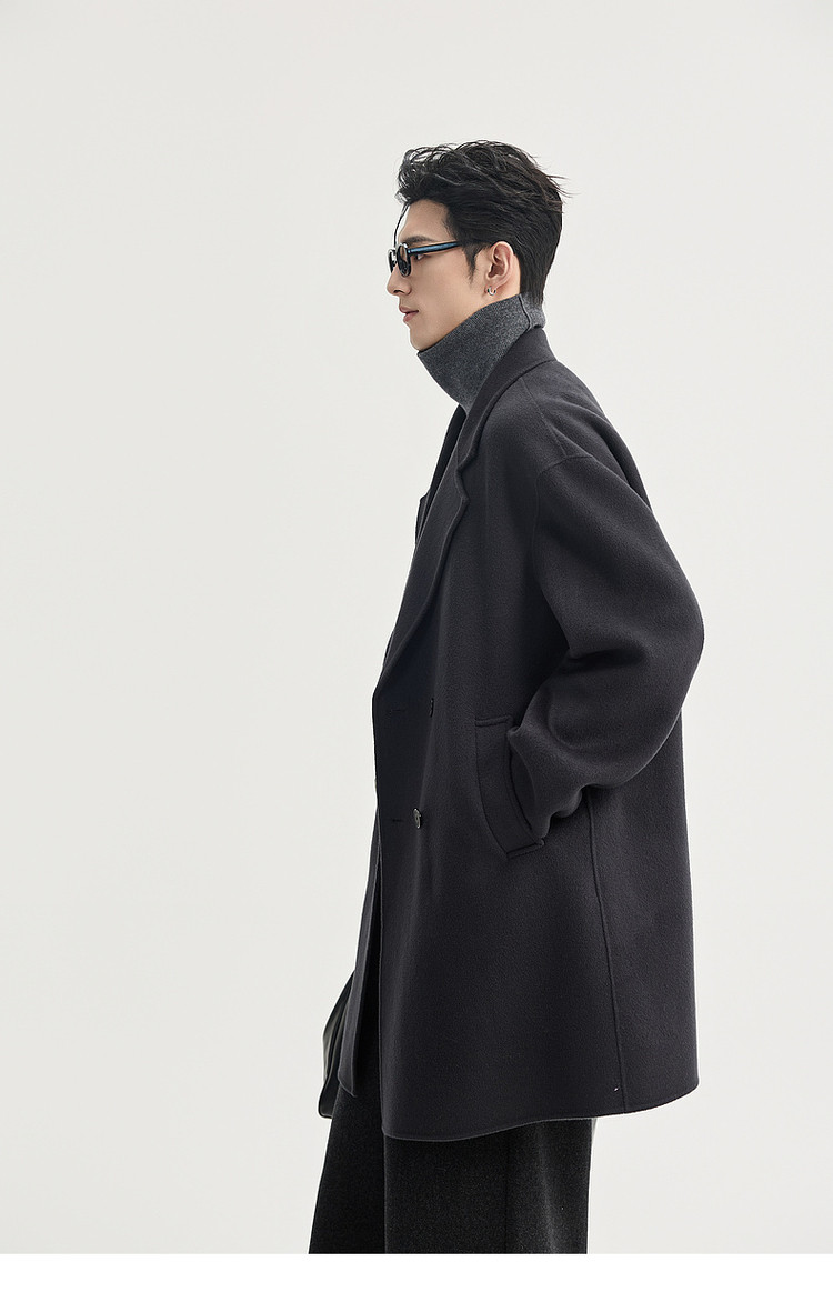 High-End Long down Coat with Goose down Lining, Thickened for Winter, Double-Sided Woolen Coat for Men, Mid-Length, Suitable for Petite Individuals