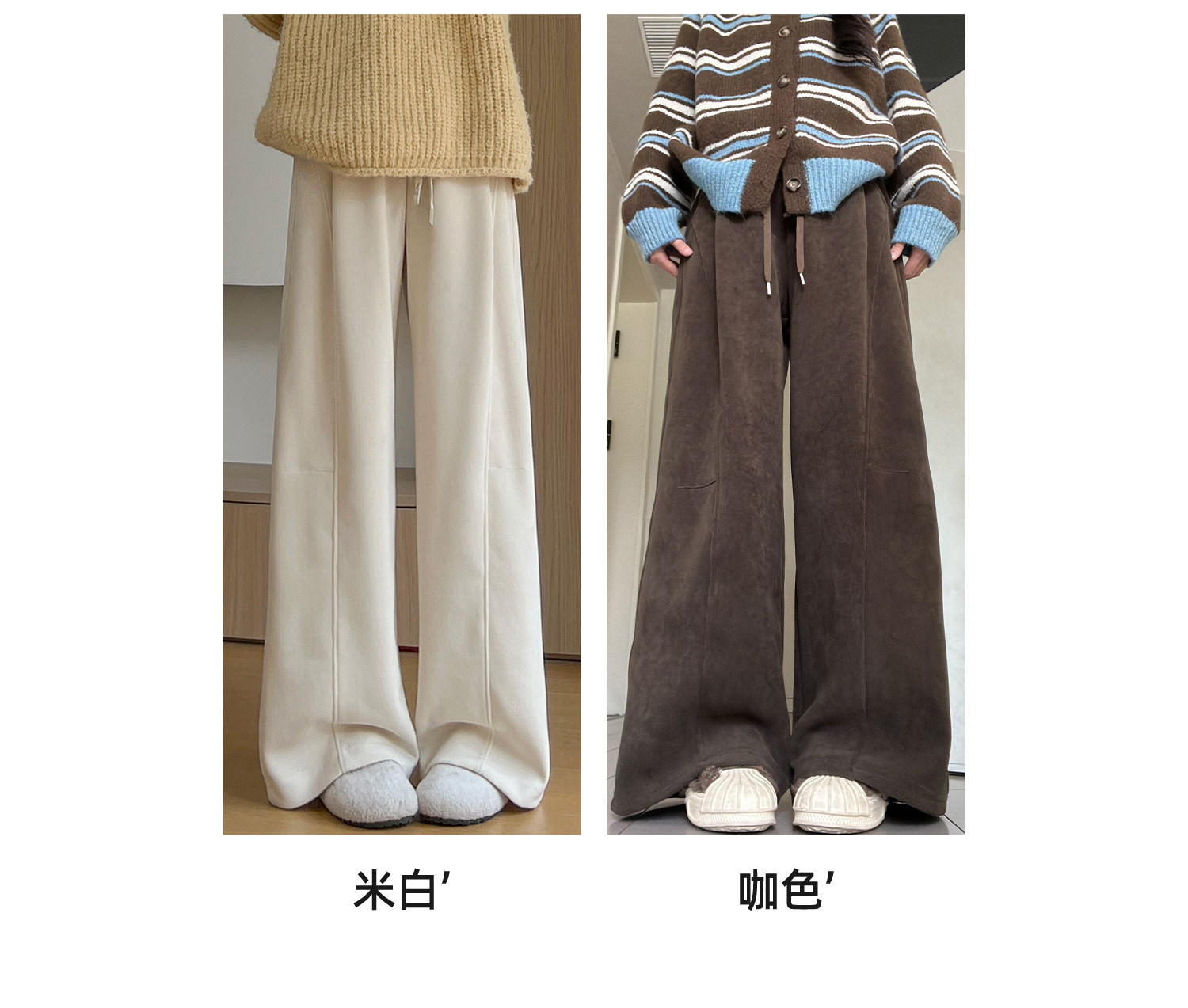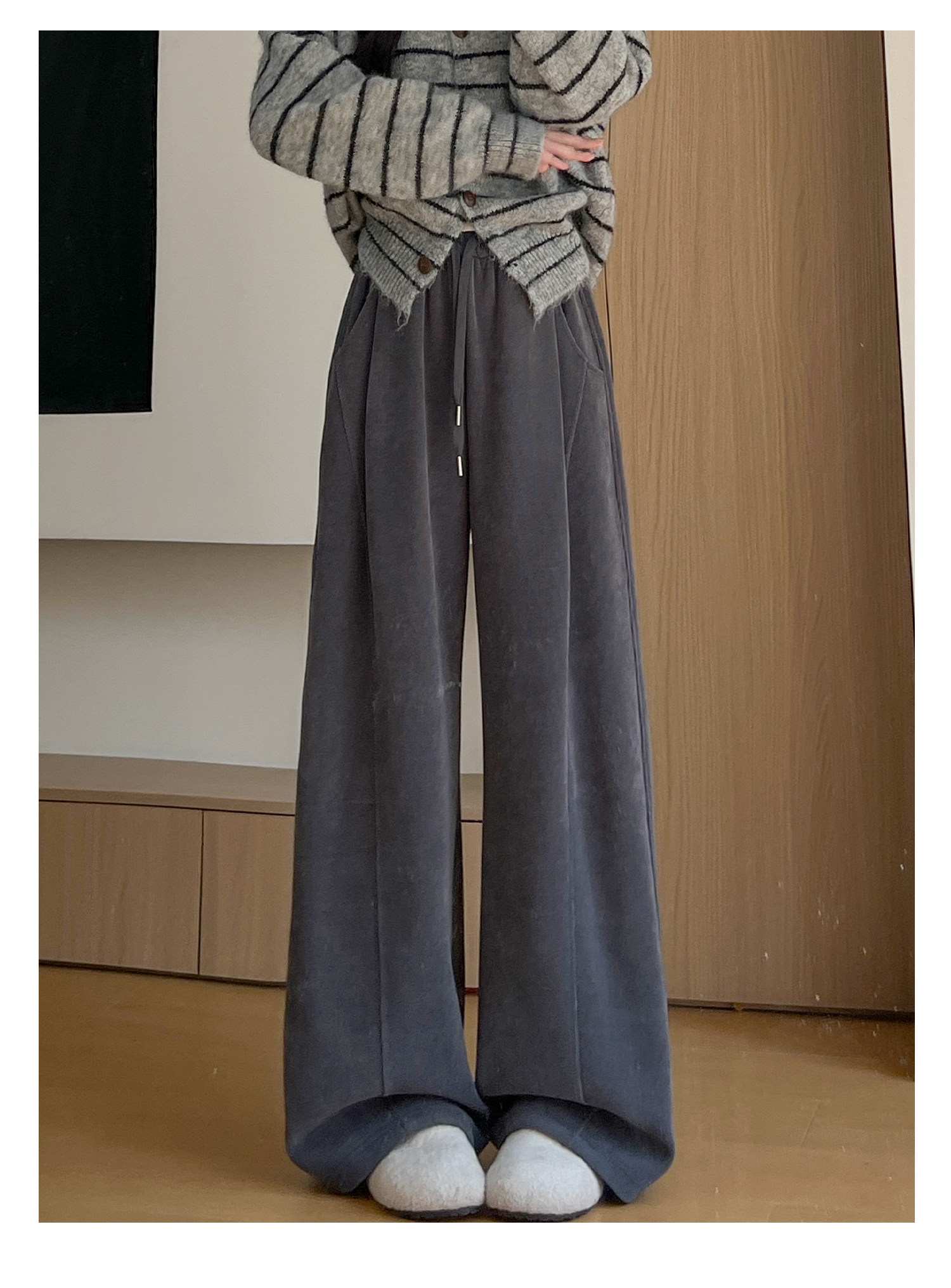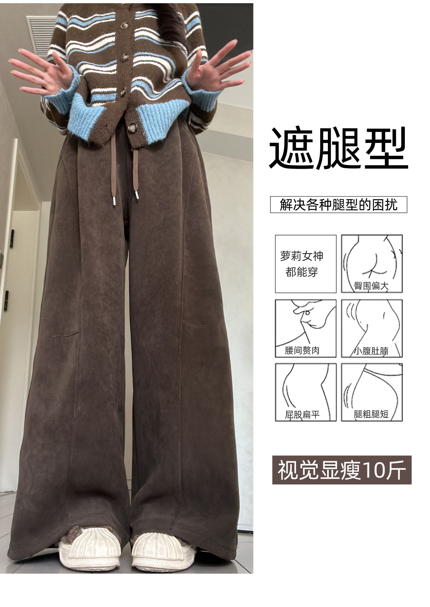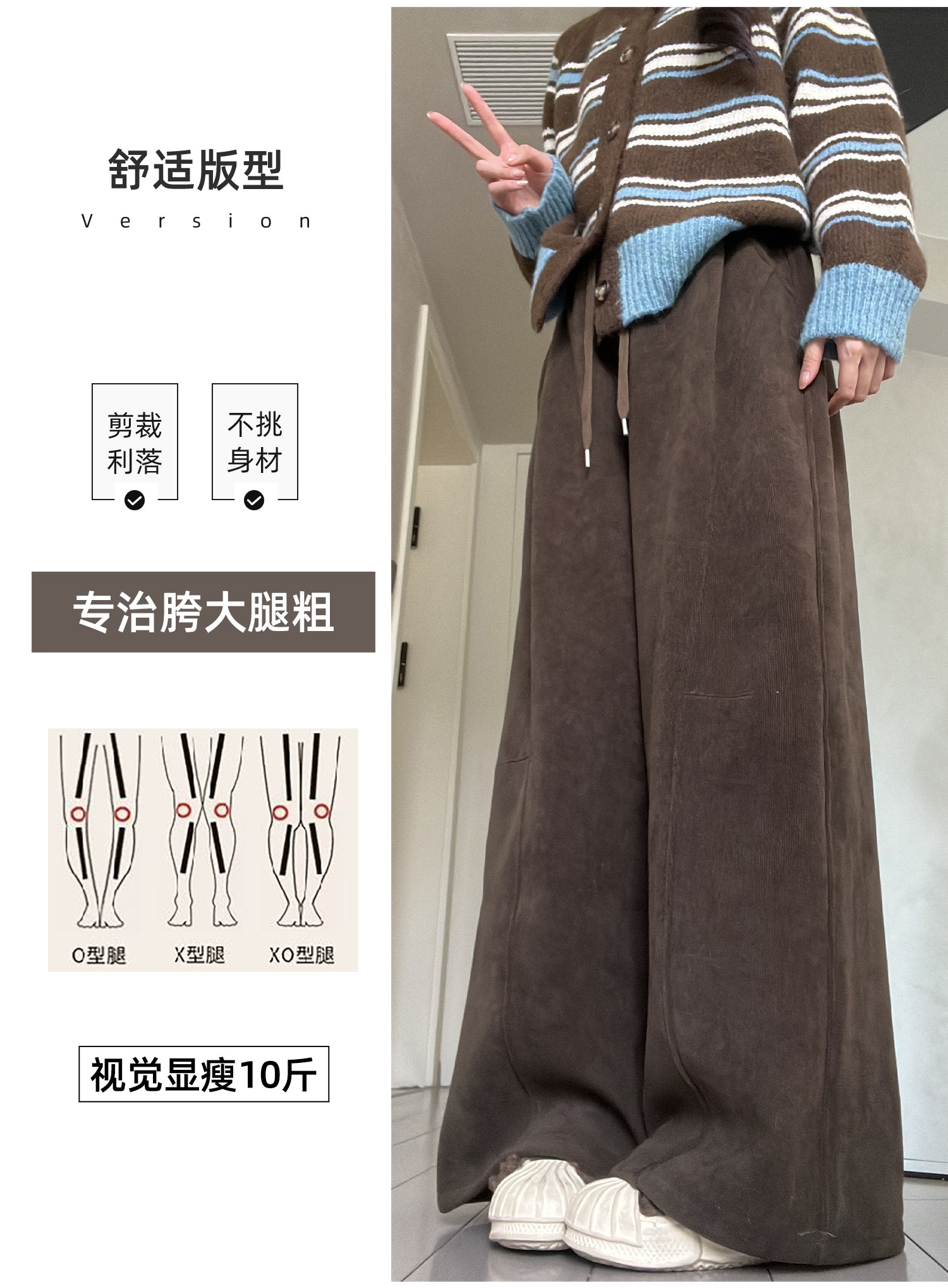 Brown Corduroy Wide-Leg Pants for Women, Autumn and Winter 2025 New Style, High-Waisted, Slimming, Casual, Sporty, Petite, Fleece-Lined Sweatpants