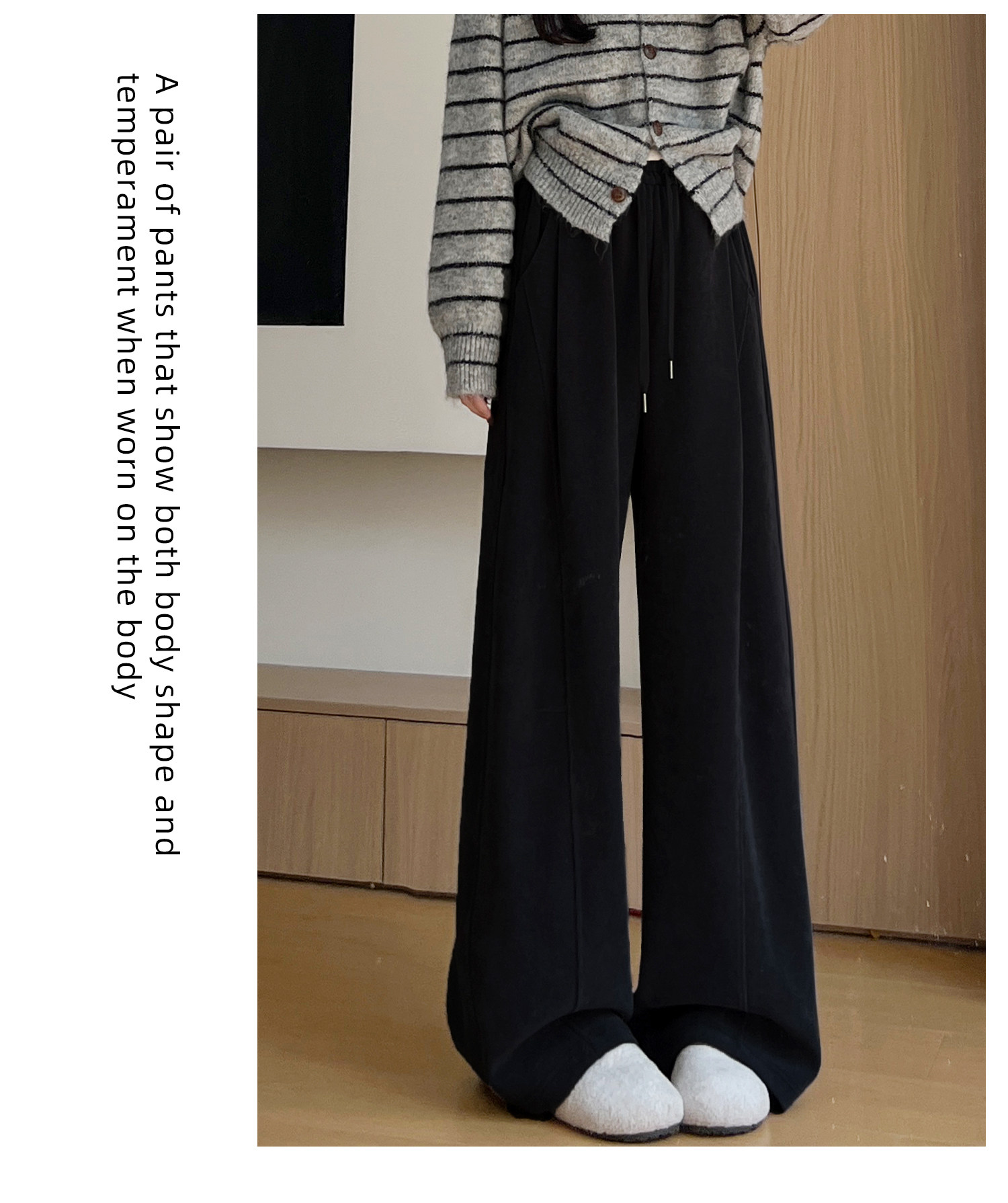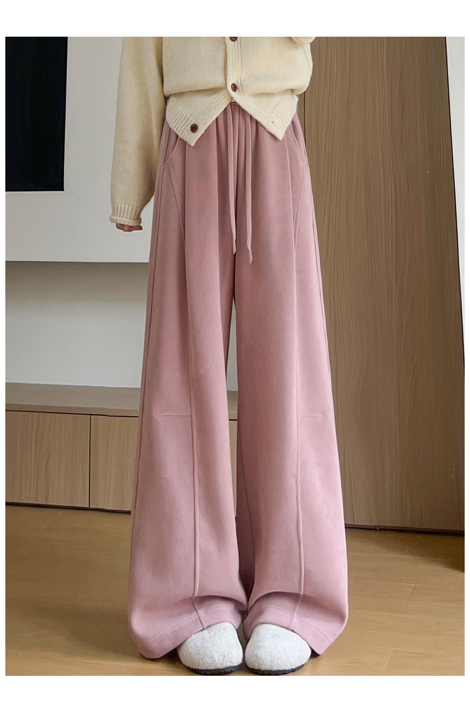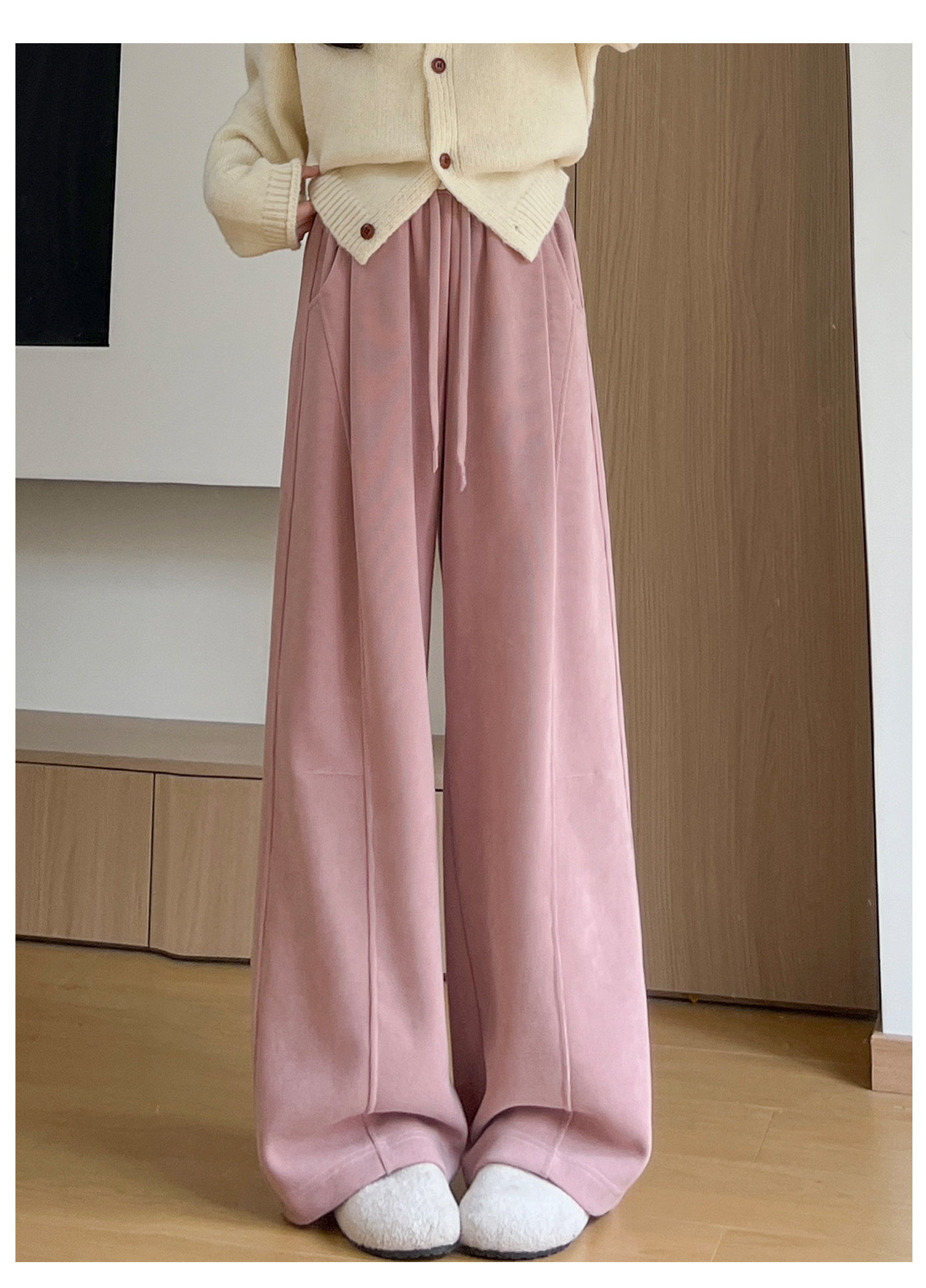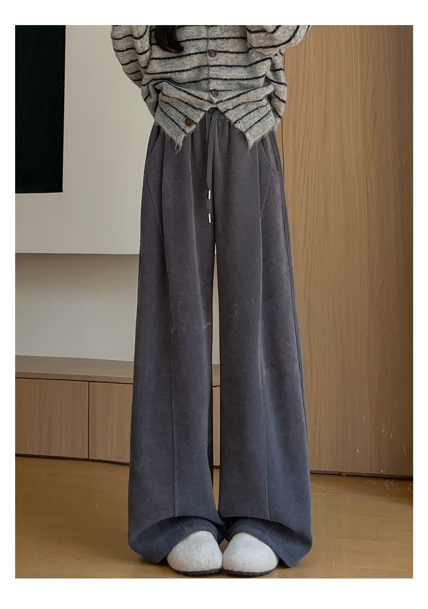 Brown Corduroy Wide-Leg Pants for Women, Autumn and Winter 2025 New Style, High-Waisted, Slimming, Casual, Sporty, Petite, Fleece-Lined Sweatpants