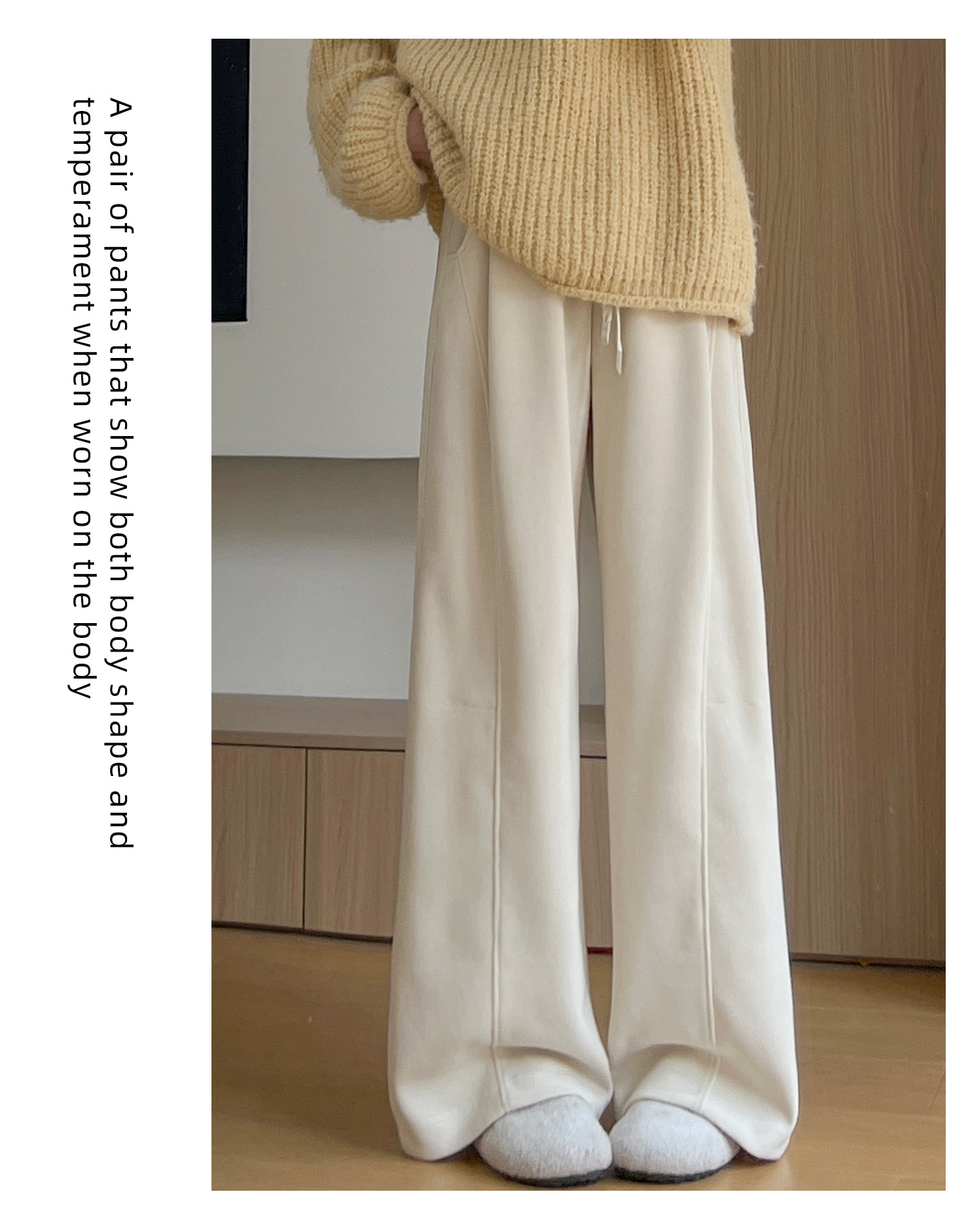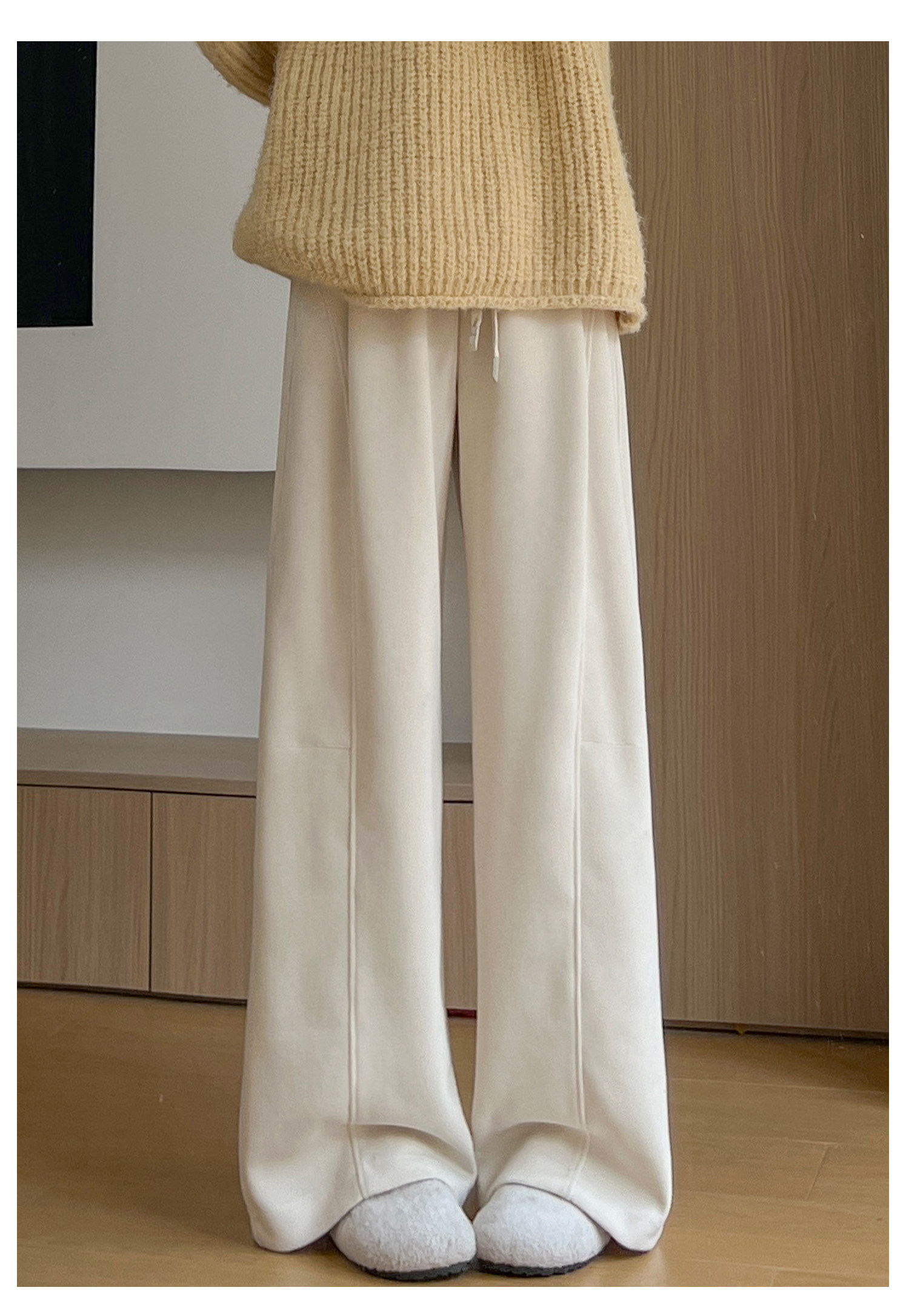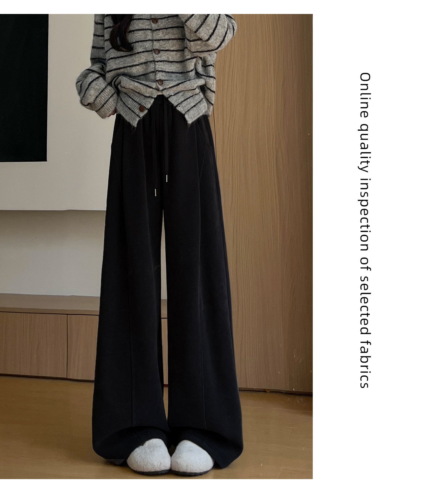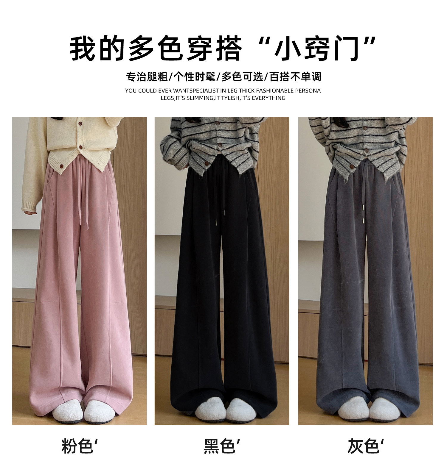 Brown Corduroy Wide-Leg Pants for Women, Autumn and Winter 2025 New Style, High-Waisted, Slimming, Casual, Sporty, Petite, Fleece-Lined Sweatpants
