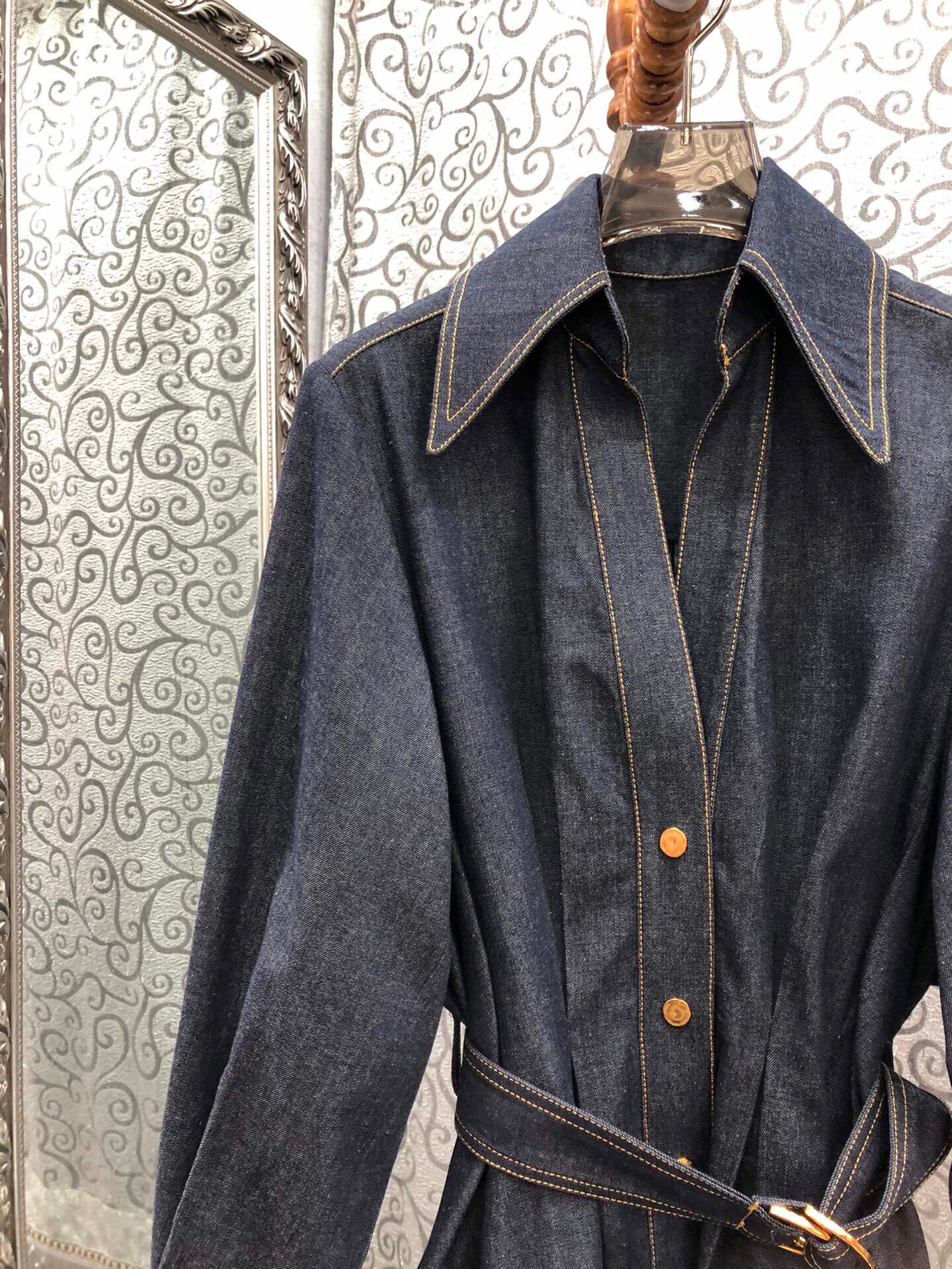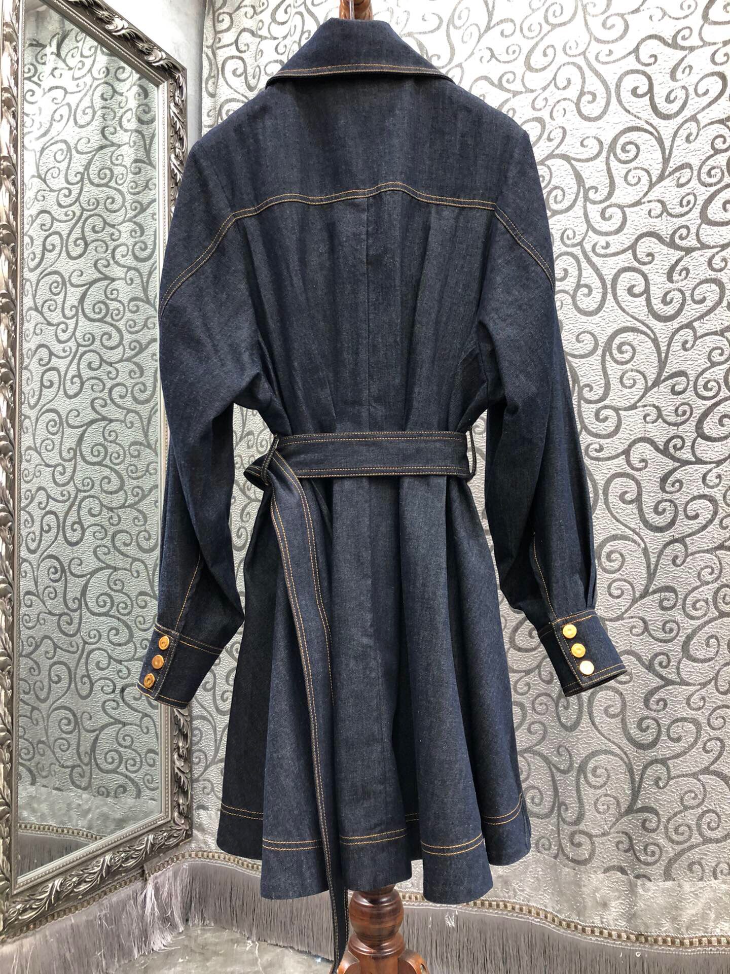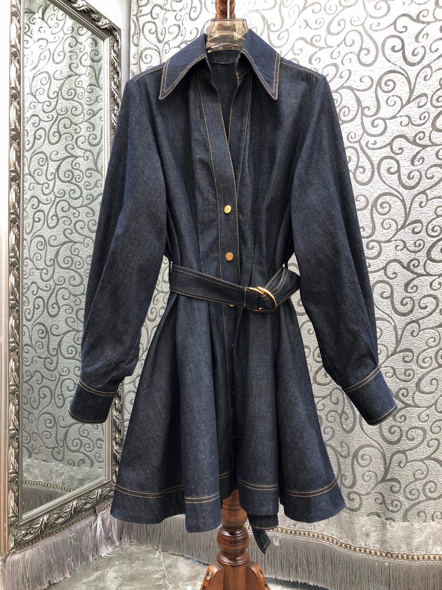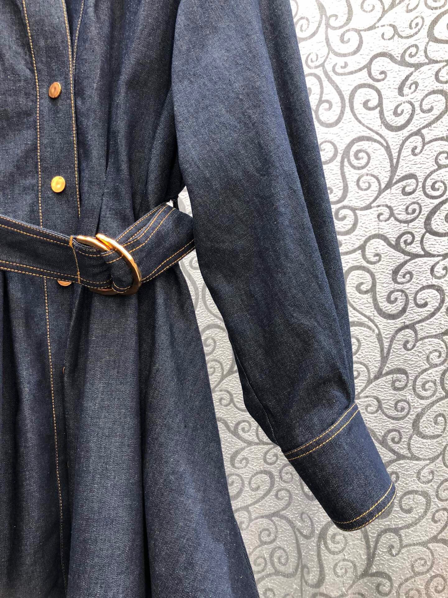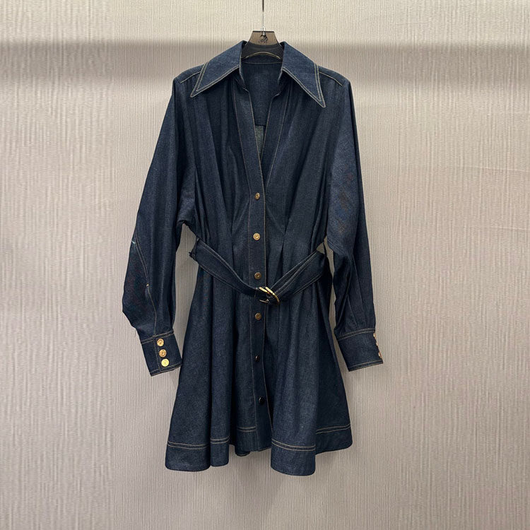 Chusuo 2025 Autumn/Winter New European Style Women's Clothing: Turn-Down Collar, Single-Breasted, Belted Waist, Lantern Sleeves, Denim Dress