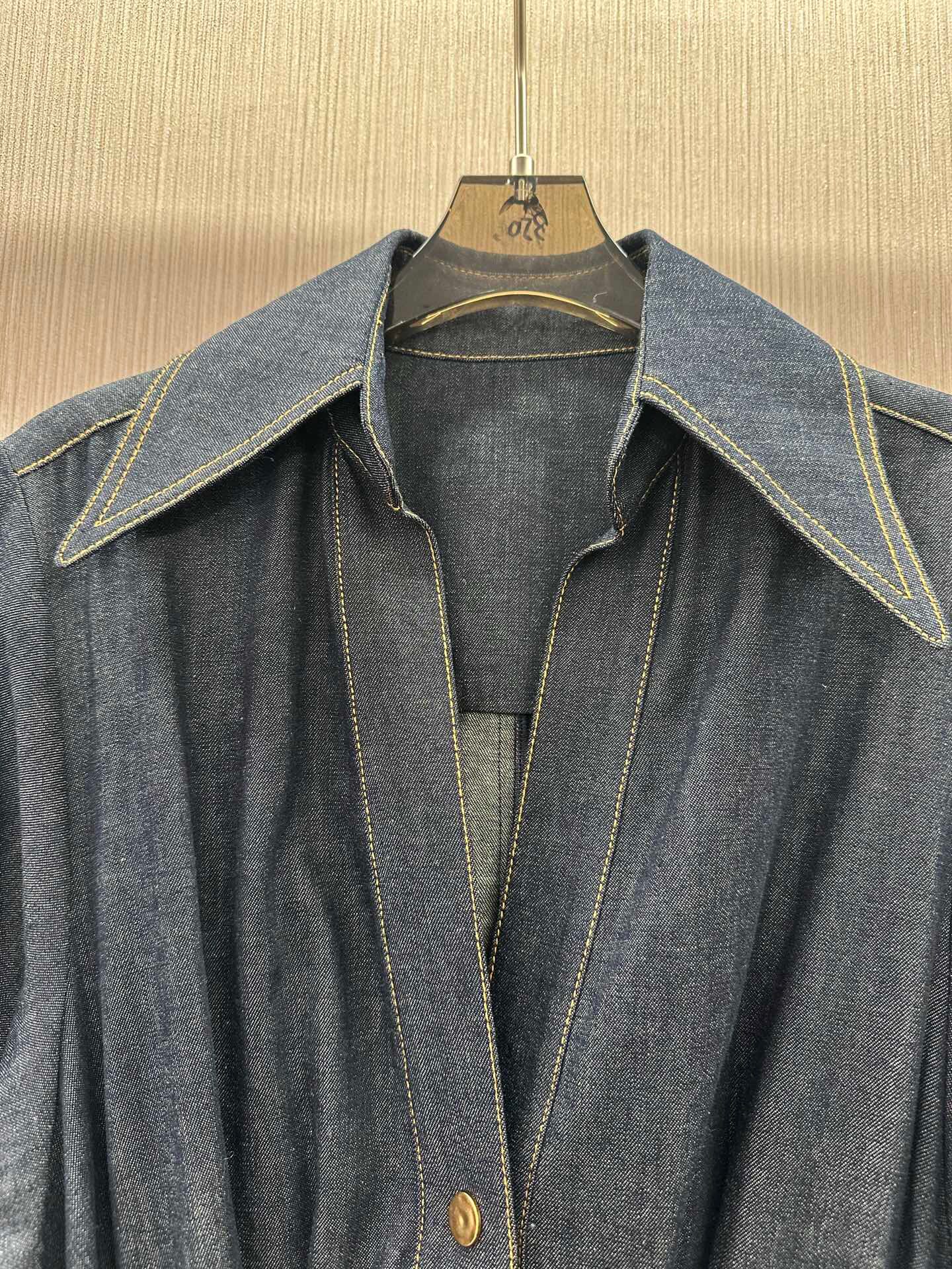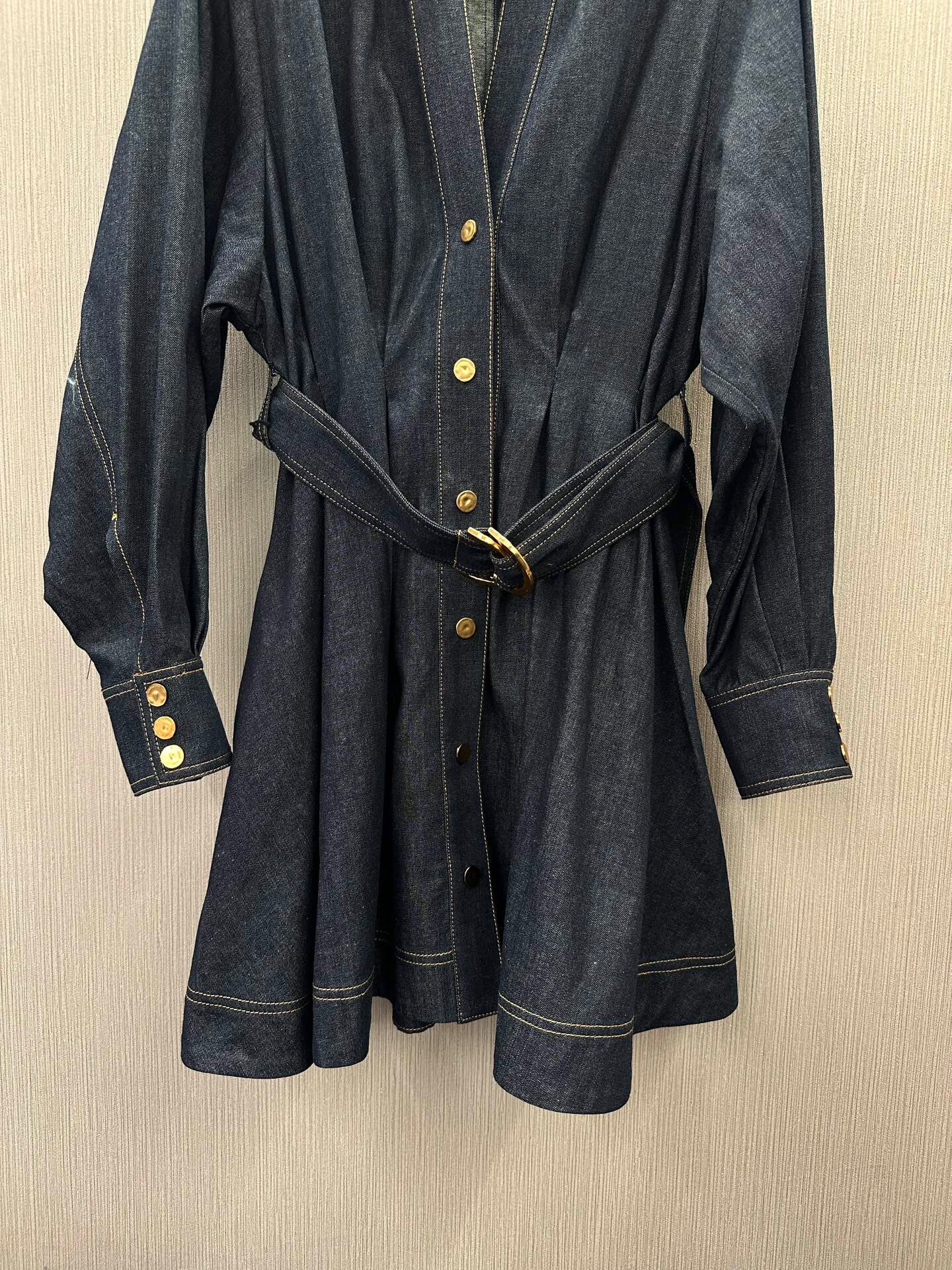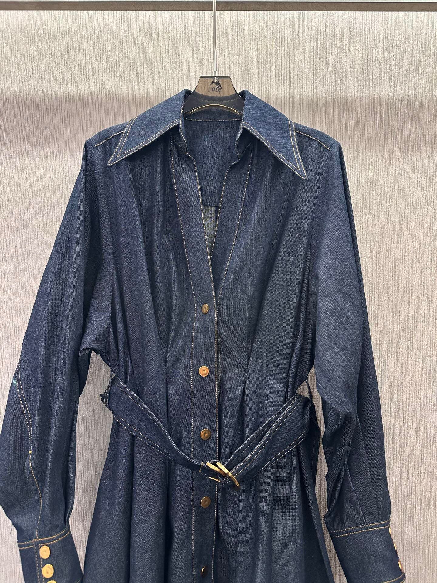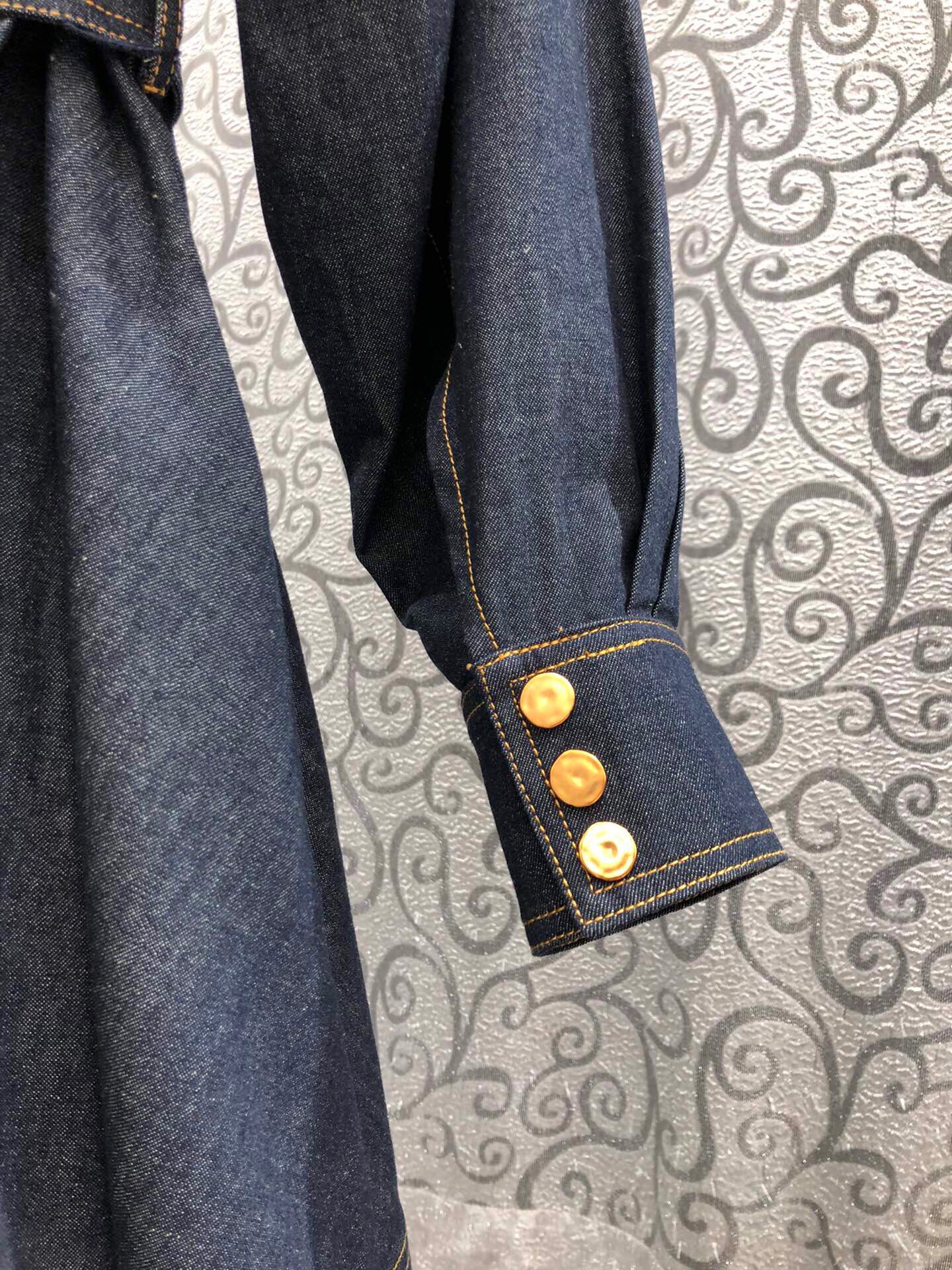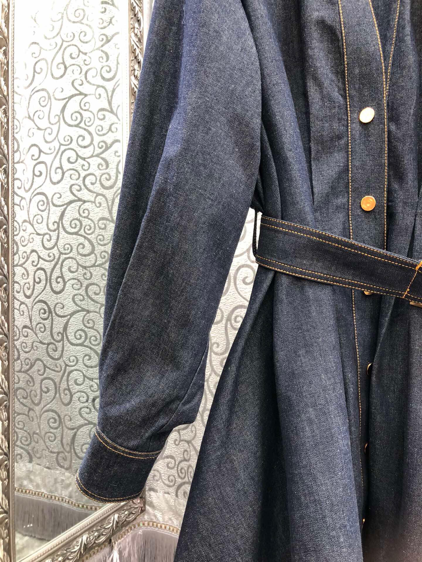 Chusuo 2025 Autumn/Winter New European Style Women's Clothing: Turn-Down Collar, Single-Breasted, Belted Waist, Lantern Sleeves, Denim Dress