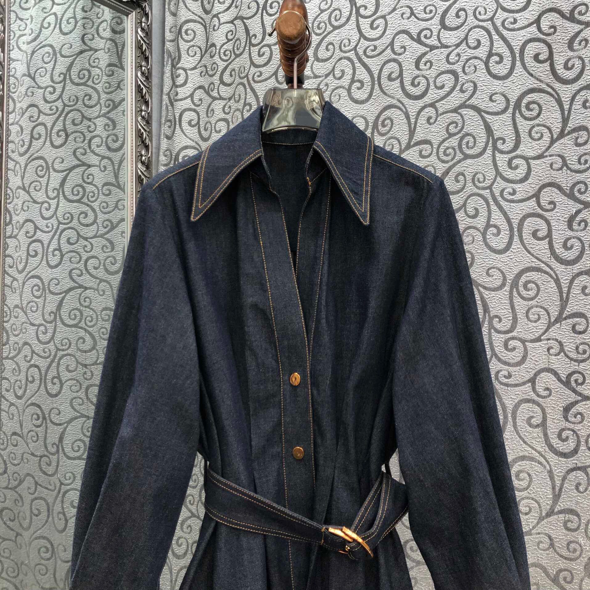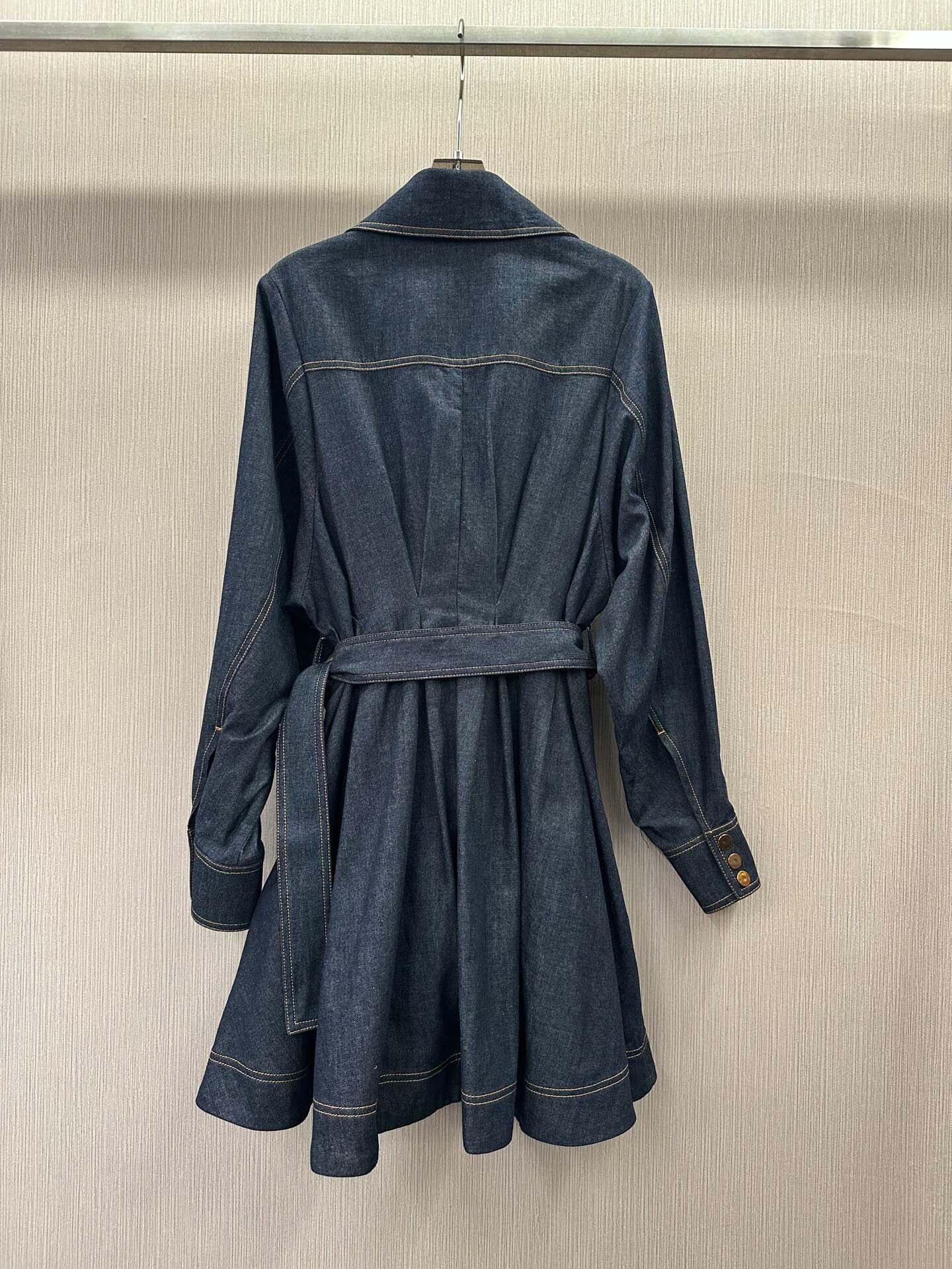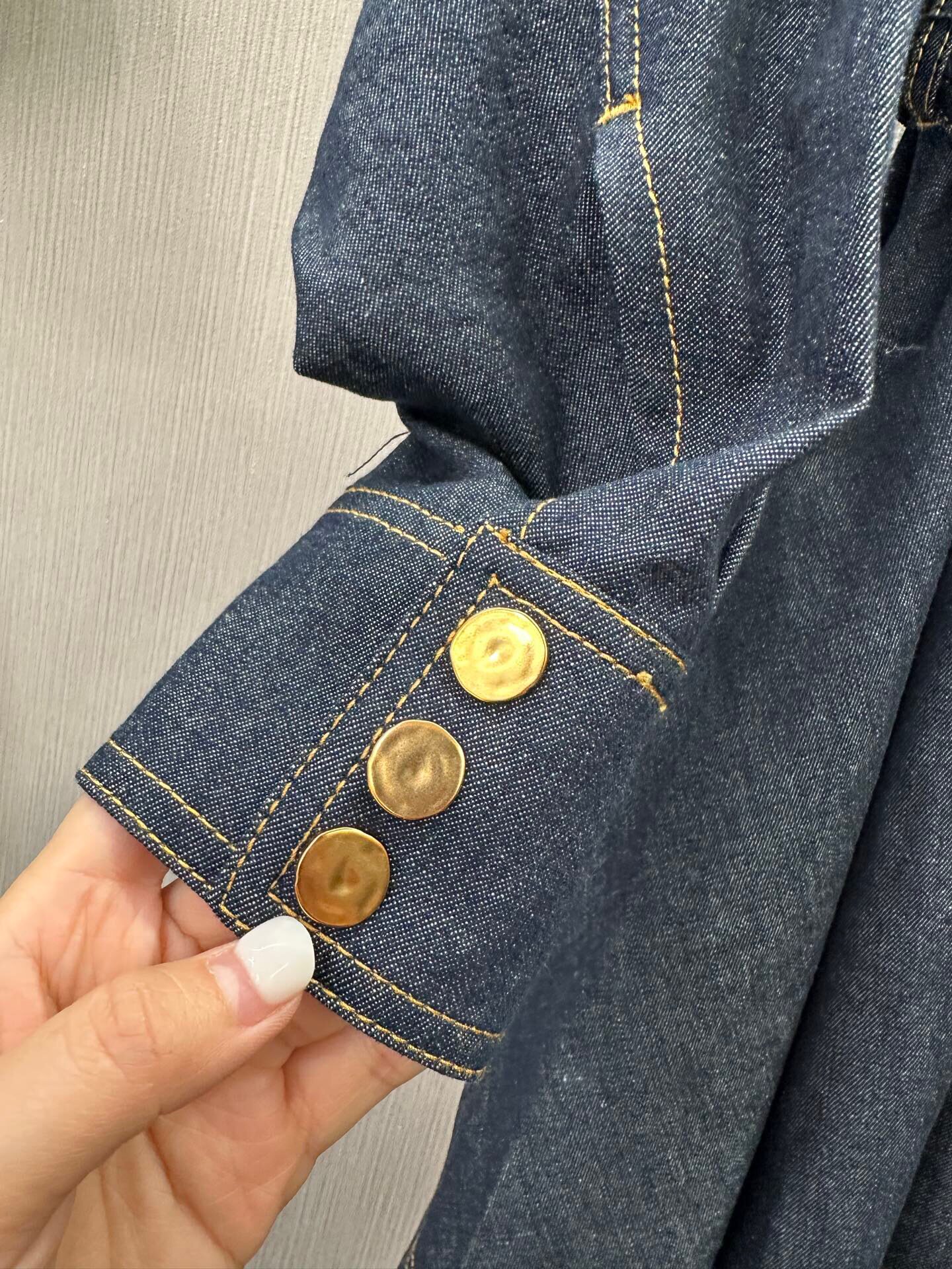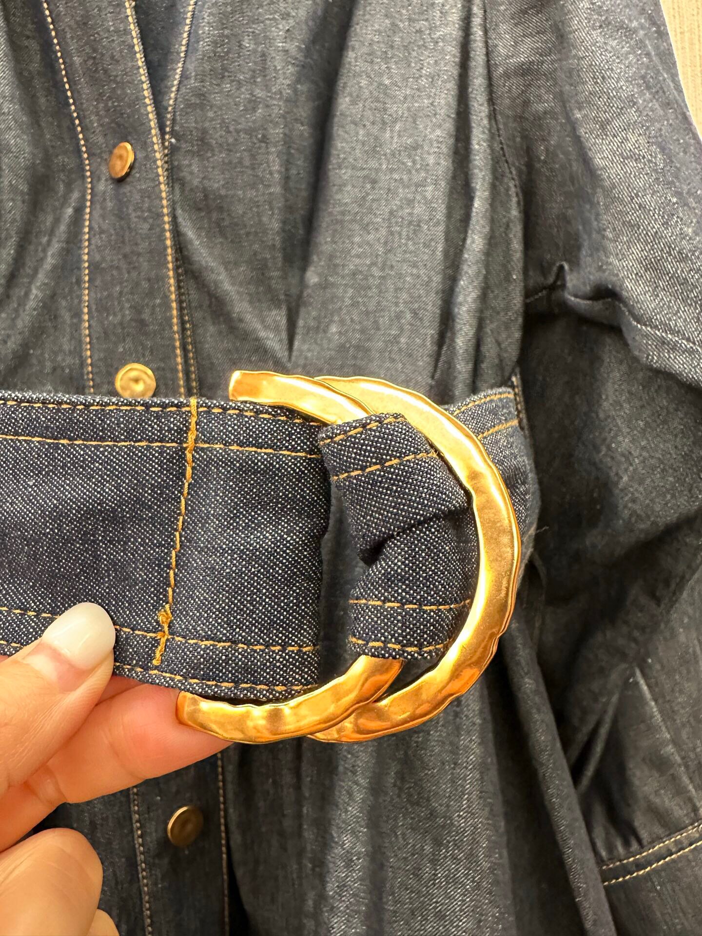 Chusuo 2025 Autumn/Winter New European Style Women's Clothing: Turn-Down Collar, Single-Breasted, Belted Waist, Lantern Sleeves, Denim Dress