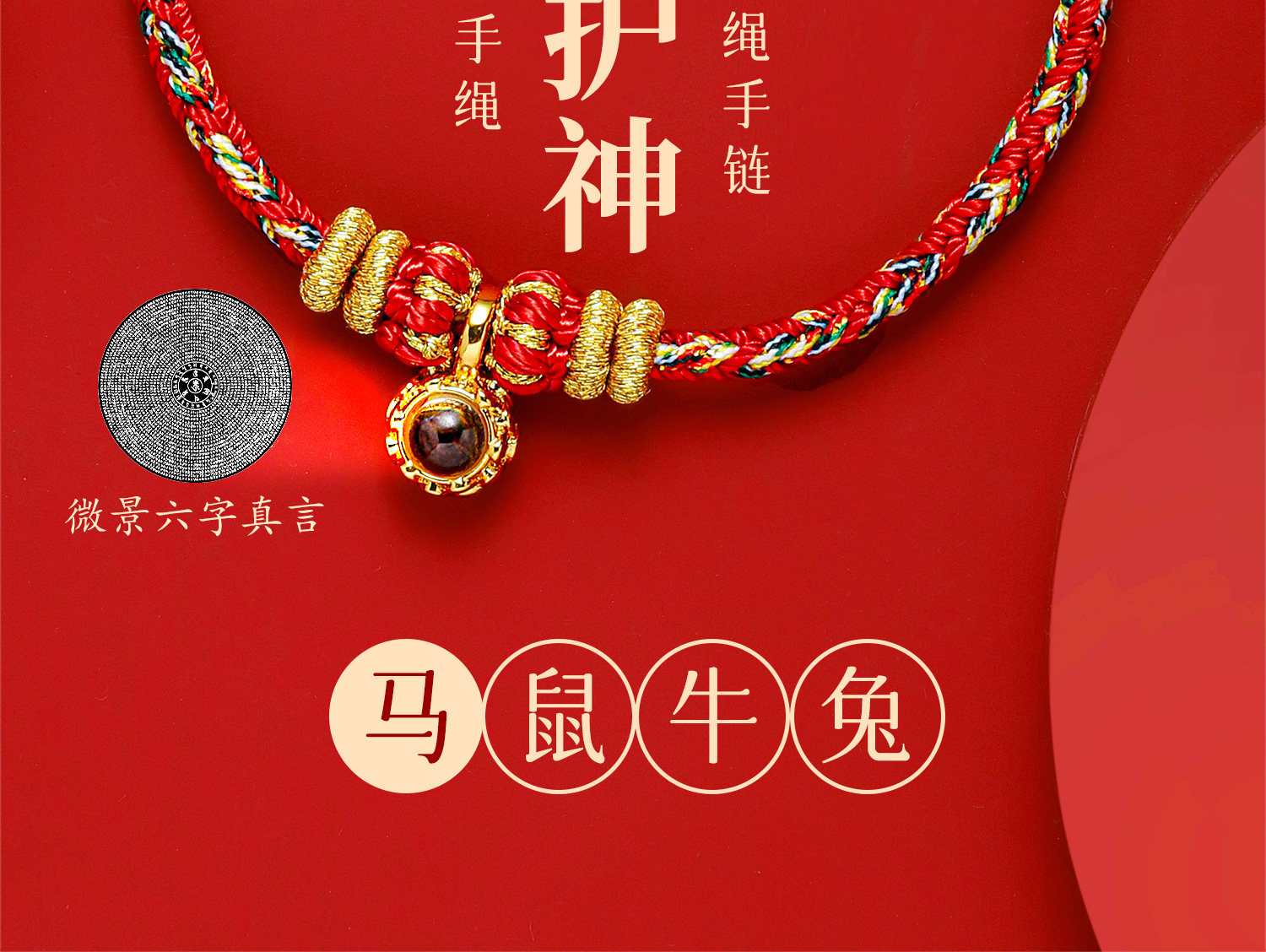 Putuo Mountain 2026 Year of the Horse Zodiac Year Red String Bracelet Handmade for Men and Women, Horse, Rat, Ox, Rabbit, Tai Sui Protective Bracelet