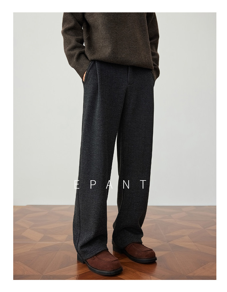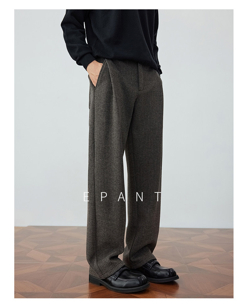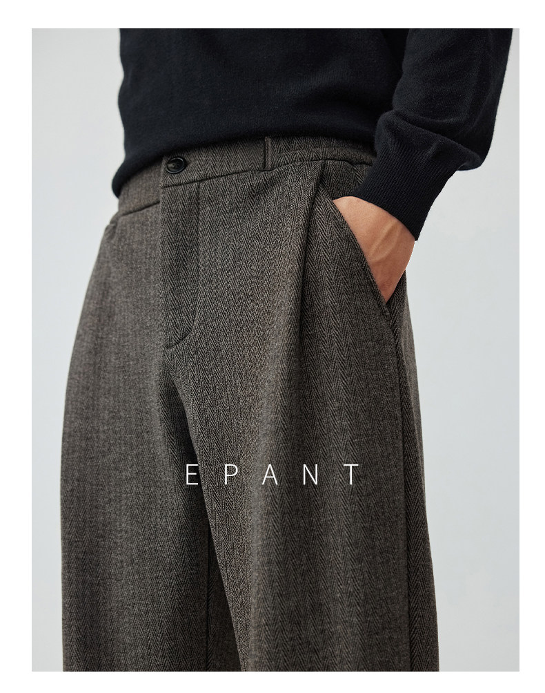Winter Trousers for Men, Woolen Straight-Leg Trousers with Fleece Lining, Loose-Fitting Long Trousers, Stylish and Casual Trousers with a High-End Feel