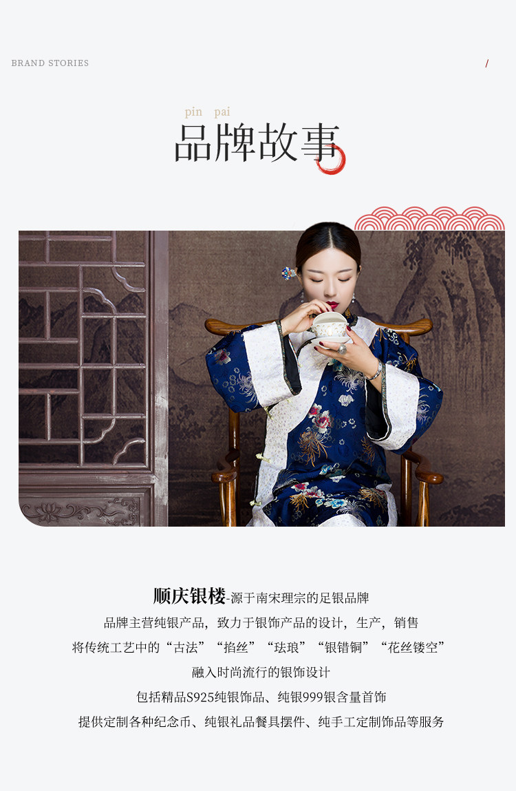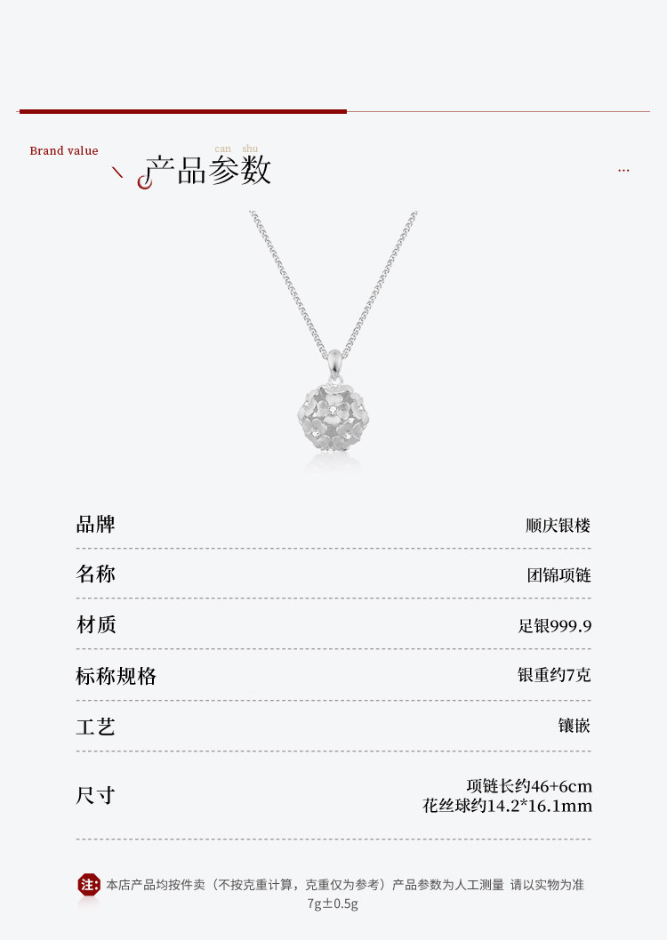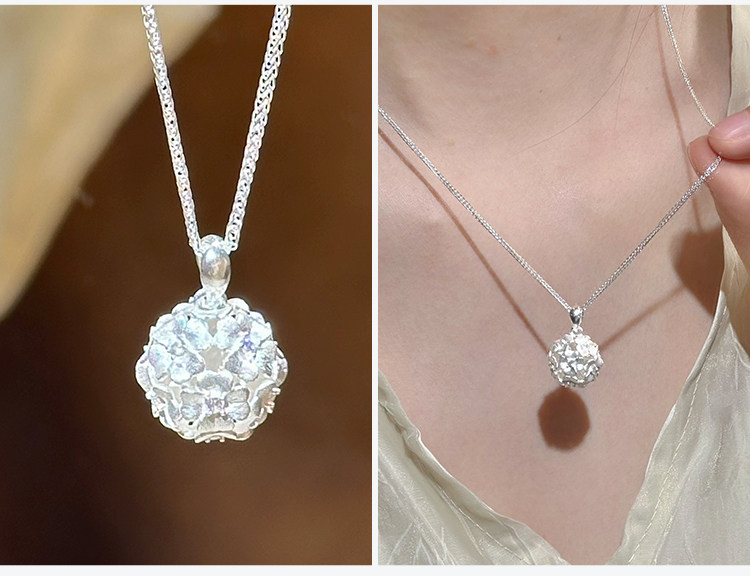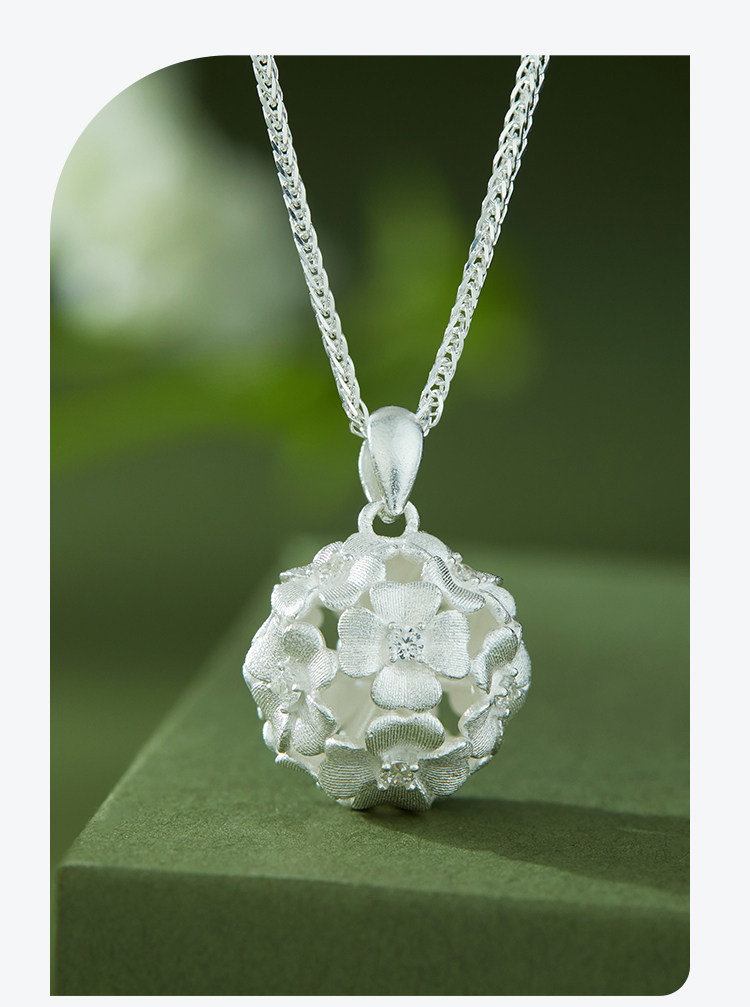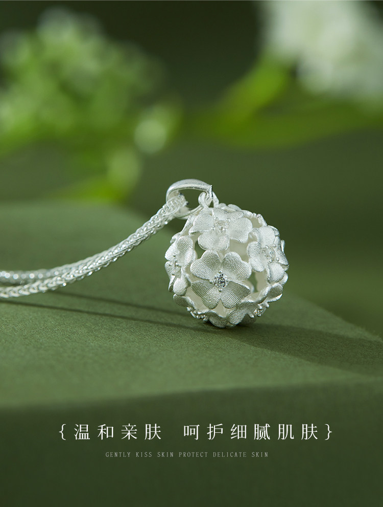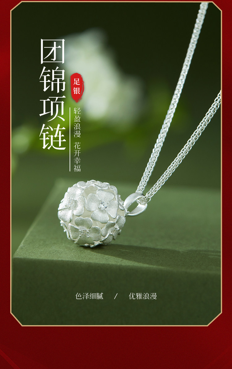Shunqing Silver House Pure Silver 9999 Brocade Necklace Flower Pendant Necklace for Women High-End Clavicle Chain Gift for Girlfriend