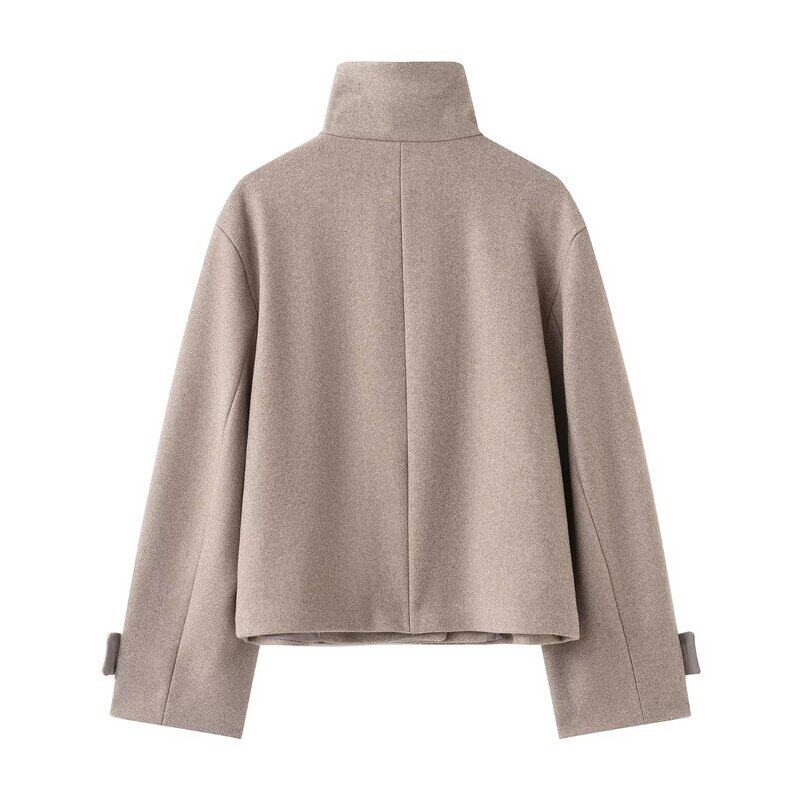 European and American Style 2025 Winter New Arrivals Women's Clothing Versatile Long-Sleeve Double-Breasted Stand Collar Jacket 6318293