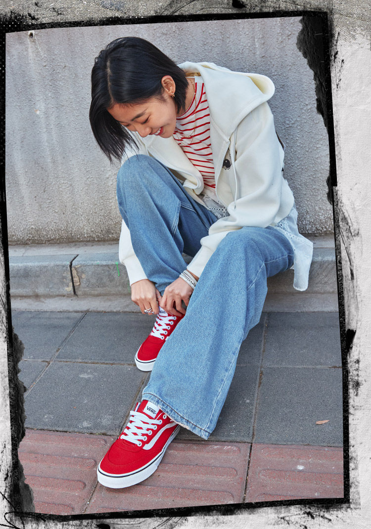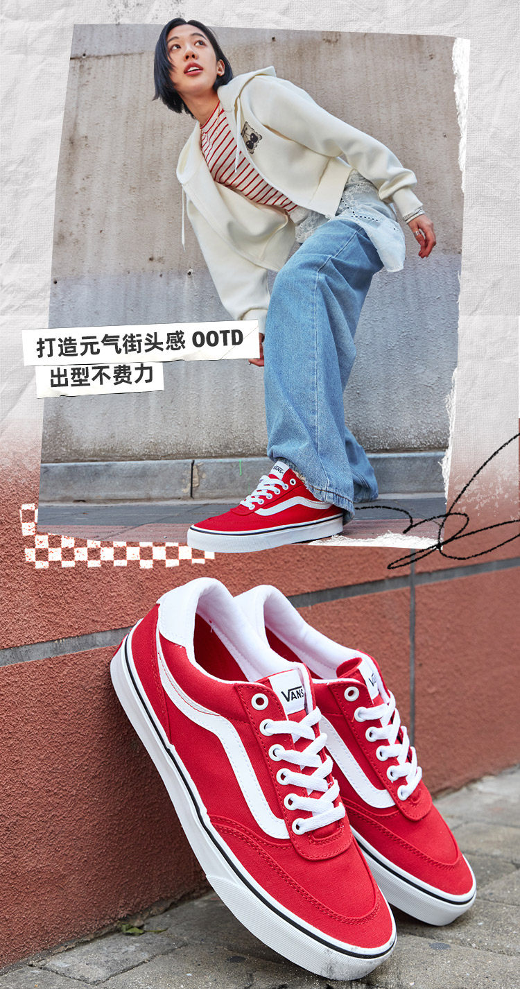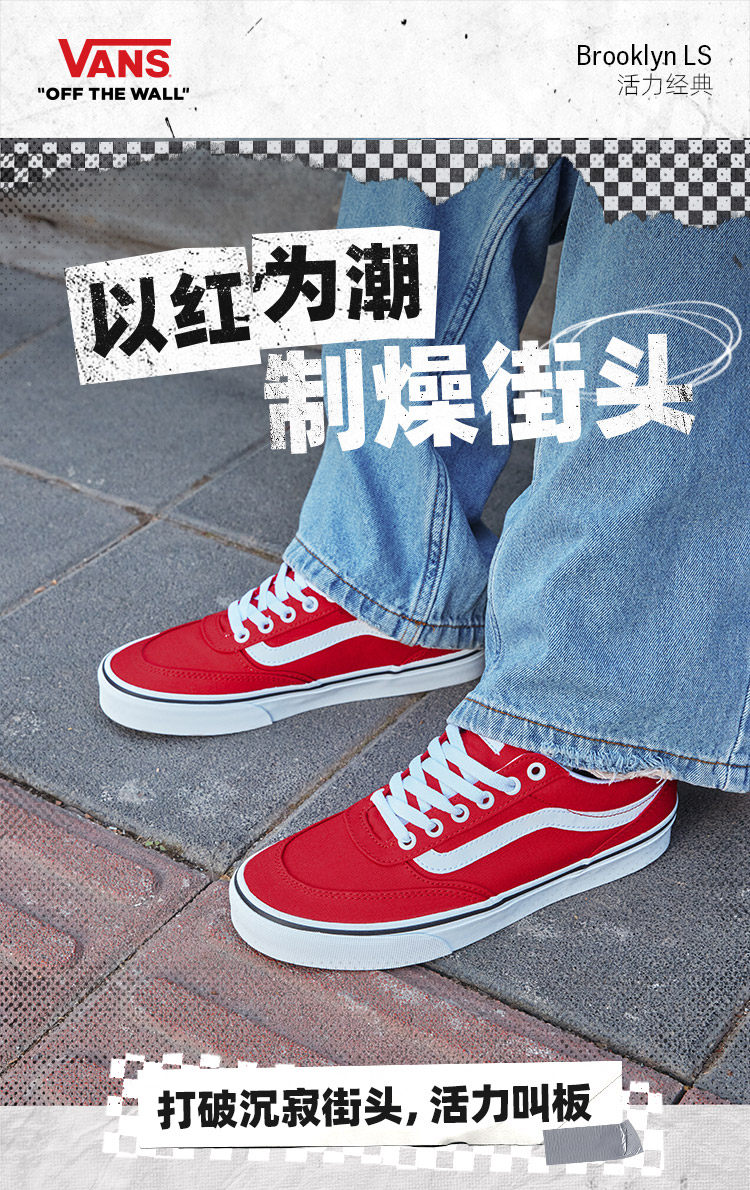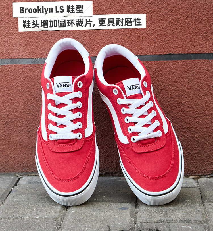 Vans Official Brooklyn Ls New Year Red Simple Retro Women's Canvas Shoes