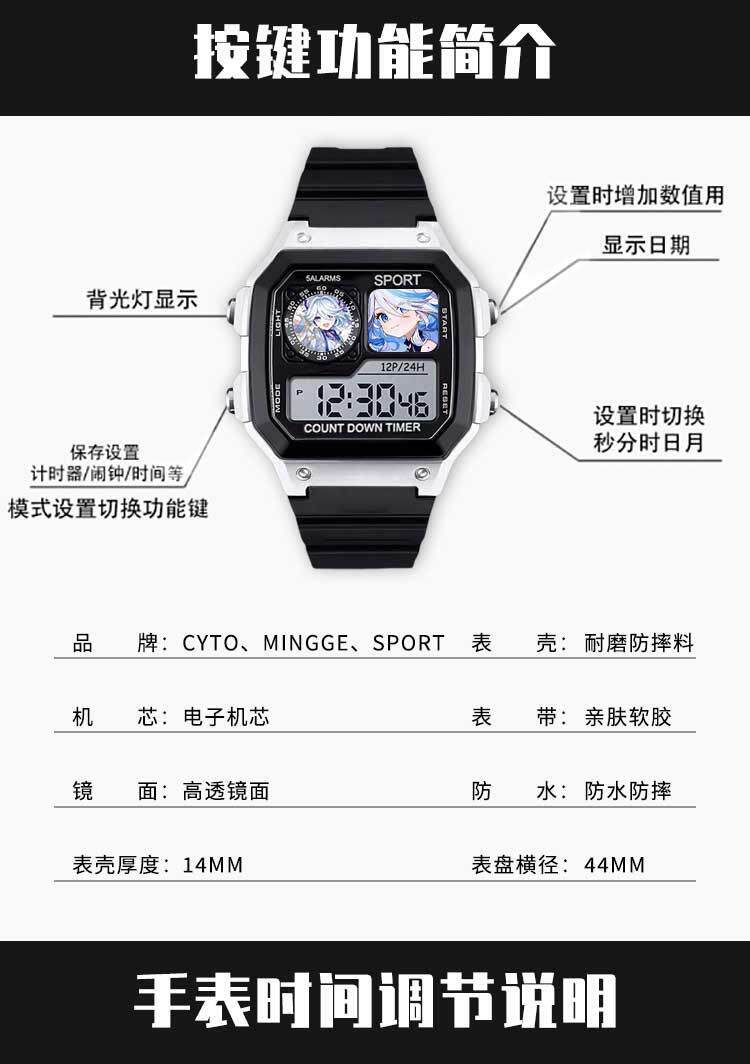 Roblox Forsaken Block Waterproof Watch Digital Watch Silent Alarm Clock Night Light Timer