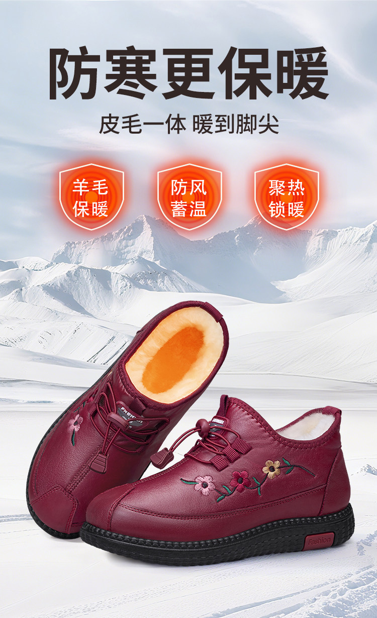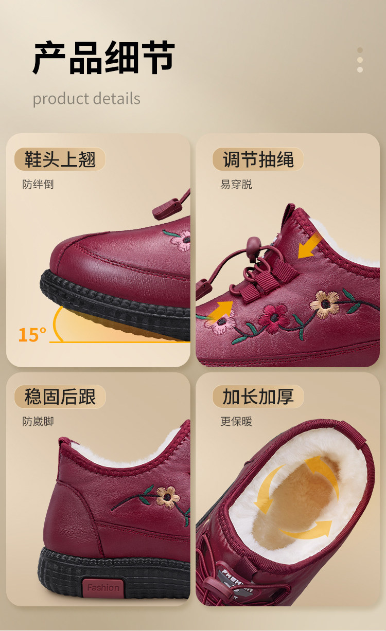 Old Beijing Cloth Shoes for Women, New Winter Style, Fleece-Lined, Warm, Thickened Wool, Mother's Cotton Shoes, Elderly Non-Slip Grandma Cotton Boots