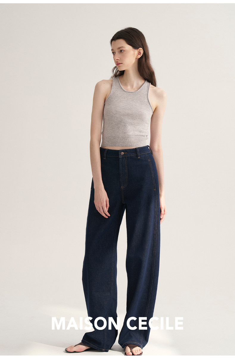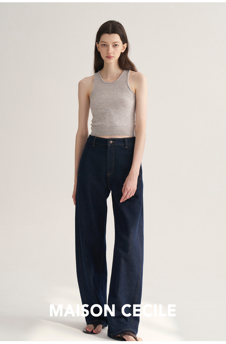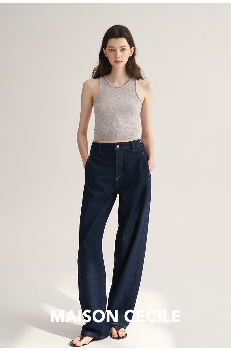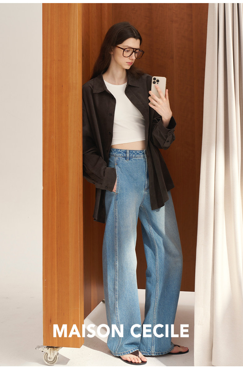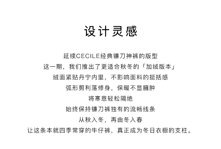 Maison Cecile Magic Pants Fleece-Lined Version | Classic Three-Color Slimming and Versatile Curved Sickle Jeans