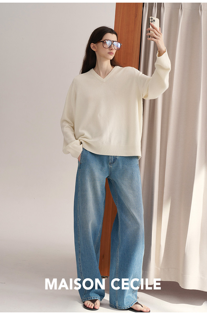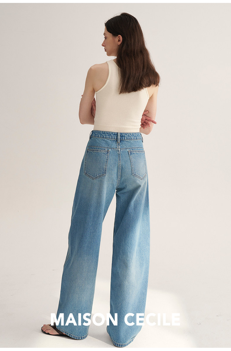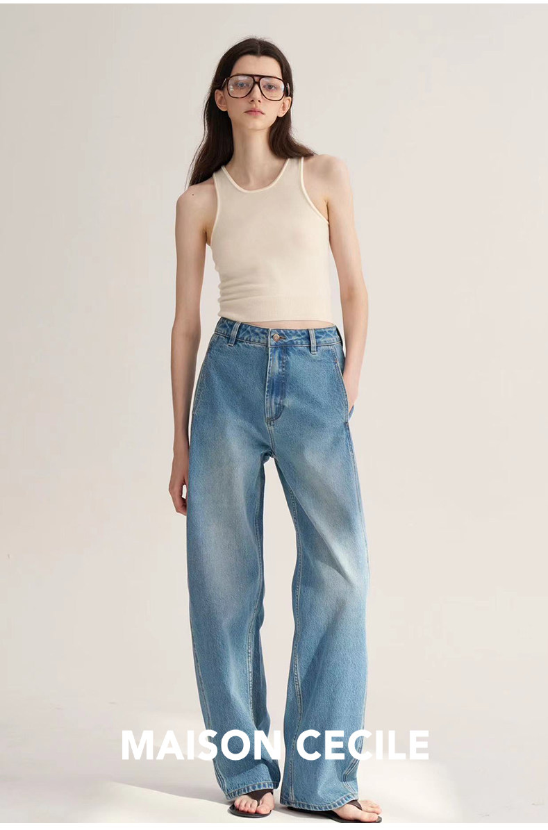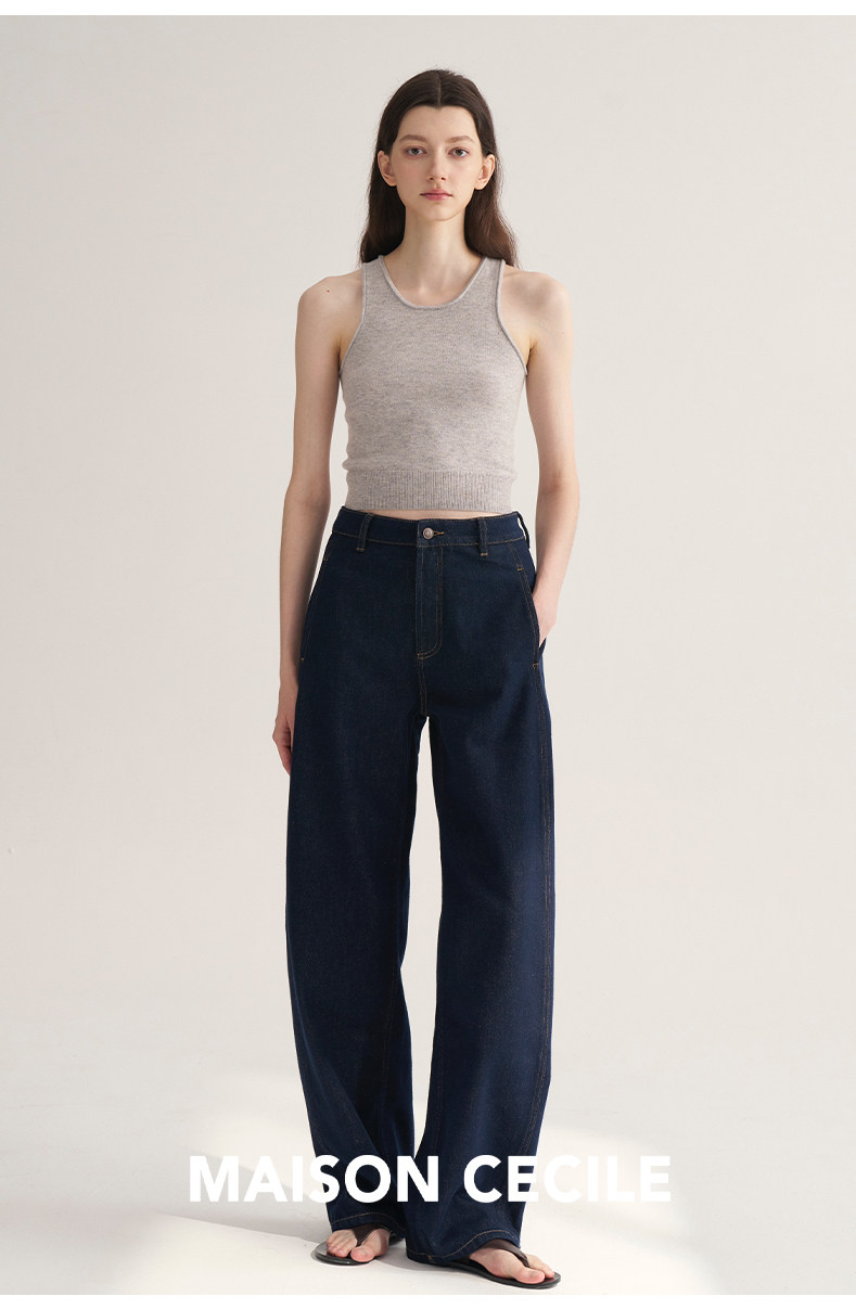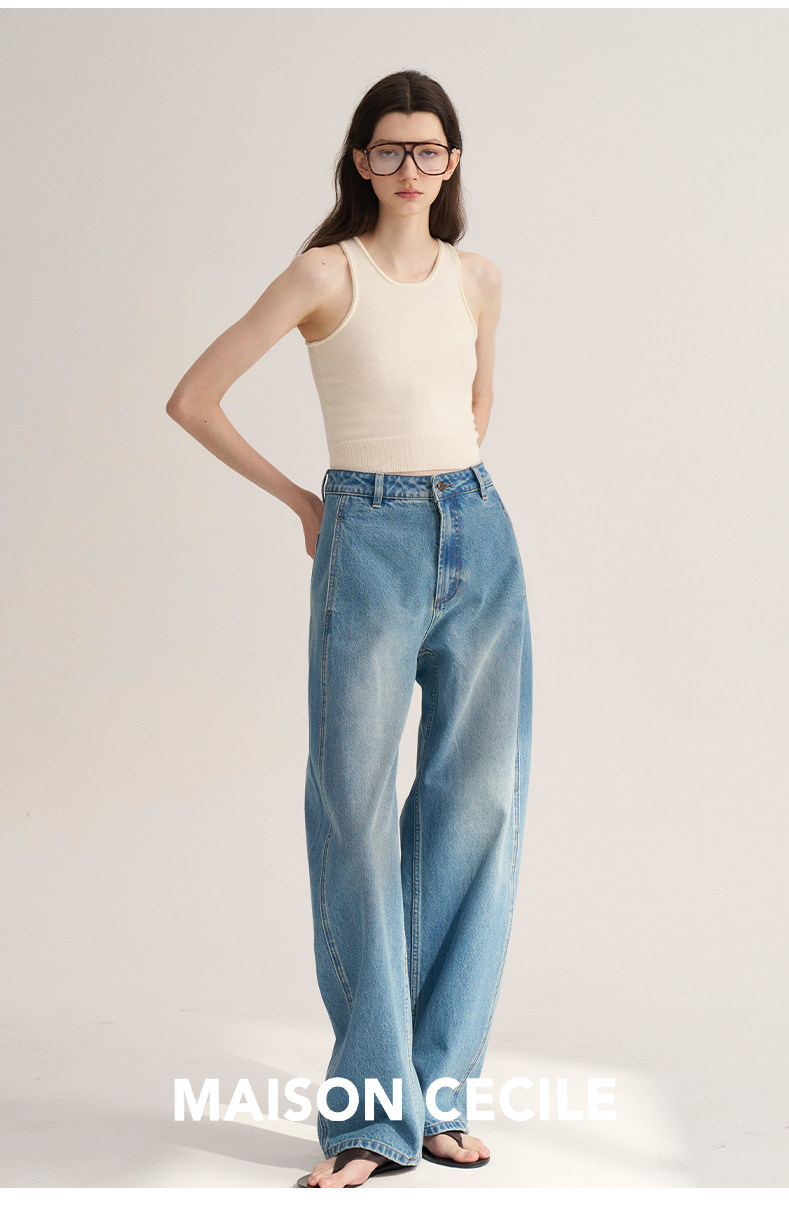 Maison Cecile Magic Pants Fleece-Lined Version | Classic Three-Color Slimming and Versatile Curved Sickle Jeans